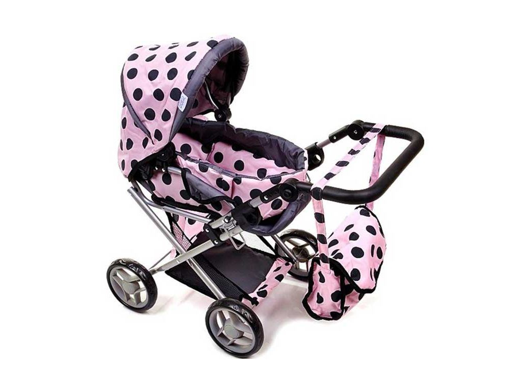 Doris kočárek pro panenky kombinovaný - 9346 světle růžový s puntíky