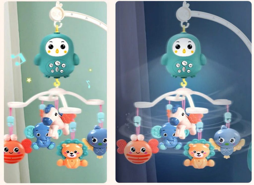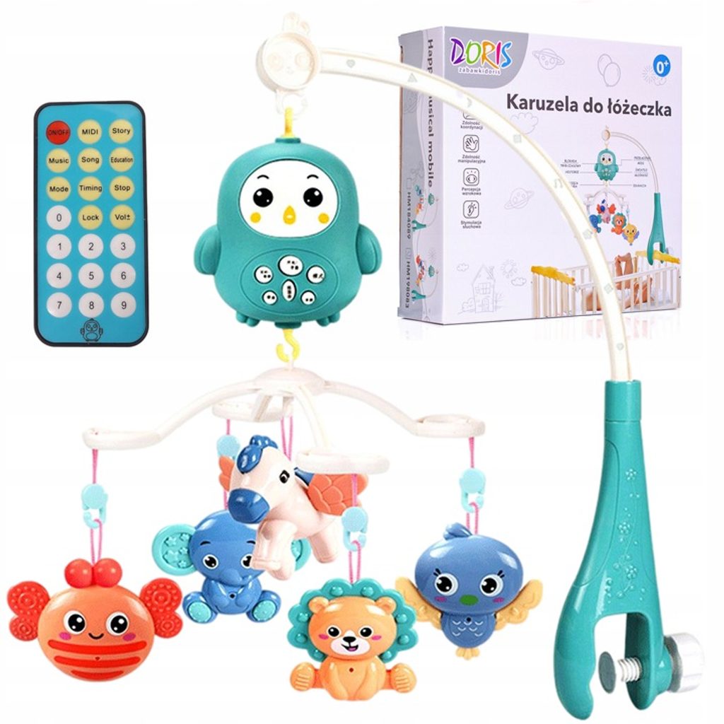 Doris dětský kolotoč Zvířátka se zavěšenými hračkami a melodiemi pomůže každému dítěti hravě usnout. Hračky ve tvaru zvířátek lze odejmout a použít samostatně. Uvnitř mají kuličky a lze je využít také jako kousátka. Hudební modul ve tvaru tučňáka je vybaven melodiemi, písničkami a také pohádkami (v angličtině). Má svítící křidélka, možnost vypnutí, časovač a regulaci hlasitosti. Kolotoč lze snadno demontovat, můžete to ho tak umístit i nad kočárek. Je určen pro děti od narození.