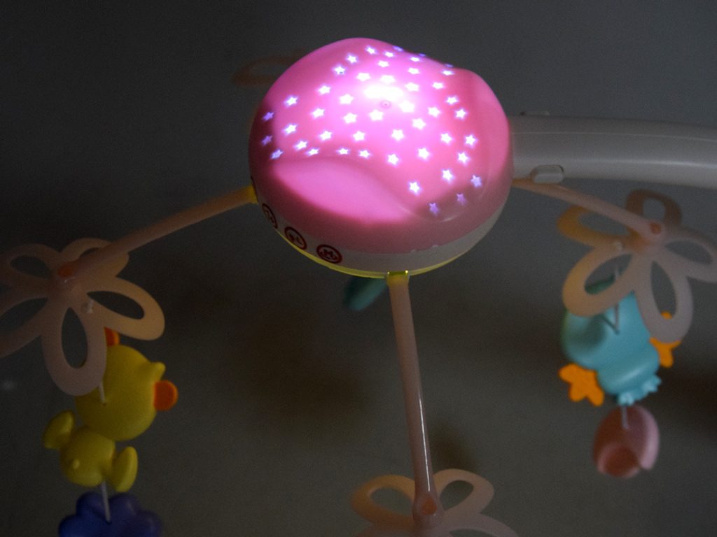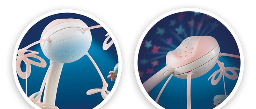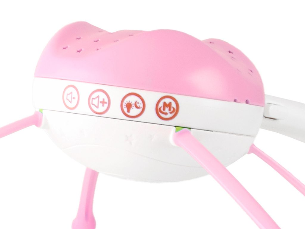 Nádherný dětský kolotoč Doris Bed Bell se 4 zavěšenými hračkami a projektorem, který zobrazuje barevné hvězdičky na stropě pomůže každému dítěti hravě usnout. Projektor lze ovládat pomocí dálkového ovladače a slouží také jako noční lampička s jemným světlem. Hračky lze odejmout a použít samostatně. Kolotoč je vybaven celkem 500 melodiemi včetně zvuků zvířátek, hudebních nástrojů a dětského smíchu. Lze ho snadno demontovat, můžete to ho tak umístit i nad kočárek. Je určen pro děti od narození.