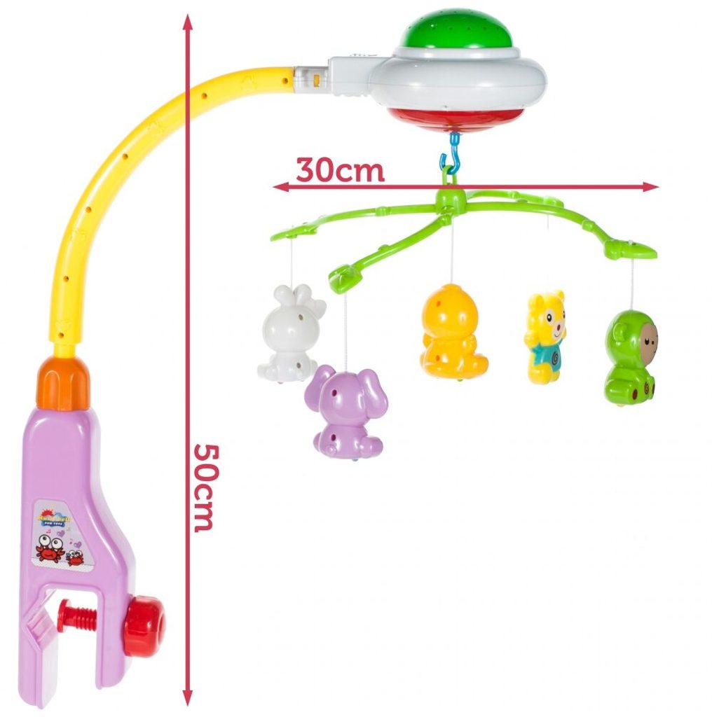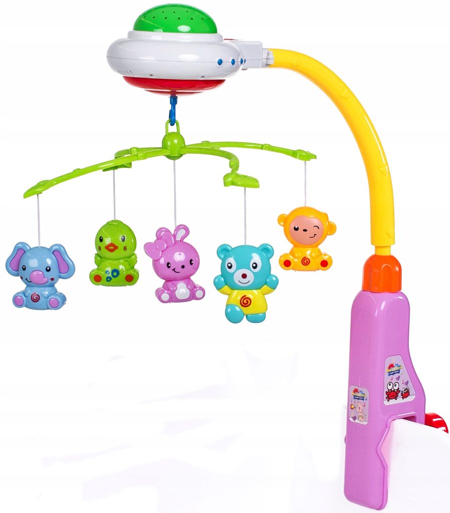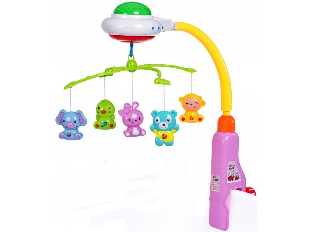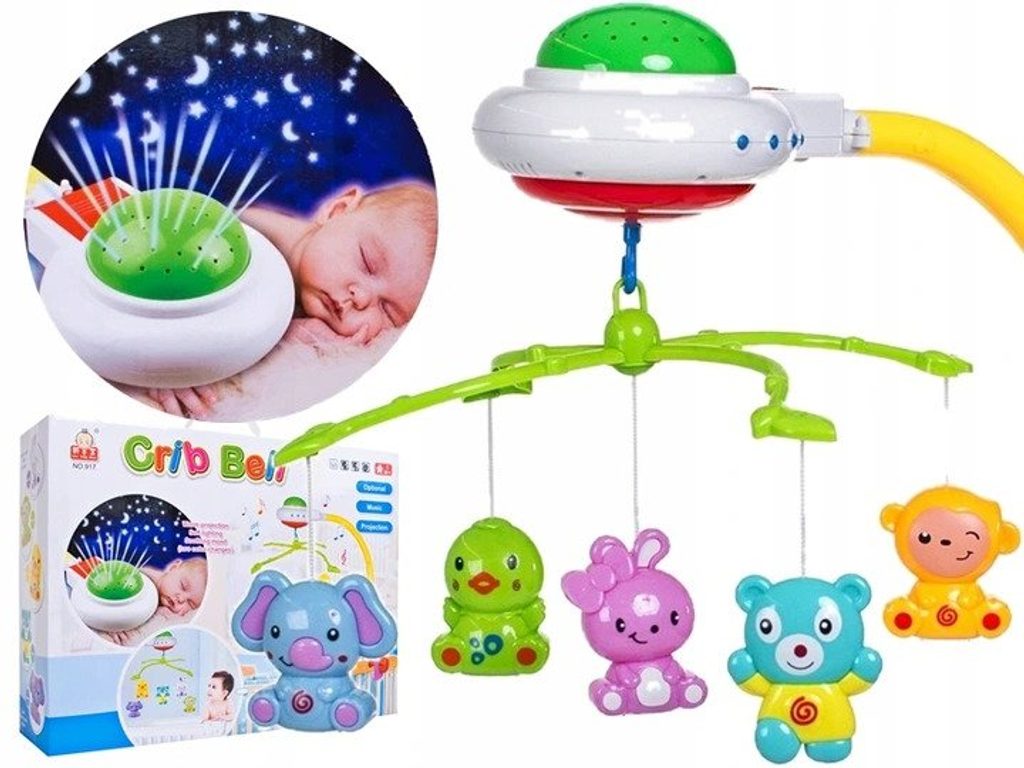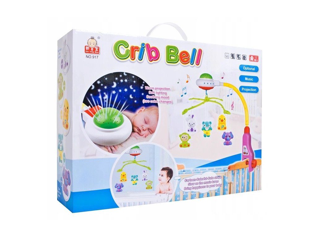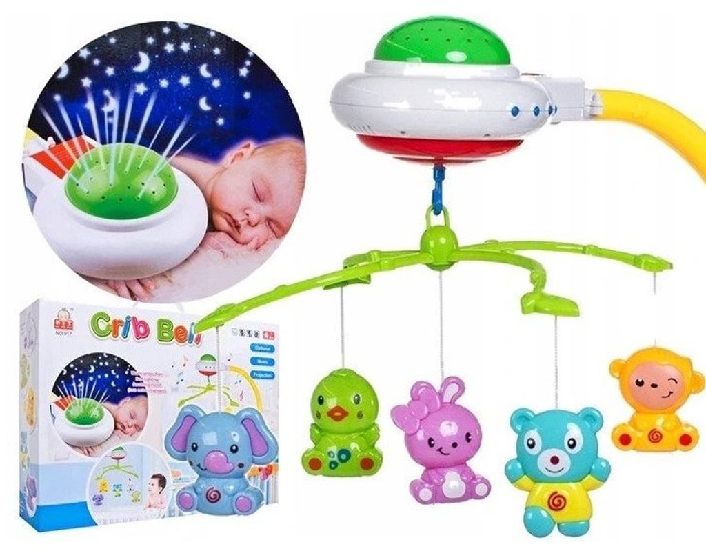 Nádherný dětský kolotoč Doris Crib Bell s 5 zavěšenými hračkami, chrastítkem a projektorem, který zobrazuje barevné hvězdičky na stropě pomůže každému dítětu hravě usnout. Hračky lze odejmout a použít samostatně. Kolotoč je vybaven uklidňujícími melodiemi, vypínačem zvuku a regulací hlasitosti. Lze ho snadno demontovat, můžete to ho tak umístit i nad kočárek. Je určen pro děti od narození.