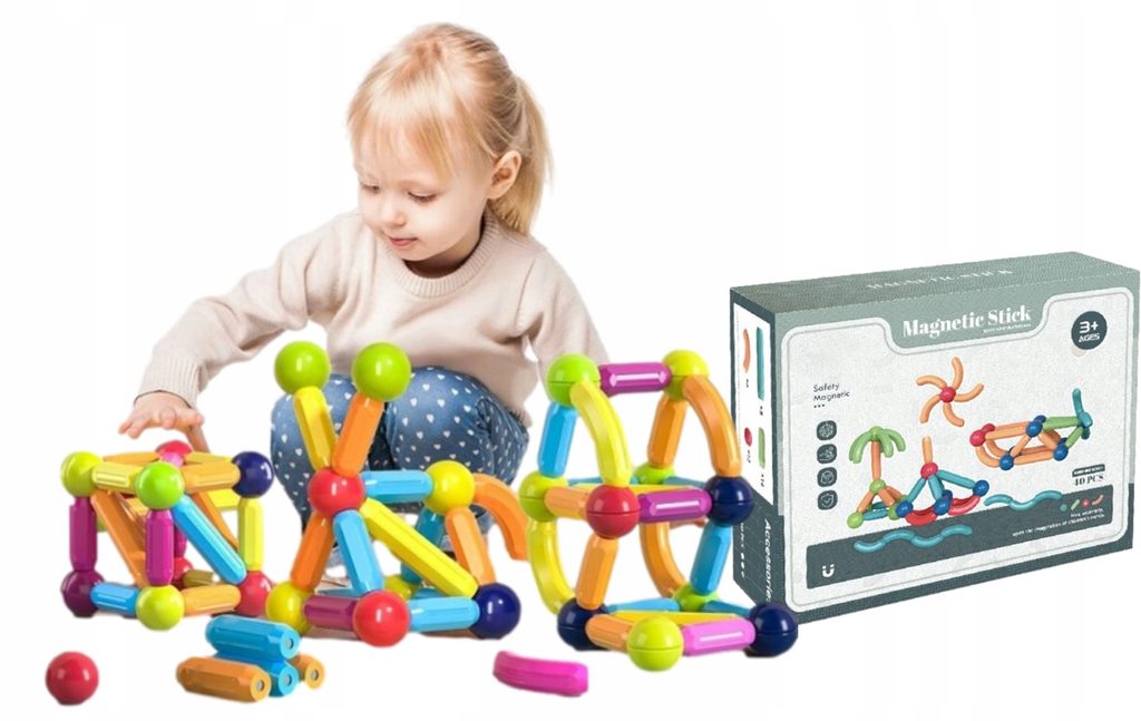 Stavebnice Magnet Sticks je ideální hračkou pro všechny malé konstruktéry. Skládá se z celkem 40 součástí. Obsahuje kuličky, rovné a zakřivené součásti. Všechny součásti se velmi snadno propojují a lze z nich vytvořit velké množství obrazců a prostorových tvarů. Hračka je určena pro děti od 3 let věku.