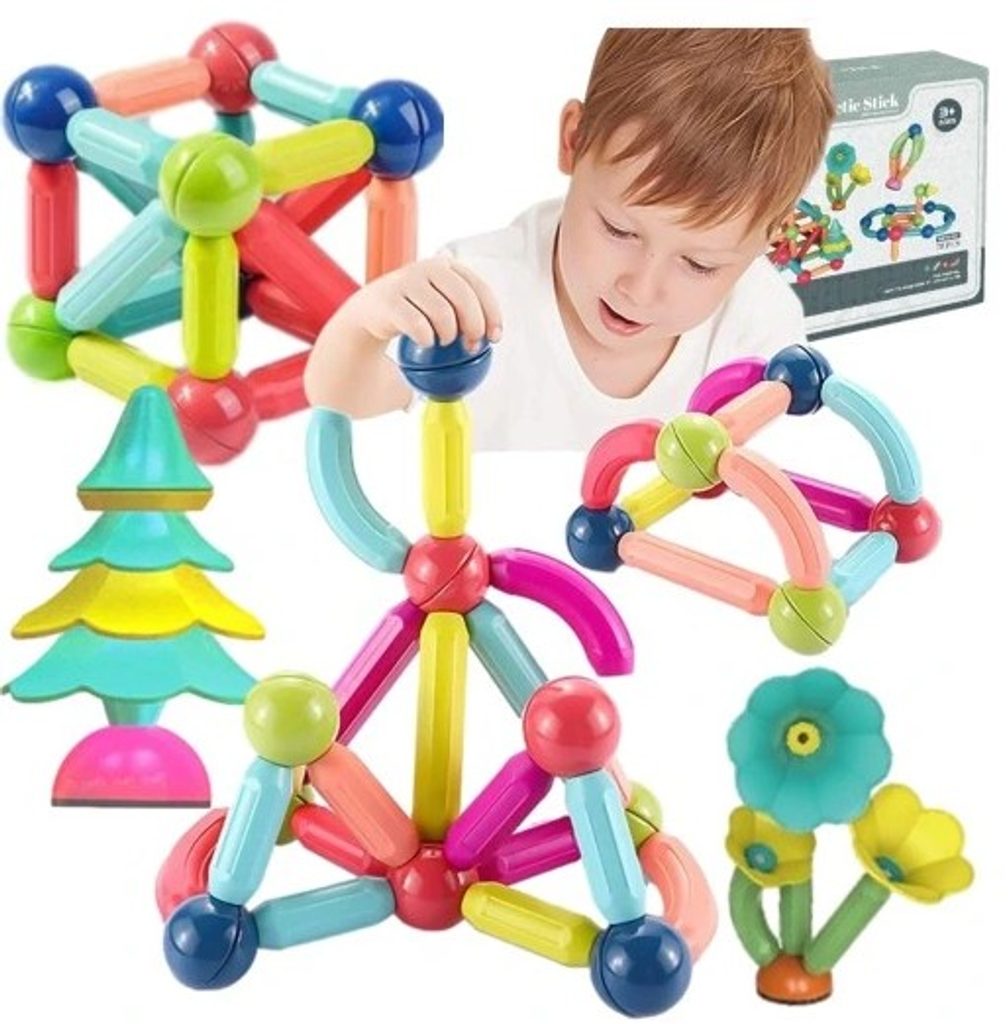 Stavebnice Magnet Sticks je ideální hračkou pro všechny malé konstruktéry. Skládá se z celkem 78 součástí. Obsahuje kuličky, rovné a zakřivené součásti. Všechny součásti se velmi snadno propojují a lze z nich vytvořit velké množství obrazců a prostorových tvarů. Hračka je určena pro děti od 3 let věku.