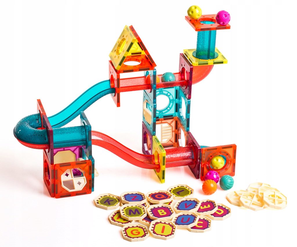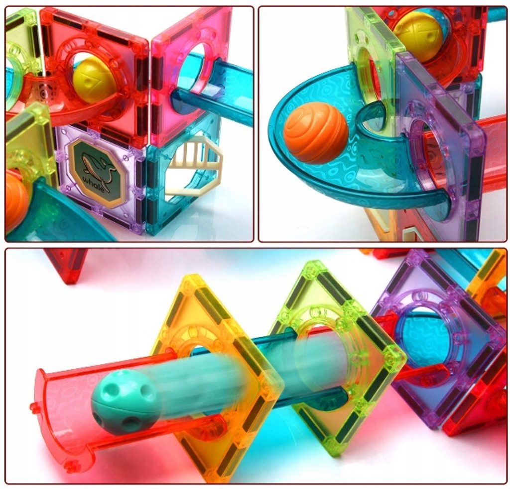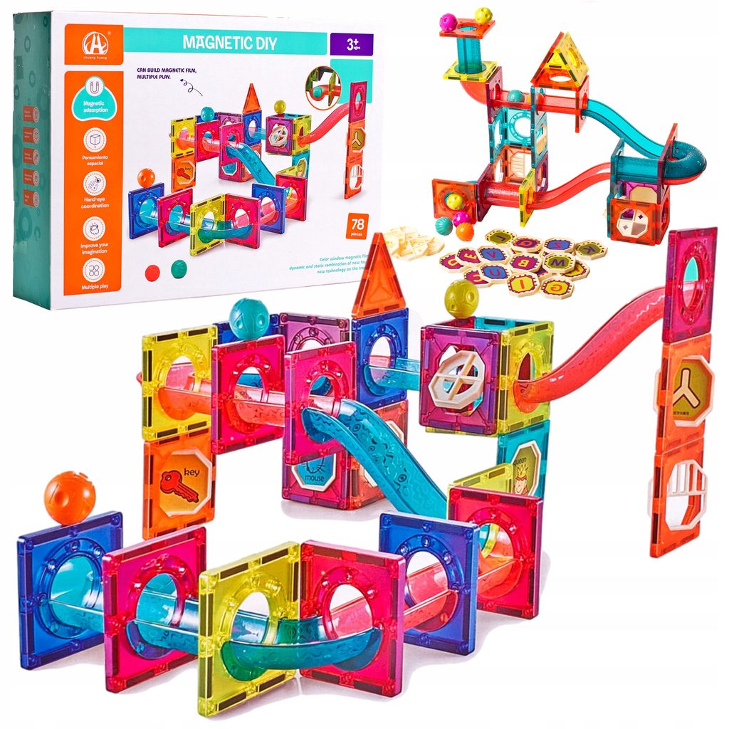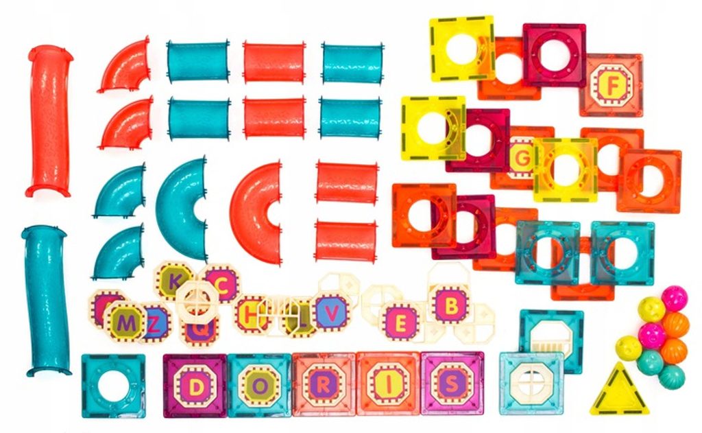 Barevná magnetická stavebnice Doris DIY Magnetic je ideální hračkou pro všechny malé konstruktéry. Skládá se z celkem 78 součástí jako jsou magnetické čtverce, barevné okýnka, trojúhelník a také součásti ze kterých lze vytvořit skluzavku včetně kuliček. Všechny součásti se velmi snadno propojují a lze z nich vytvořit velké množství plošných a 3D tvarů. Součástí balení jsou také samolepky a knížečka se vzory. Hračka je určena pro děti od 3 let věku.