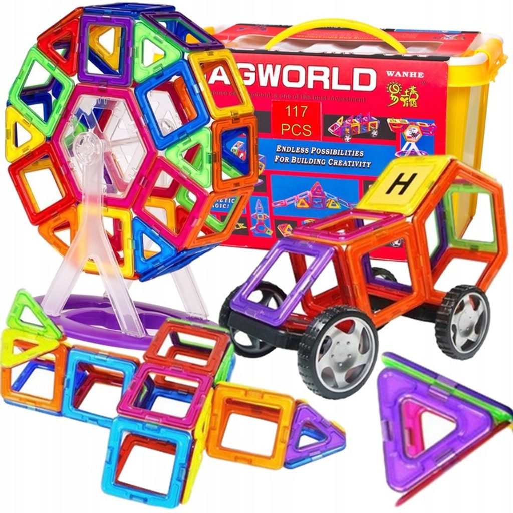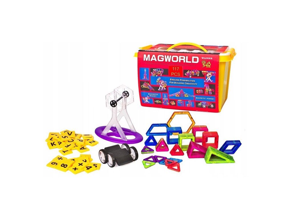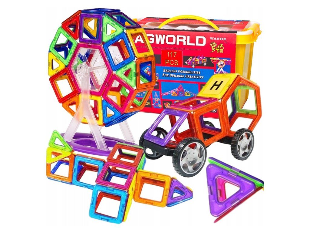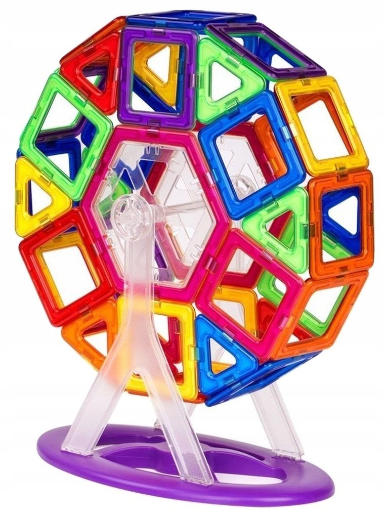 Barevná XXL magnetická stavebnice Doris Magical Magnet je ideální hračkou pro všechny malé konstruktéry. Učí děti kreativitu, trpělivost a podporuje představivost. Skládá se z celkem 117 součástí jako jsou čtverce, trojúhelníky, kosočtverce, lichoběžníky, šestihrany, písmenky a další. Součástí stavebnice jsou také kolečka. Všechny součásti se velmi snadno propojují a lze z nich vytvořit velké množství tvarů jako jsou různé vozítka, mosty , domy a další. Hračka je určena pro děti od 3 let věku.