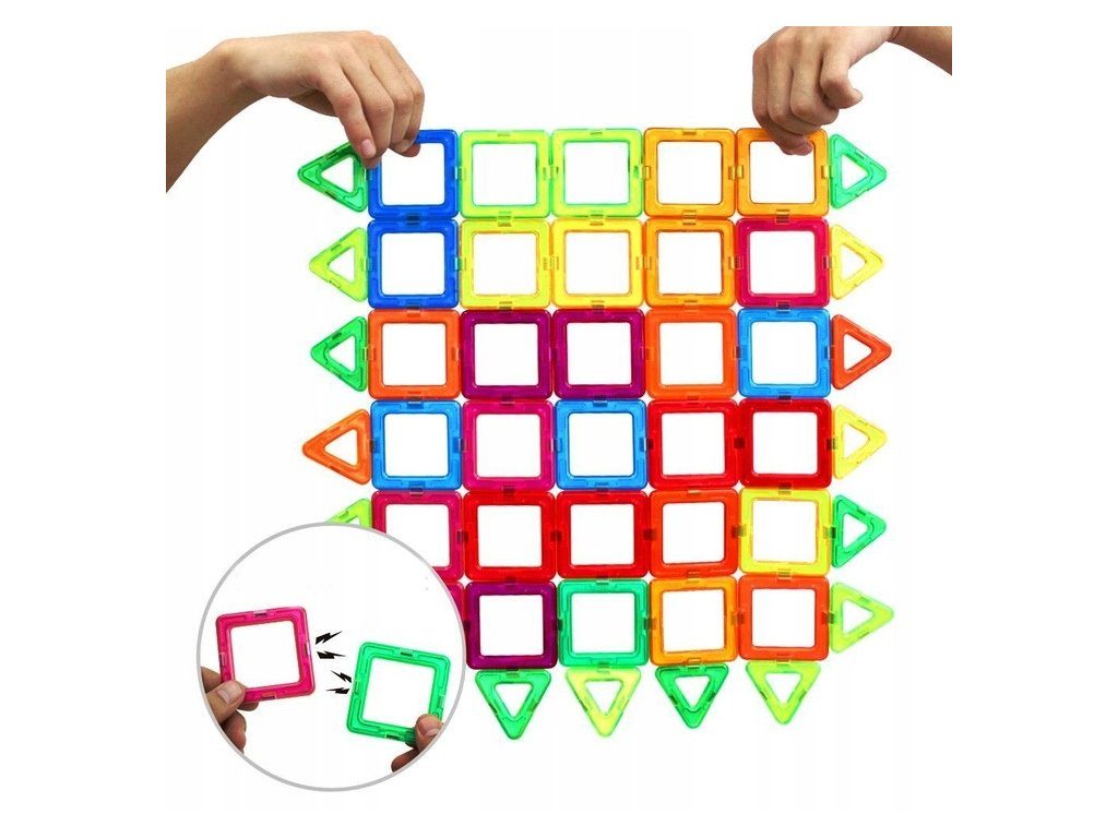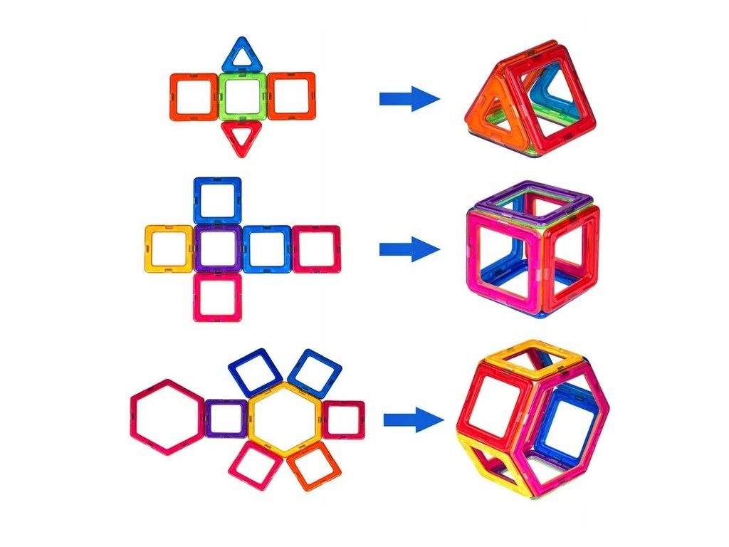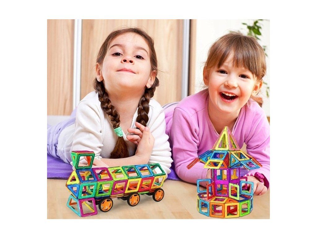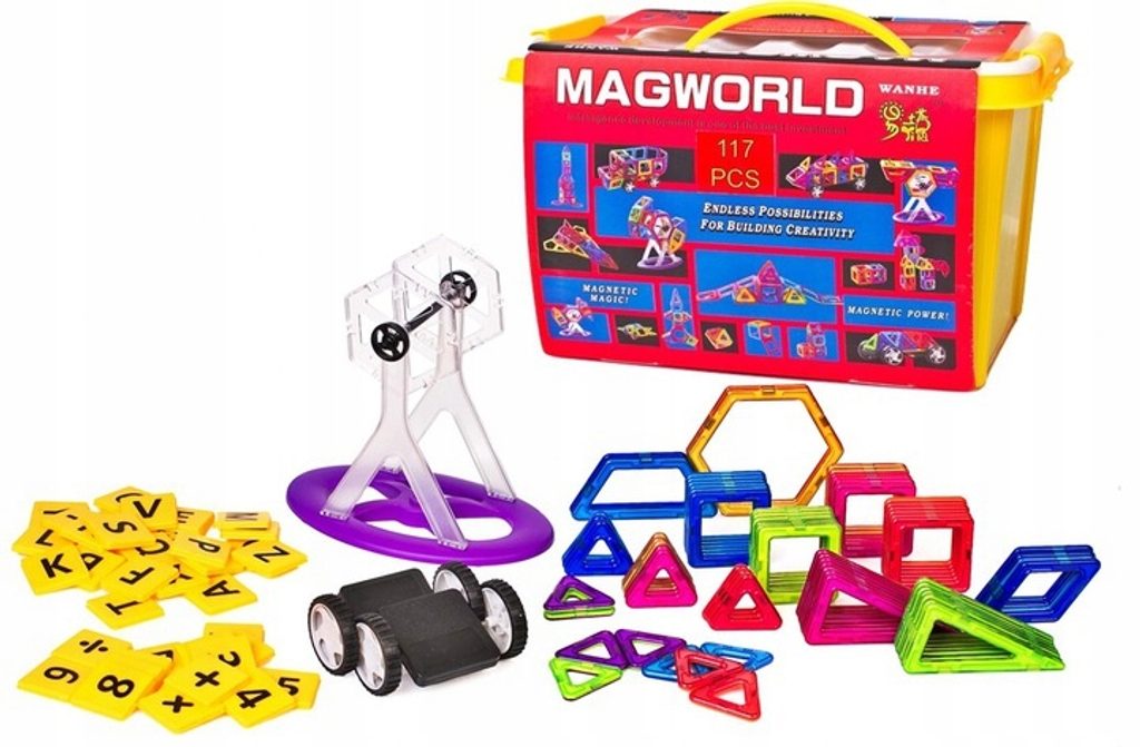 Barevná XXL magnetická stavebnice Doris Magical Magnet je ideální hračkou pro všechny malé konstruktéry. Učí děti kreativitu, trpělivost a podporuje představivost. Skládá se z celkem 117 součástí jako jsou čtverce, trojúhelníky, kosočtverce, lichoběžníky, šestihrany, písmenky a další. Součástí stavebnice jsou také kolečka. Všechny součásti se velmi snadno propojují a lze z nich vytvořit velké množství tvarů jako jsou různé vozítka, mosty , domy a další. Hračka je určena pro děti od 3 let věku.