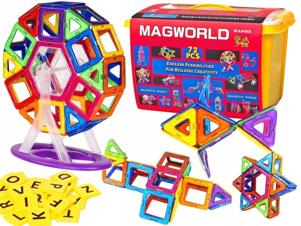 Barevná magnetická stavebnice Doris Magical Magnet je ideální hračkou pro všechny malé konstruktéry. Učí děti kreativitu, trpělivost a podporuje představivost. Skládá se z celkem 72 součástí jako jsou čtverce, trojúhelníky, kosočtverce, lichoběžníky, šestihrany, písmenka a další. Součástí stavebnice je také otočný stojan. Všechny součásti se velmi snadno propojují a lze z nich vytvořit velké množství tvarů jako jsou různé tělesa, mosty , domy a další. Hračka je určena pro děti od 3 let věku.