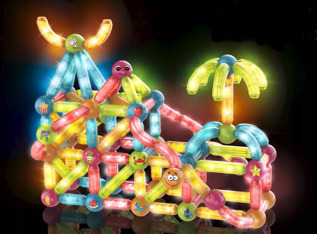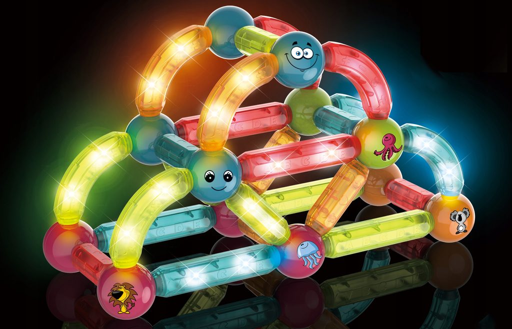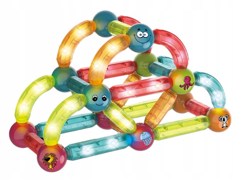 Doris svítící stavebnice Light Sticks je ideální hračkou pro všechny malé konstruktéry. Skládá se z celkem 52 součástí. Obsahuje kuličky, rovné a zakřivené součásti. Všechny součásti se velmi snadno propojují a lze z nich vytvořit velké množství obrazců a prostorových tvarů. Hračka je určena pro děti od 3 let věku.