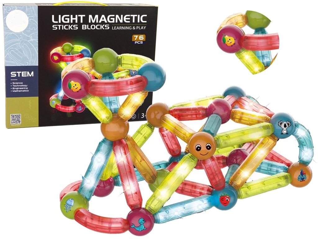 Doris svítící stavebnice Light Sticks je ideální hračkou pro všechny malé konstruktéry. Skládá se z celkem 76 součástí. Obsahuje kuličky, rovné a zakřivené součásti. Všechny součásti se velmi snadno propojují a lze z nich vytvořit velké množství obrazců a prostorových tvarů. Hračka je určena pro děti od 3 let věku.