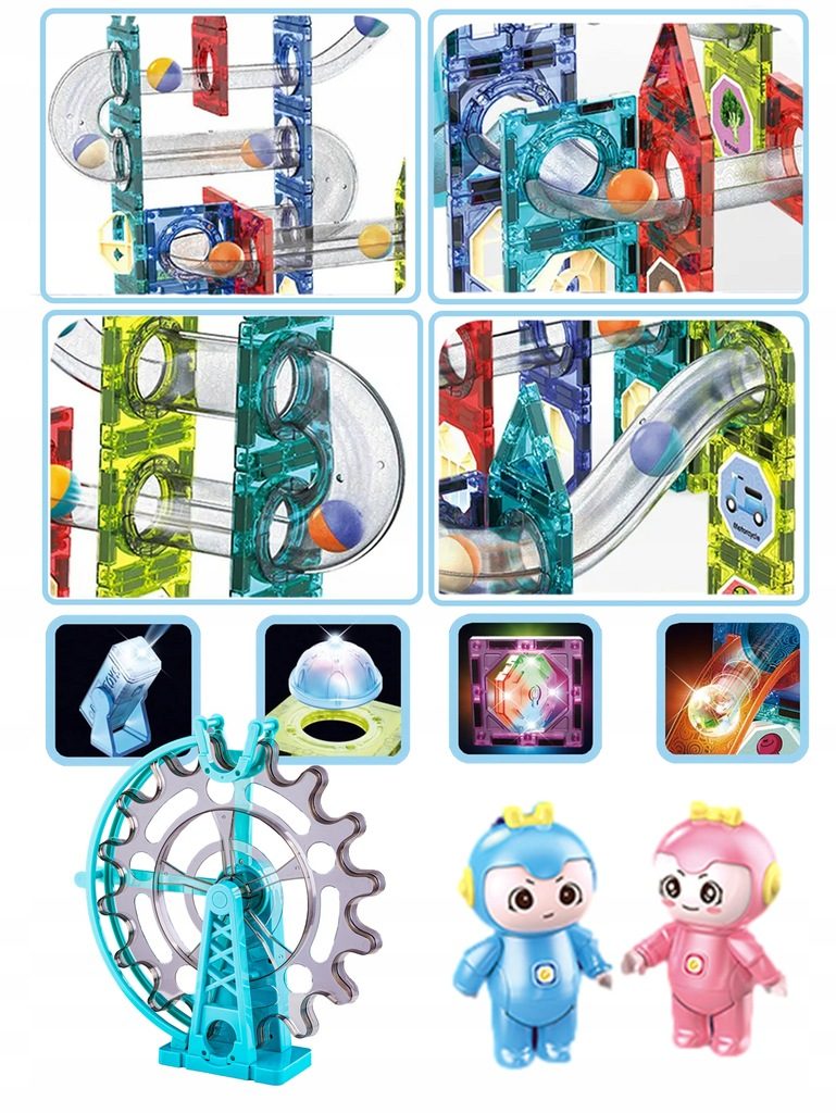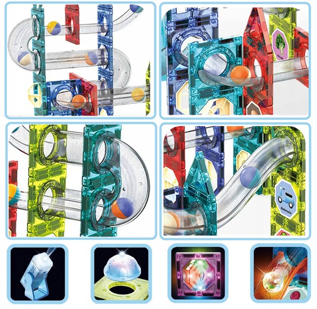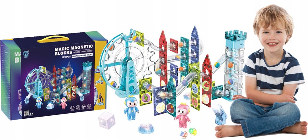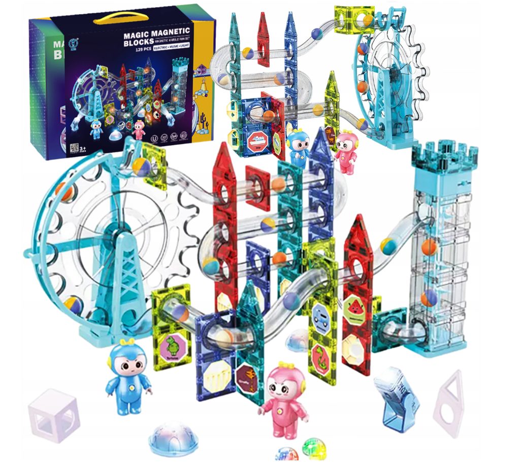 Barevná magnetická svítící stavebnice Doris Magic Blocks je ideální hračkou pro všechny malé konstruktéry. Skládá se z celkem 129 součástí jako jsou konstrukční elementy, mlýnské kolo, součásti ze kterých lze vytvořit skluzavku, kuličky které svítí, postavičky, reflektory a další svítící prvky. Všechny součásti se velmi snadno propojují a lze z nich vytvořit velké množství plošných a 3D tvarů. Součástí balení jsou také samolepky a knížečka se vzory. Hračka je určena pro děti od 3 let věku.