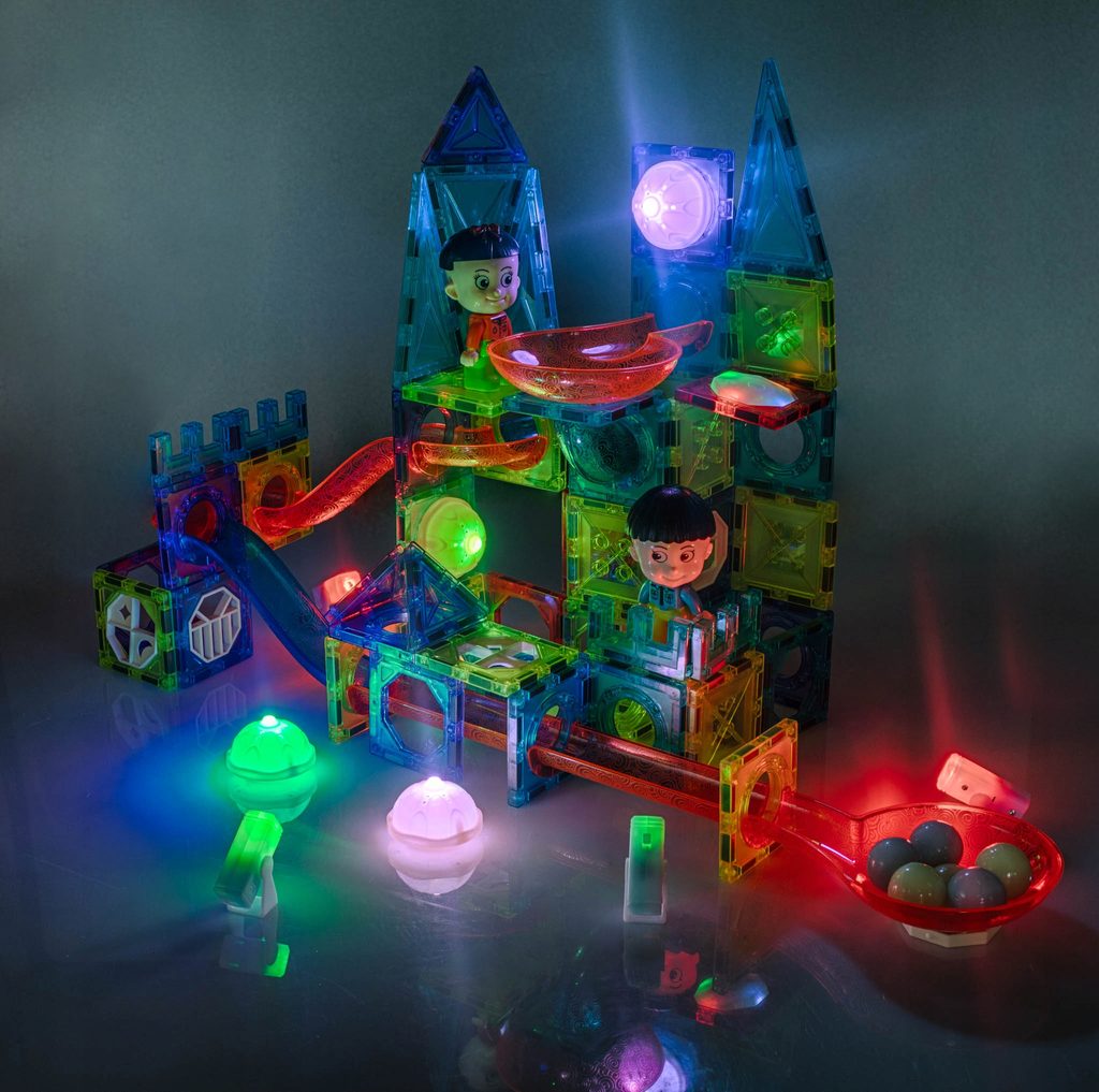 Barevná magnetická svítící stavebnice Doris Light Magnetic je ideální hračkou pro všechny malé konstruktéry. Skládá se z celkem 150 součástí jako jsou konstrukční elementy, součásti ze kterých lze vytvořit skluzavku, kuličky které svítí, reflektory a další svítící prvky. Všechny součásti se velmi snadno propojují a lze z nich vytvořit velké množství plošných a 3D tvarů. Součástí balení jsou také samolepky a knížečka se vzory. Hračka je určena pro děti od 3 let věku.