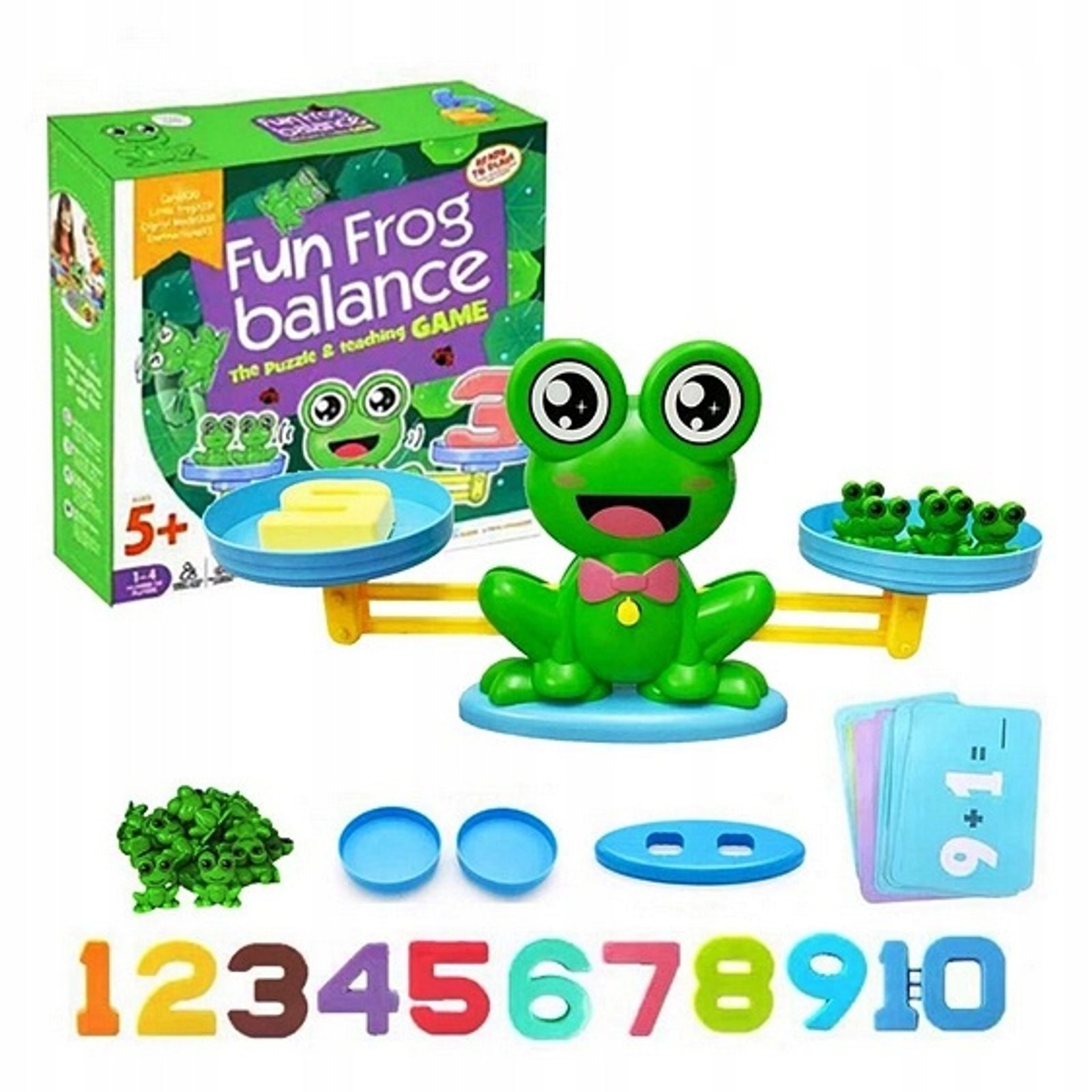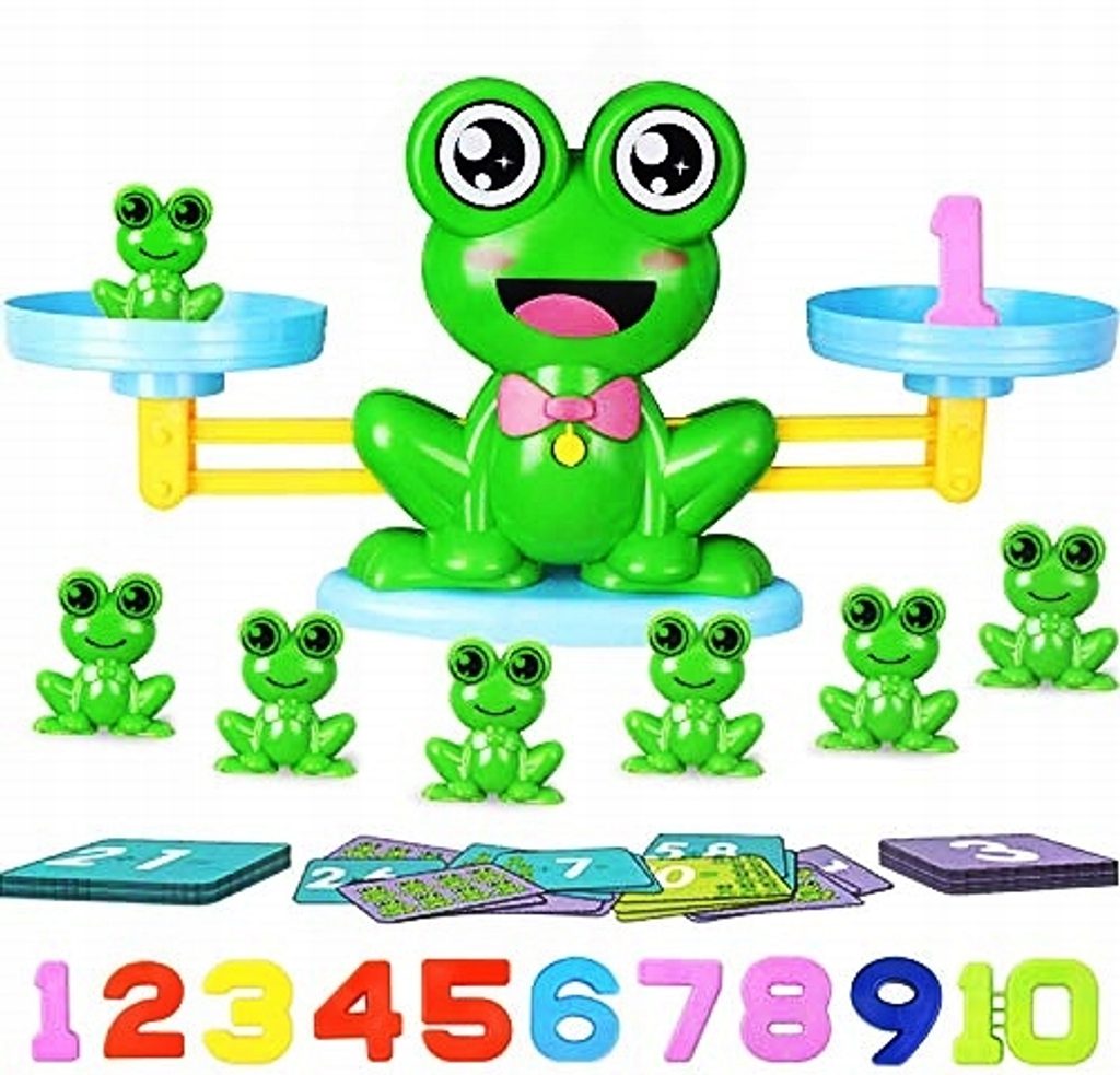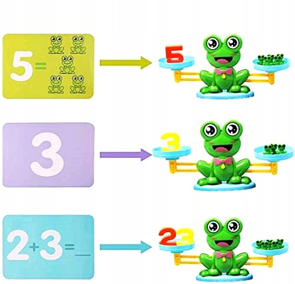 Dětská naučná váha pro děti Balance Frog je ideální hračkou pro rozvoj logického myšlení, nauky matematiky a fyziky. Sada obsahuje celkem 64 součástí. Kromě váhy s velkou žábou zde dítě nalezne závaží ve tvaru malých žabiček, číslice a kartičky s úkoly. Pomocí této hračky děti zjistí jak funguje váha, mohou porovnávat hmotnosti různých předmětů a také sčítat a odečítat. Hračka je určena pro děti od 5 let věku a je určena pro 1- 4 hráče.