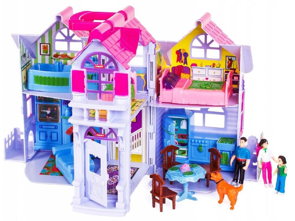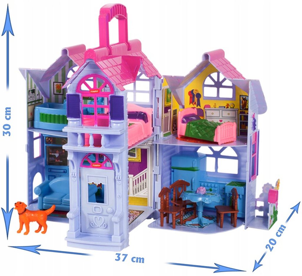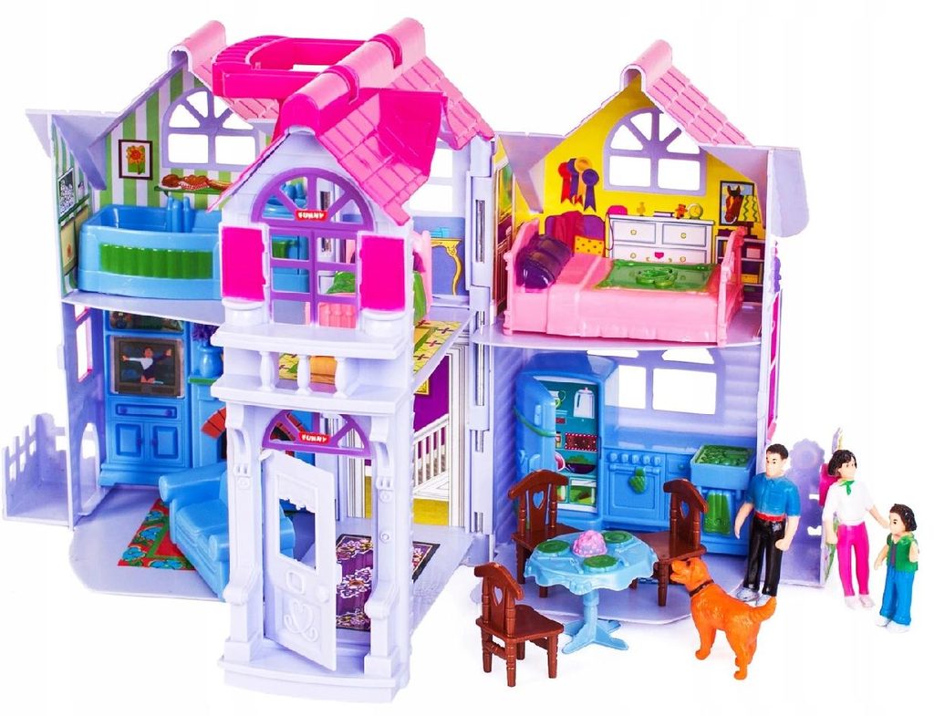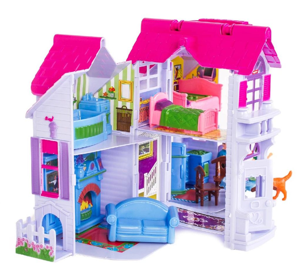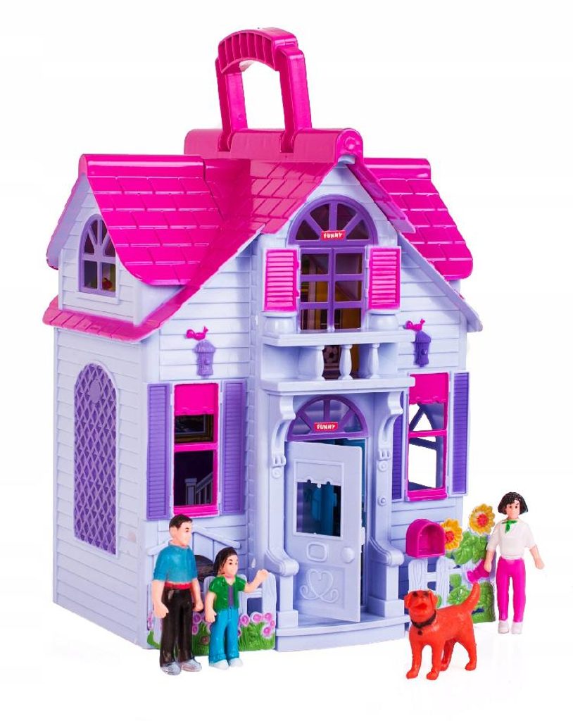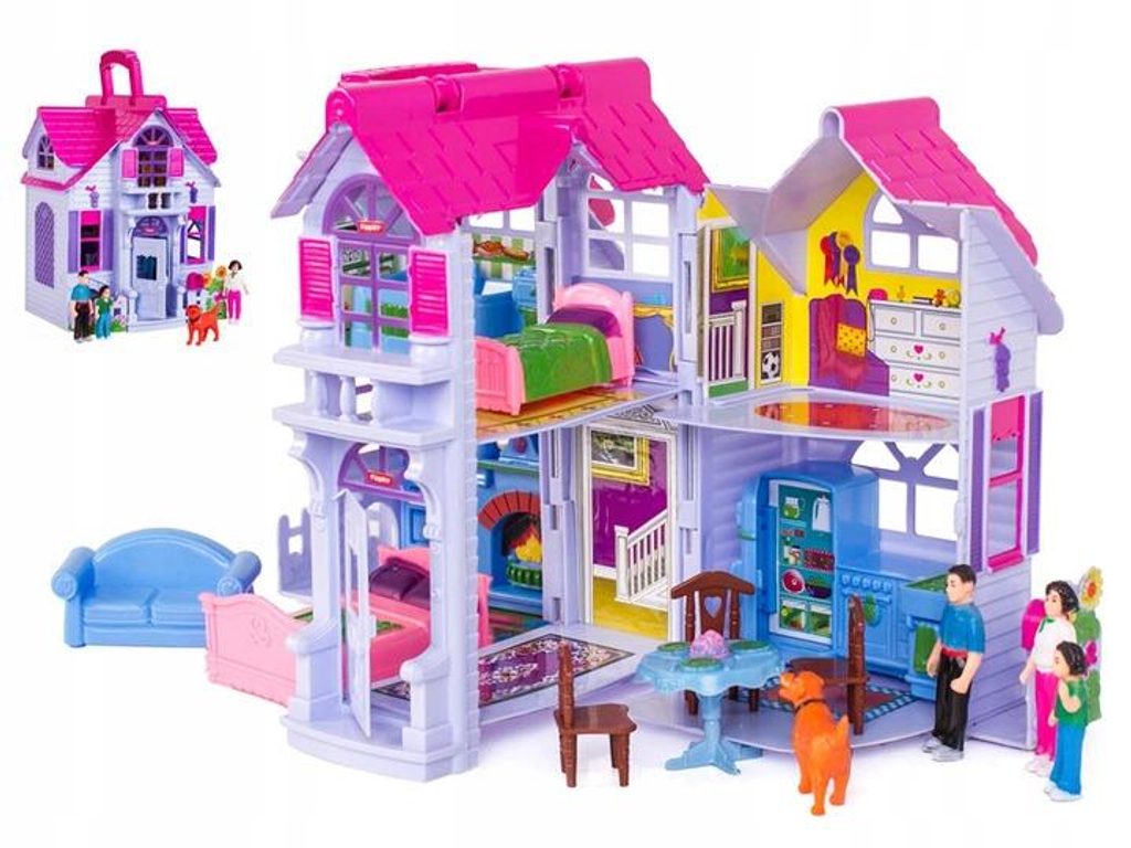 Nádherný plastový domeček pro panenky Doris Country House se 2 patry je snem každé malé princezny. Domeček je vybaven nábytkem který lze libovolně přeskupovat. Naleznete v něm sedačku, postele, křesla, kuchyňkou linku a další. Pro ještě větší zábavu jsou součástí domečky 3 figurky postaviček mámy, táty, dítěte a také figurka pejska. Ve střeše je umístěn praktický úchyt, domeček lze tedy snadno přenášet.