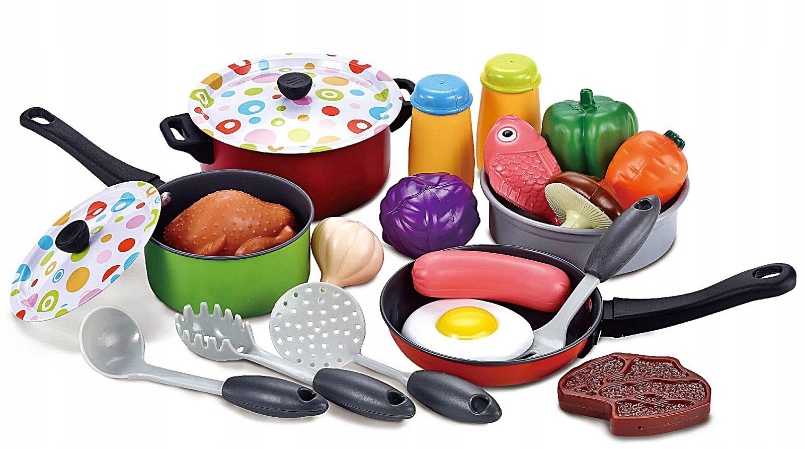 Sada kovového nádobí Doris do dětské kuchyňky imituje skutečné nádobí. Skládá se celkem z 22 součástí a nesmí chybět v žádné dětské kuchyňce. Najdete zde hrnec a pánvičku s odpovídajícími pokličkami, naběračku, obracečky, solničku a pepřenku, sítko ale hlavně imitace potravin jako jsou mrkev, vajíčko, kapusta, rybka a mnoho dalších. Tato hračka je určena pro děti od 3 let věku.
