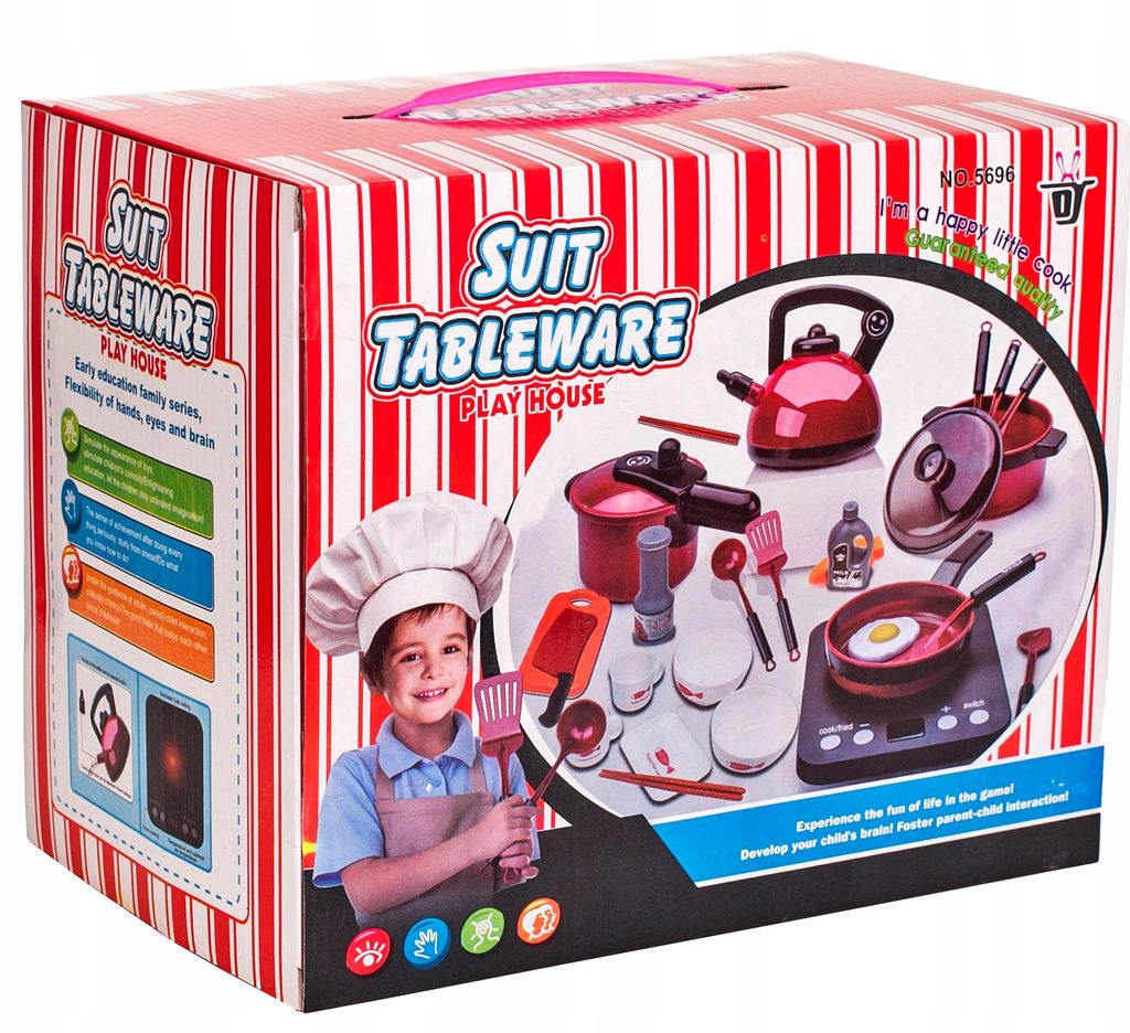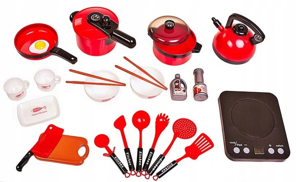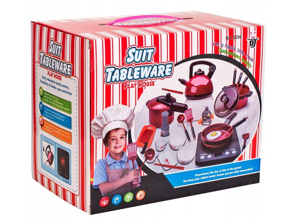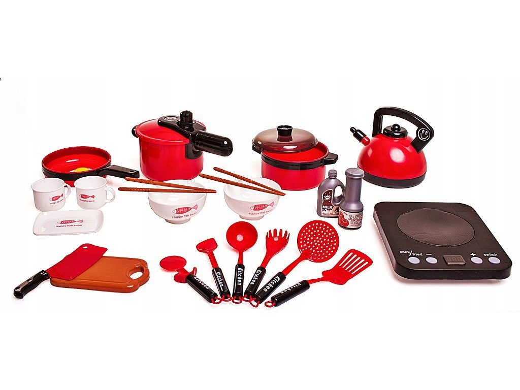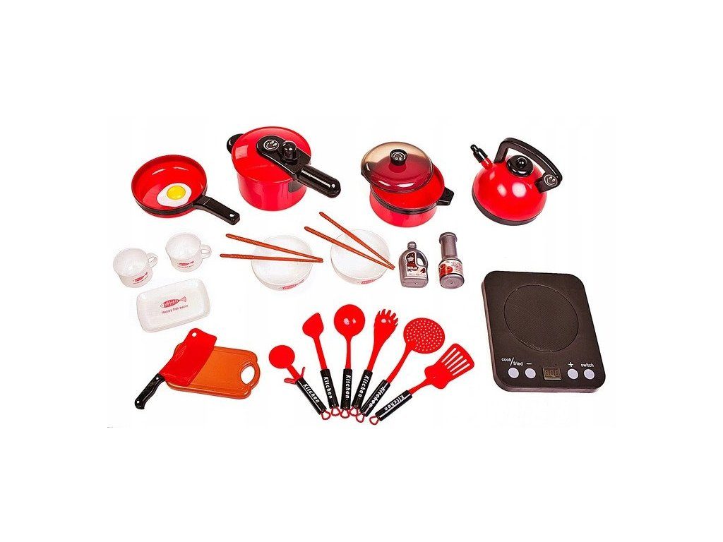 Sada nádobí Doris do dětské kuchyňky včetně vařiče na baterie imituje skutečné nádobí. Skládá se celkem z 24 součástí,nesmí chybět v žádné dětské kuchyňce nebo si s ní lze hrát samostatně. Najdete zde hrnce,pánvičku, naběračku, obracečky, imitace lahviček s mlékem a kečupem, prkénko, misky, talířek a další. U vařiče lze nastavit imitaci teploty a také vydává pokyny k vaření v angličtině. Tato hračka je určena pro děti od 3 let věku.