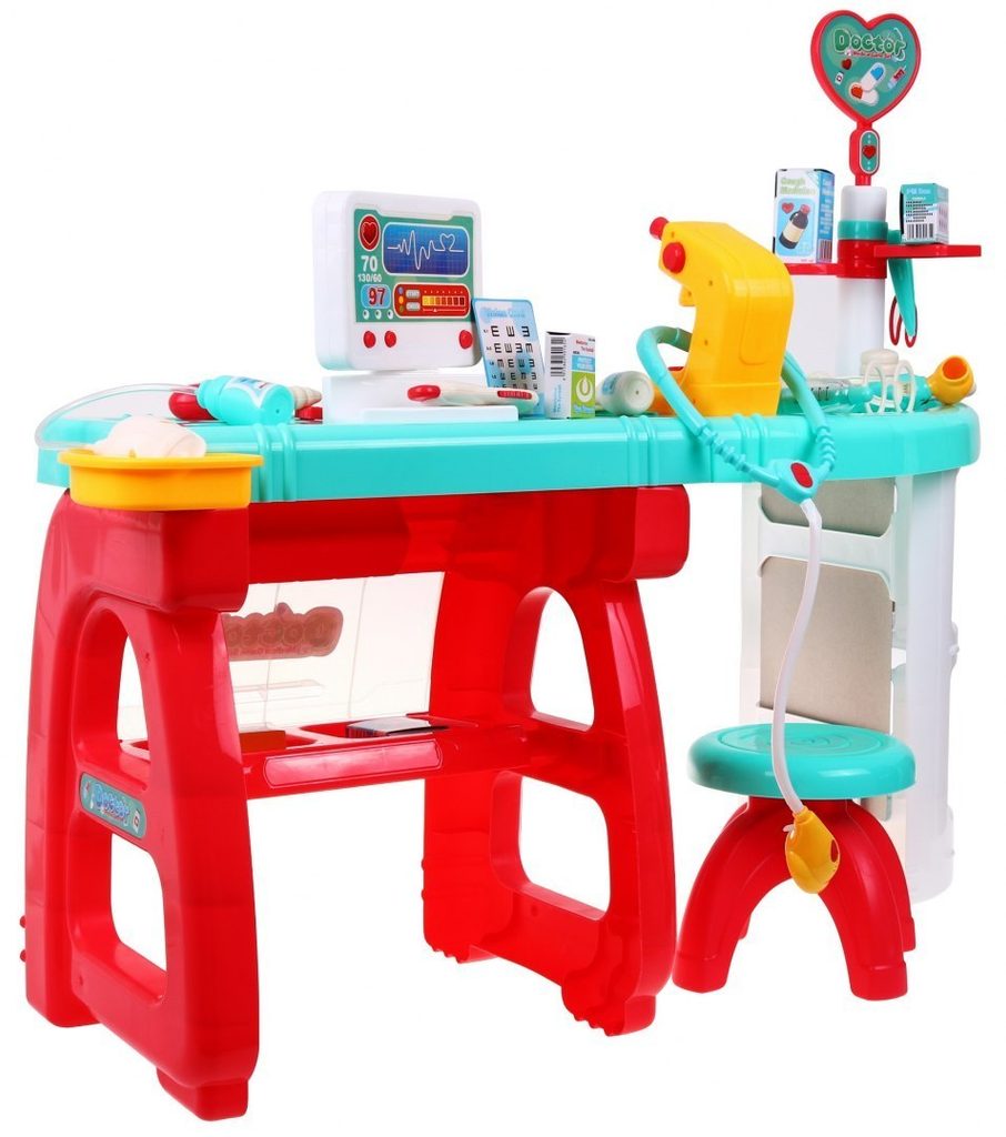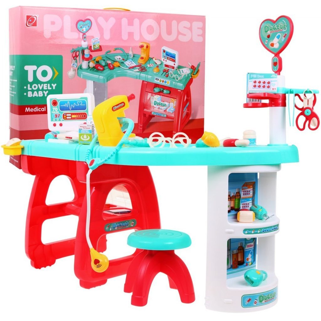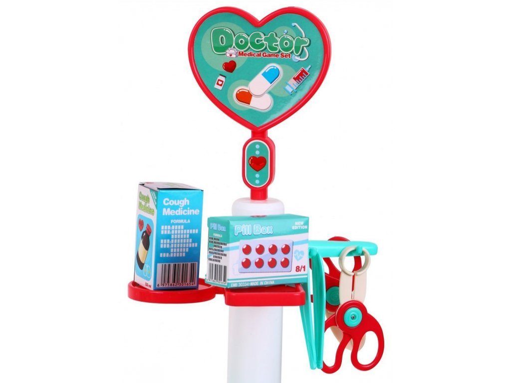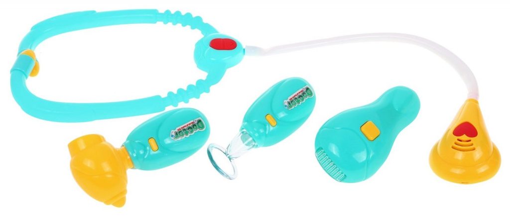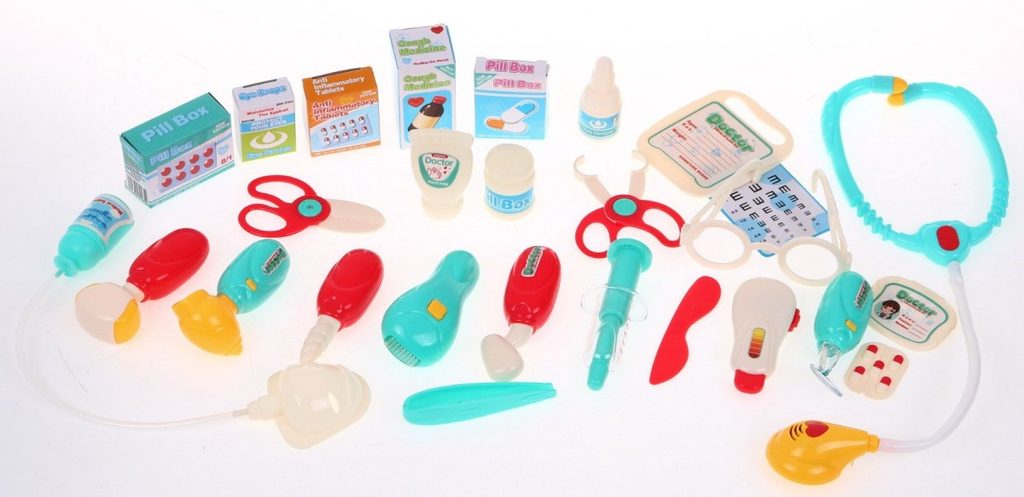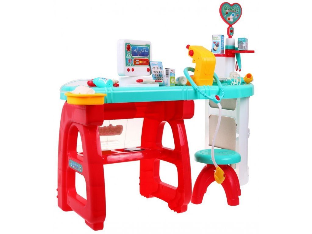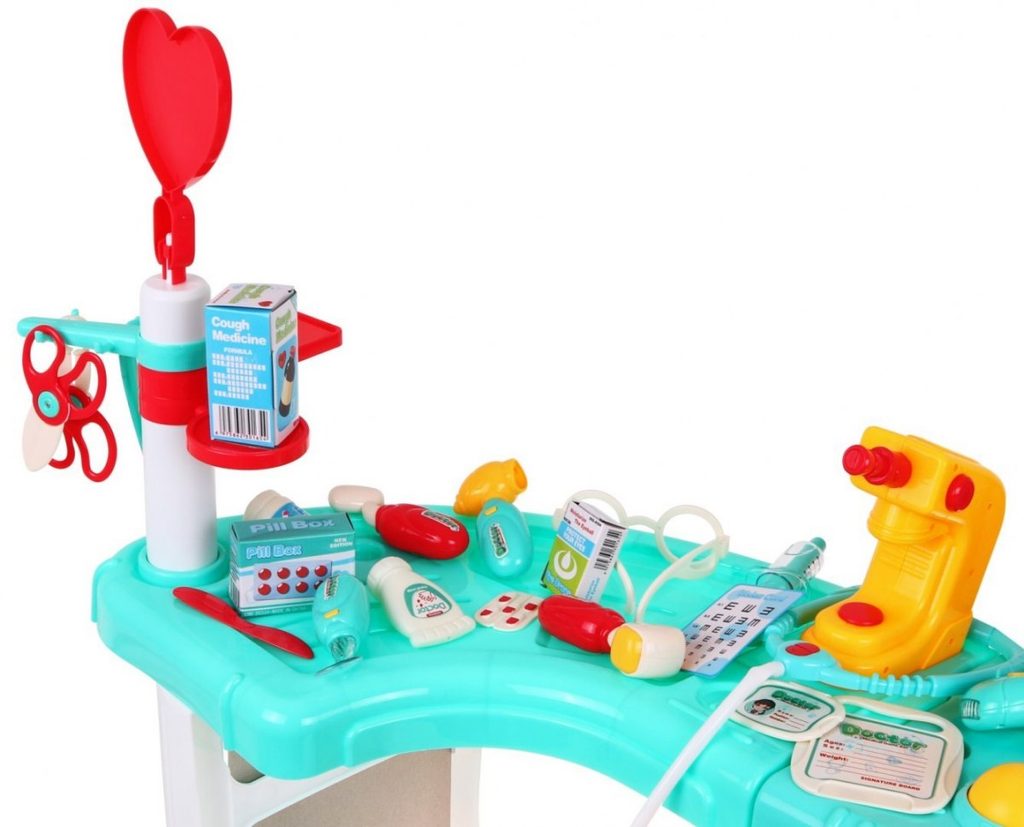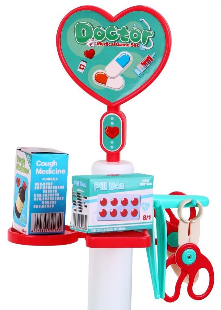 Souprava Malý doktor se zvuky a světlem je určena pro děti od 36 měsíců věku. Je vybavena celkem 27 elementy. Jako základ slouží lékařský stůl se židličkou a dále zde najdete přístroj na měření EKG, stetoskop, teploměr, karta pacienta, lékařské brýle, imitace léků, mikroskop a mnoho dalších užitečných věcí, které potřebuje malý doktor nebo doktorka ke své práci. Vaše dítě se určitě s touto velkou hračkou nudit nebude. Je vyrobena z kvalitního plastu v pestrobarevném provedení.
