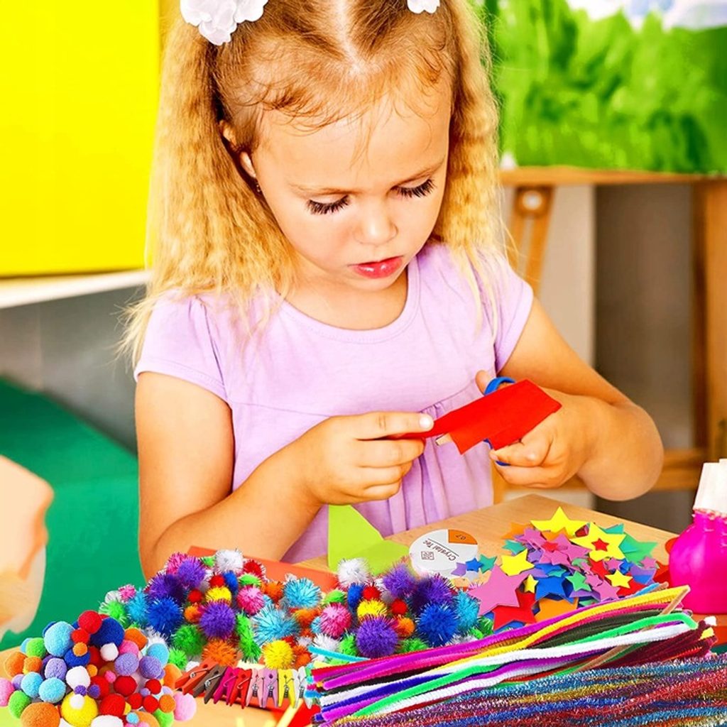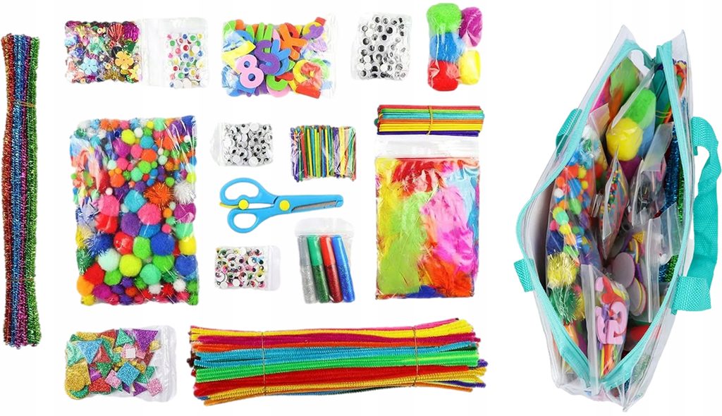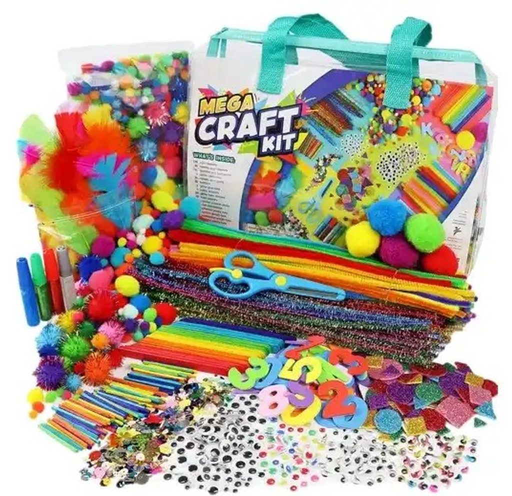 Velká kreativní sada Mega Kraft Kit se skládá z více než 2 000 součástí, včetně barevných tyčinek, bambulí různých velikostí, peříček, samolepicích třpytivých samolepek, drátěných tyčinek s velkým a malým okem které jsou potažené různými barvami materiálu. Lze je využít k výrobě figurek nebo jiných ručních prací.Prvky obsažené v sadě jsou umístěny v sáčcích podle typu a účelu, což usnadní organizaci práci a kreativní zábavu. Sada je určena pro děti od 3 let věku.