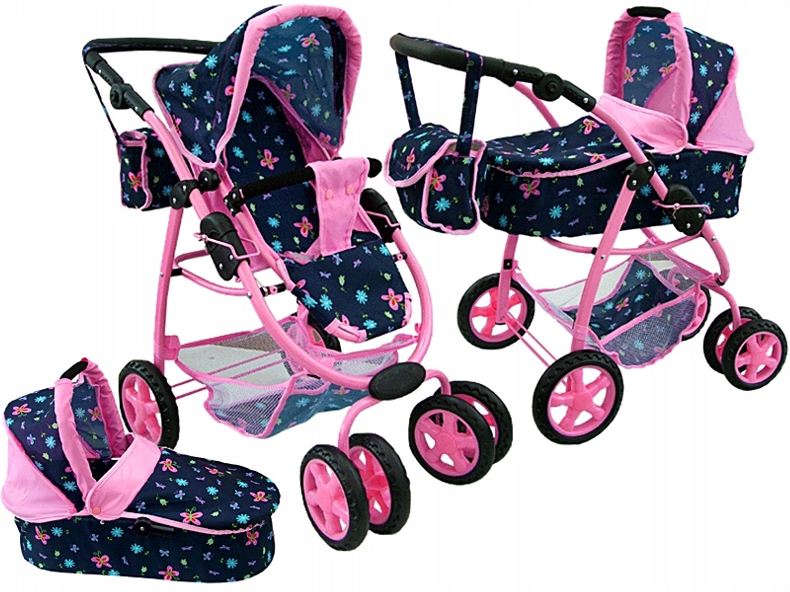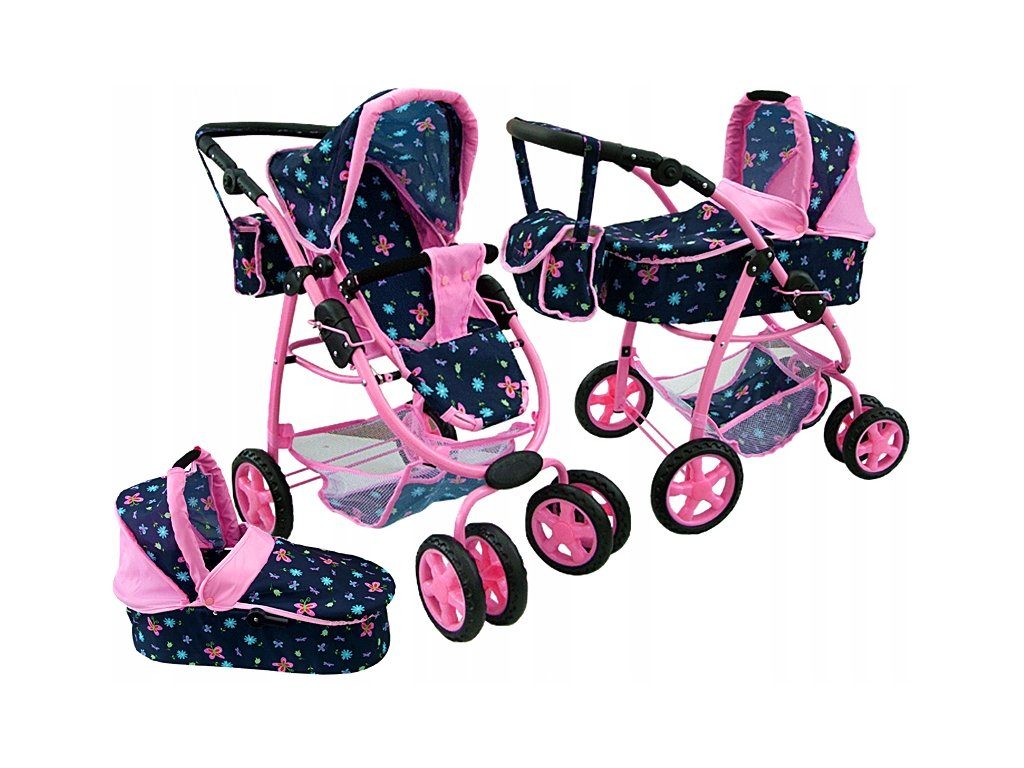 Kombinovaný kočárek pro panenky 3v1 v několika nádherných barevných provedeních. Má velmi lehkou stabilní konstrukci vyrobenou z hliníkových trubek, svrchní část je z impregnované bavlny. Lze ji jednoduše sejmout a kdykoliv vyprat. Rukojeť kočárku je nastavitelná a obalená pěnou. Uvnitř kočárku je korbička sloužící k snadnéme přenášení panenky. Před automatickým složením chrání dítě blokace. Panenka je ve sportovní verzi proti vypadnutí zabezpečena bezpečnostním pásem. Jednoduchá změna z hluboké na sportovní verzi.