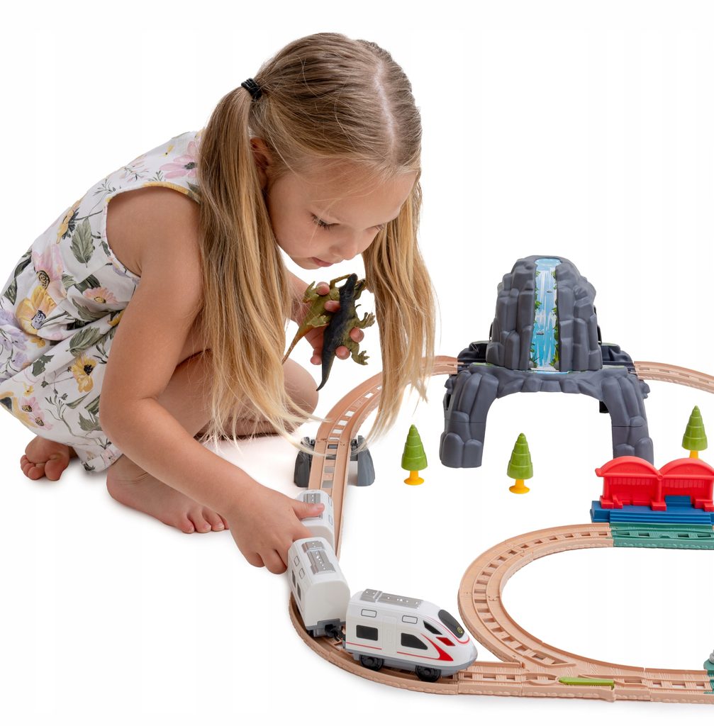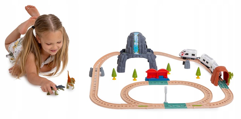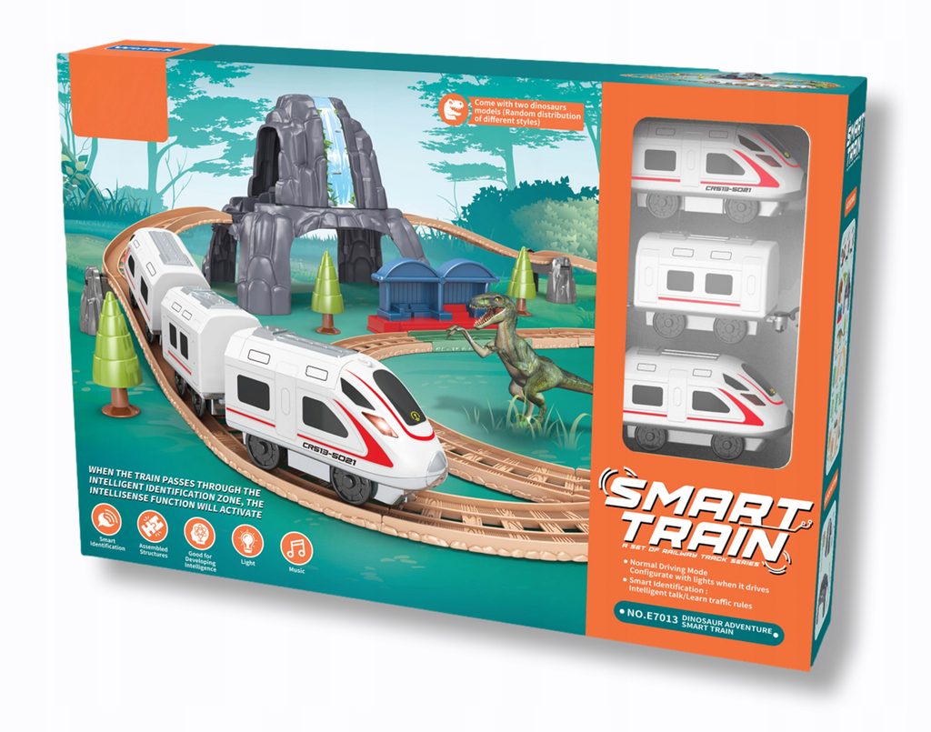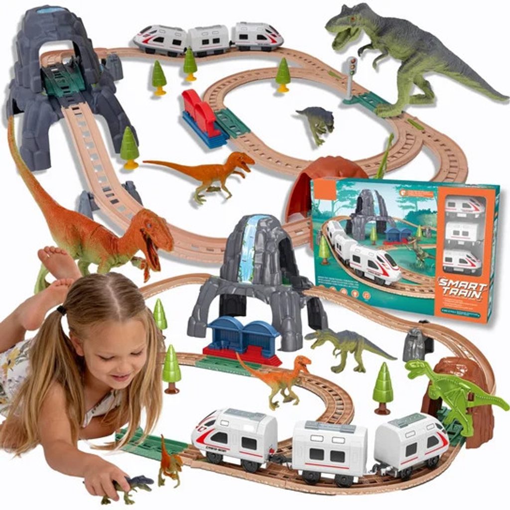 Dětská vláčkodráha s dinosaury Smart Train učí dětí představivost a podporuje kreativitu. Součástí sady jsou také tunely, stromečky, dva dinosauři a samolepky. Lokomotiva má dva různé režimy a také osvětlení. Hračka je určena pro děti od 36 měsíců věku.