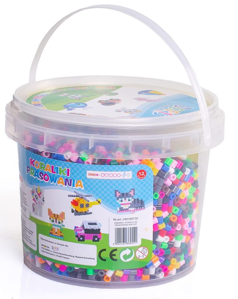 Doris sada barevných zažehlovacích korálků Color Iron Beads učí dětí představivost, podporuje kreativitu a manuální dovednosti. Sada obsahuje celkem 5000 ks korálků v 10 barevných odstínech. Lze z nich vytvářet různé vzory, tvary, náramky a náhrdelníky, které se potom zažehlí přes přes přiložený žehlící papír. Vše je uloženo v praktickém plastovém kyblíčku s horním úchytem. Hračka je určena pro děti od 6 let věku.