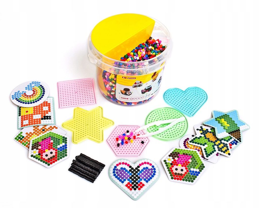 Doris sada barevných zažehlovacích korálků Iron Beads učí dětí představivost, podporuje kreativitu a manuální dovednosti. Sada obsahuje celkem 5000 ks korálků v 10 barevných odstínech. Lze z nich vytvářet různé vzory, tvary, náramky a náhrdelníky, které se potom zažehlí přes přes přiložený žehlící papír. Vše je uloženo v praktickém plastovém kyblíčku s horním úchytem. Hračka je určena pro děti od 6 let věku.