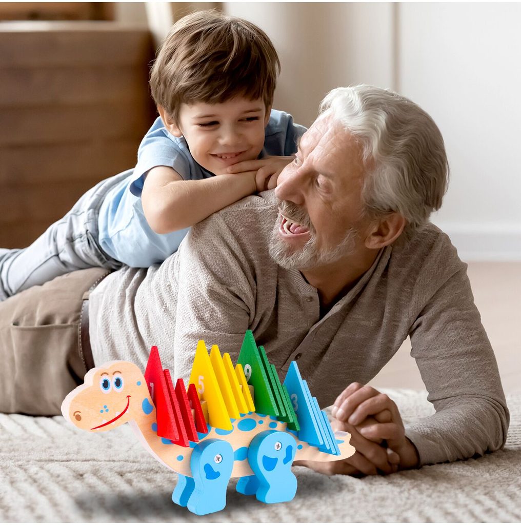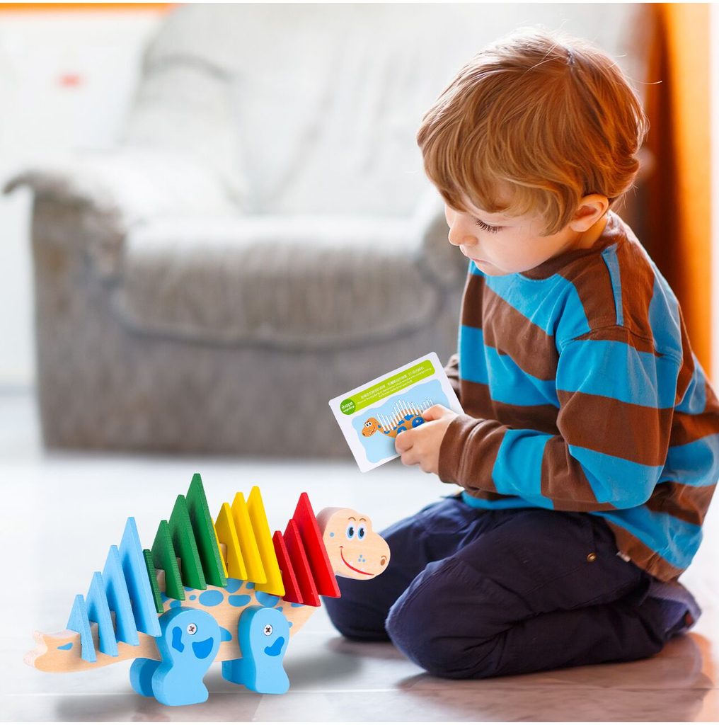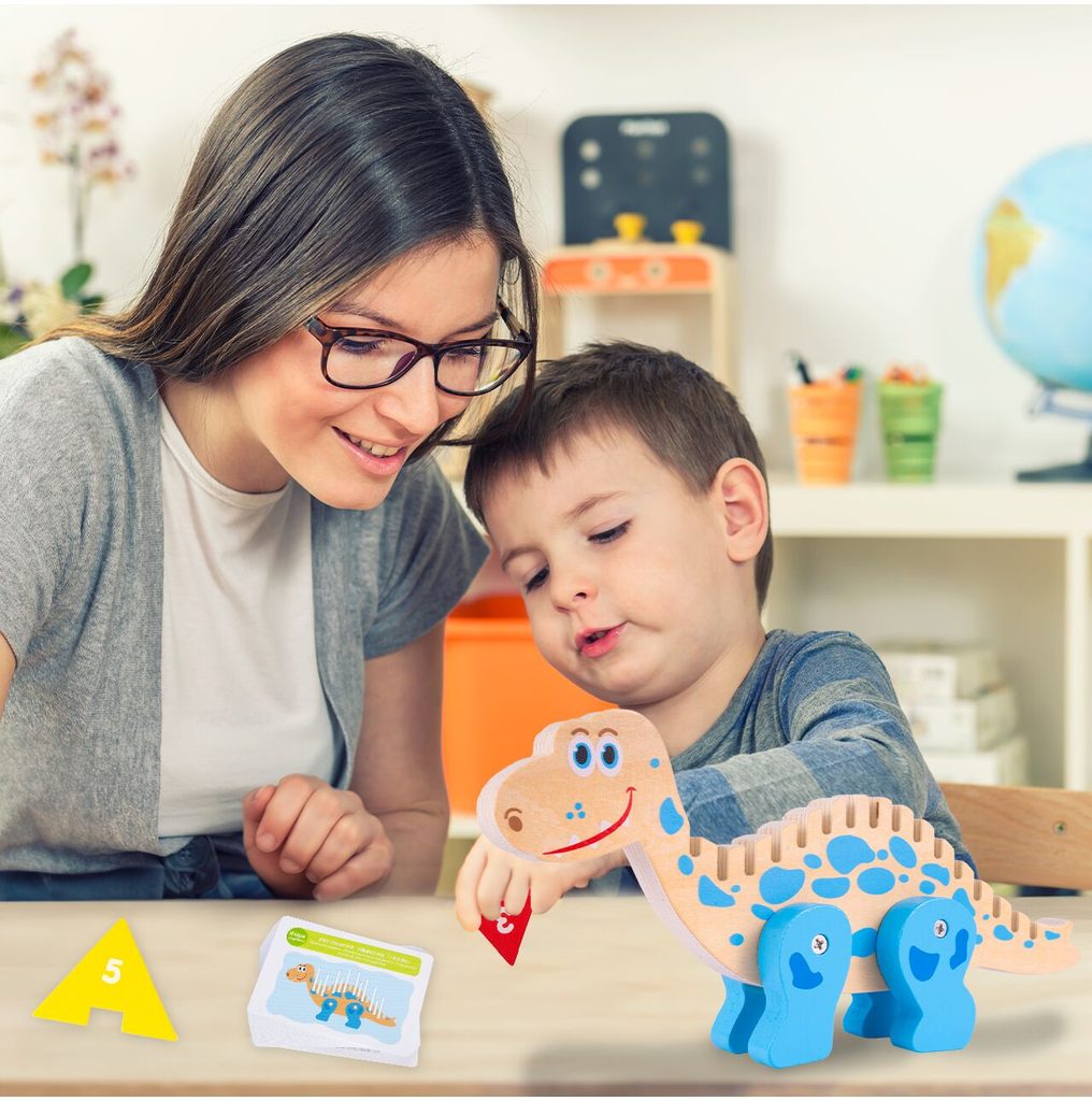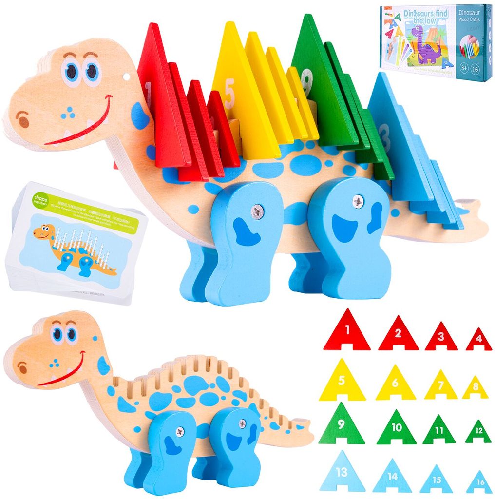 Dřevěná ukládačka Dinosaurus podporuje u nejmenších dětí představivost, rozpoznávání barev a zlepšuje motoriku. Hlavní soušást hry je dřevěný dinosaurus, dále pak hra obsahuje 16 dřevěných dílků s vyobrazenýmí číslicemi a 50 kartiček se vzorovými obrázky. Vše je vyrobeno ze dřeva bez ostrých hran. Hračka je určena pro děti od 36 měsíců věku.