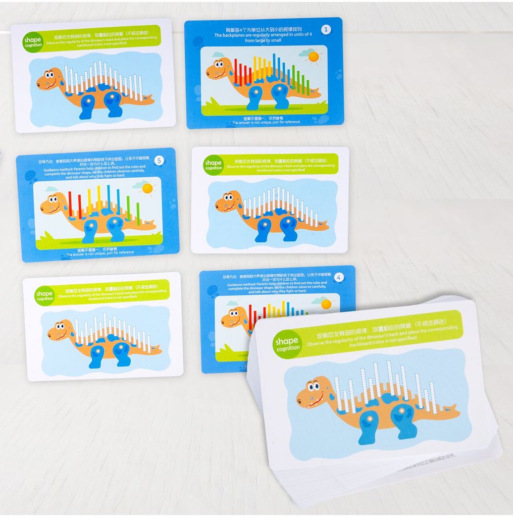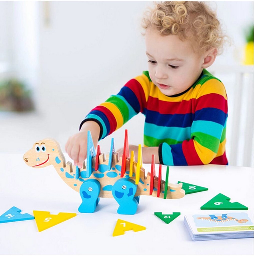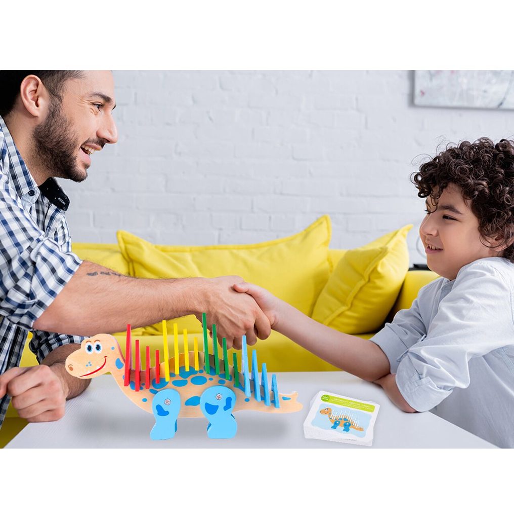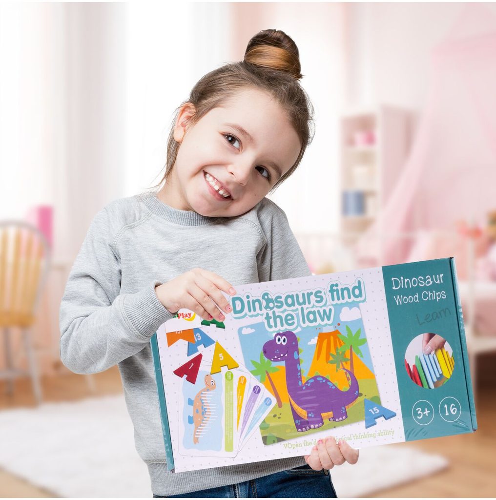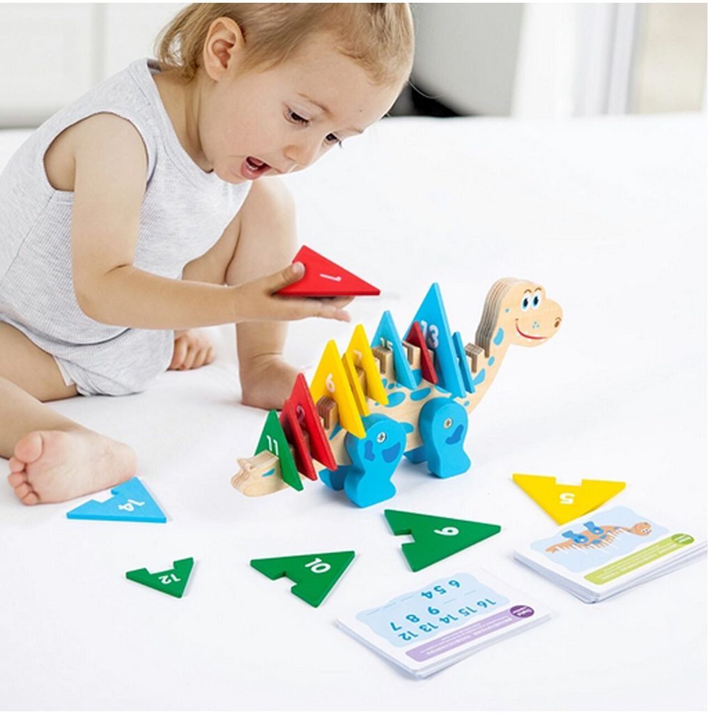 Dřevěná ukládačka Dinosaurus podporuje u nejmenších dětí představivost, rozpoznávání barev a zlepšuje motoriku. Hlavní soušást hry je dřevěný dinosaurus, dále pak hra obsahuje 16 dřevěných dílků s vyobrazenýmí číslicemi a 50 kartiček se vzorovými obrázky. Vše je vyrobeno ze dřeva bez ostrých hran. Hračka je určena pro děti od 36 měsíců věku.