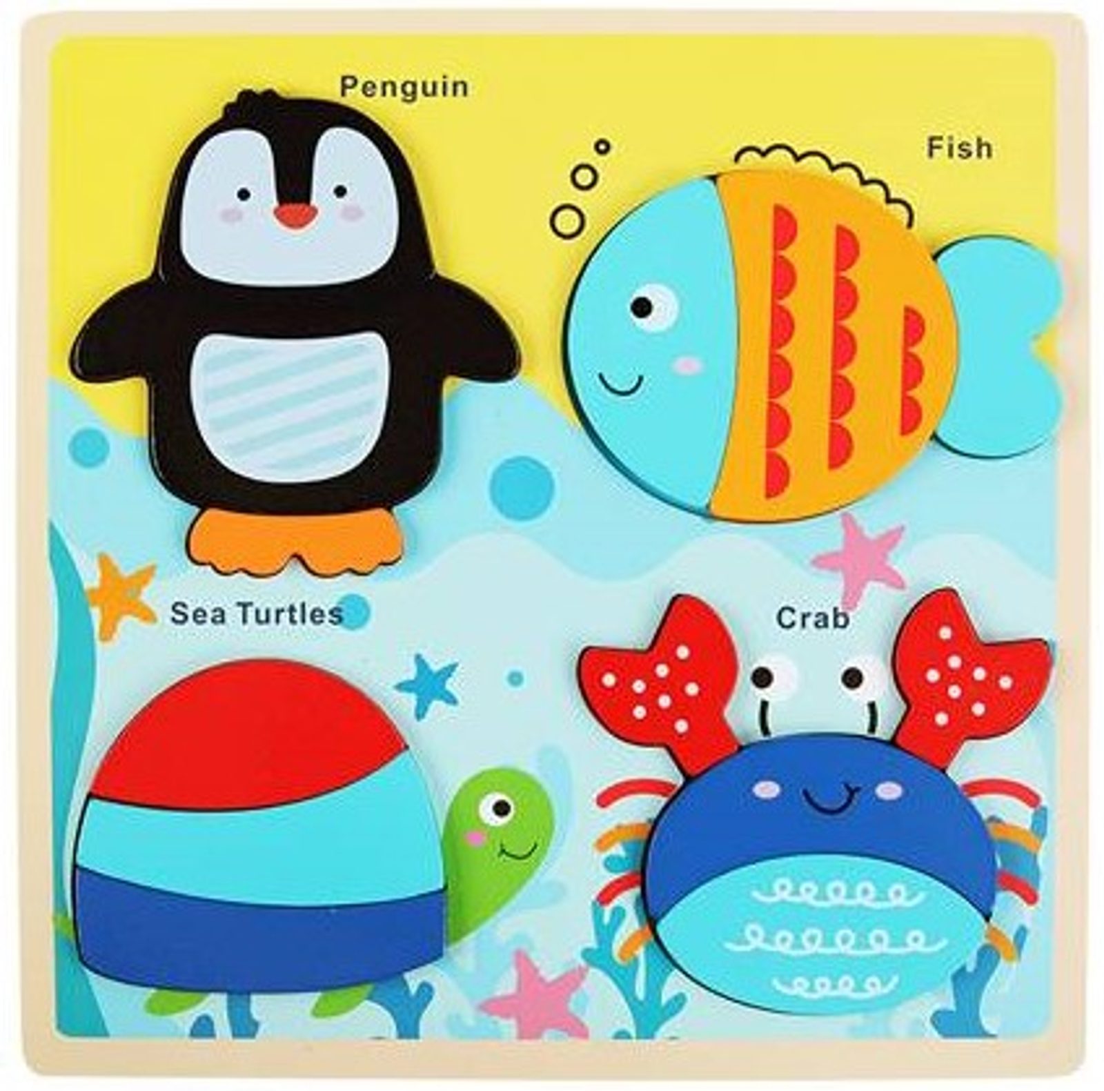 Dřevěná ukládačka se zvířátky podporuje u nejmenších dětí představivost, rozpoznávání barev a zlepšuje motoriku. Součástí jsou celkem 4 zvířátka rozložené na jednotlivé dílky, které se vkládají do otvorů v podložce. Najdete zde želvičku, kraba, rybu a tučňáka. Vše je vyrobeno ze dřeva bez ostrých hran. Hračka je určena pro děti od 12 měsíců věku.