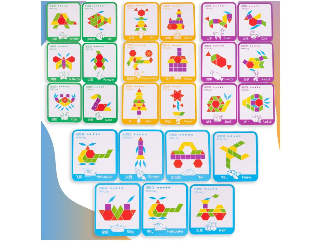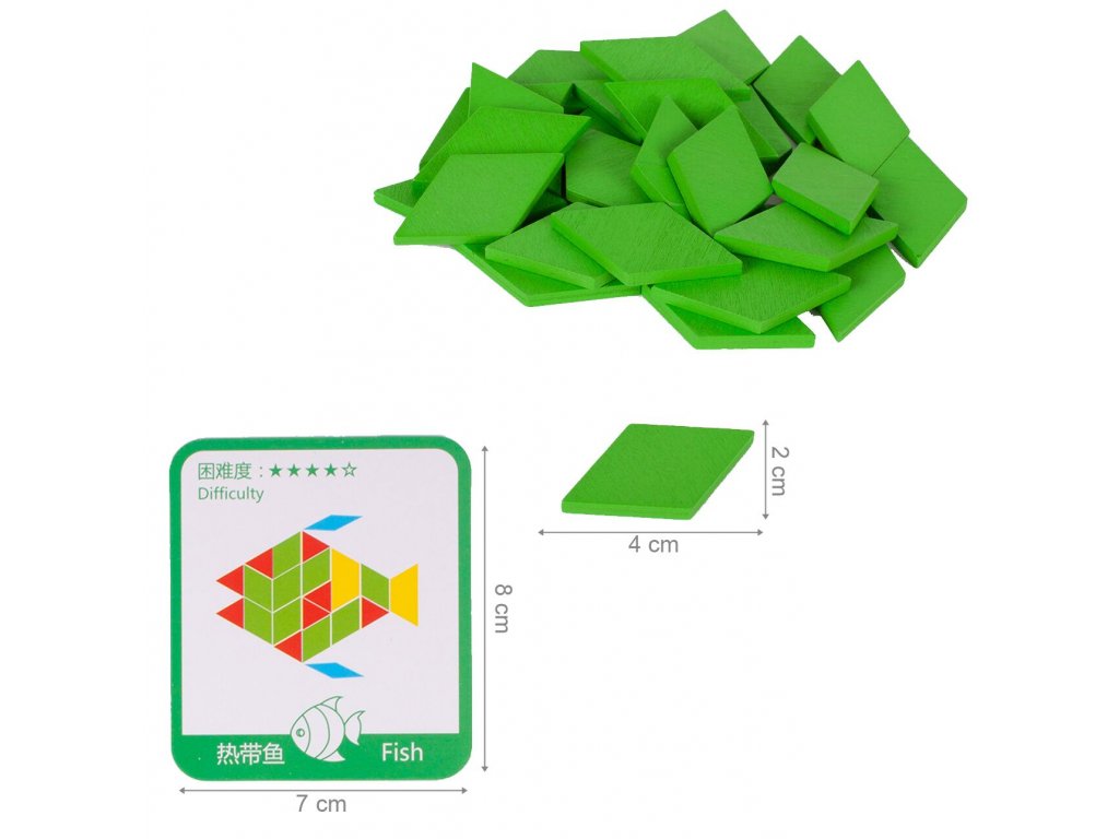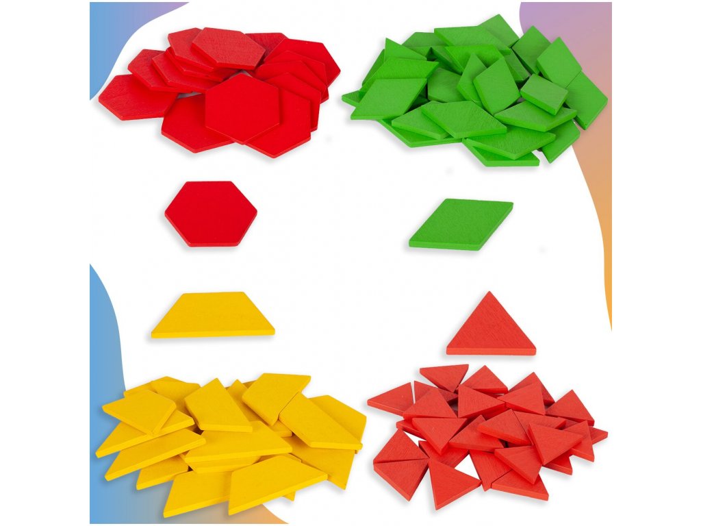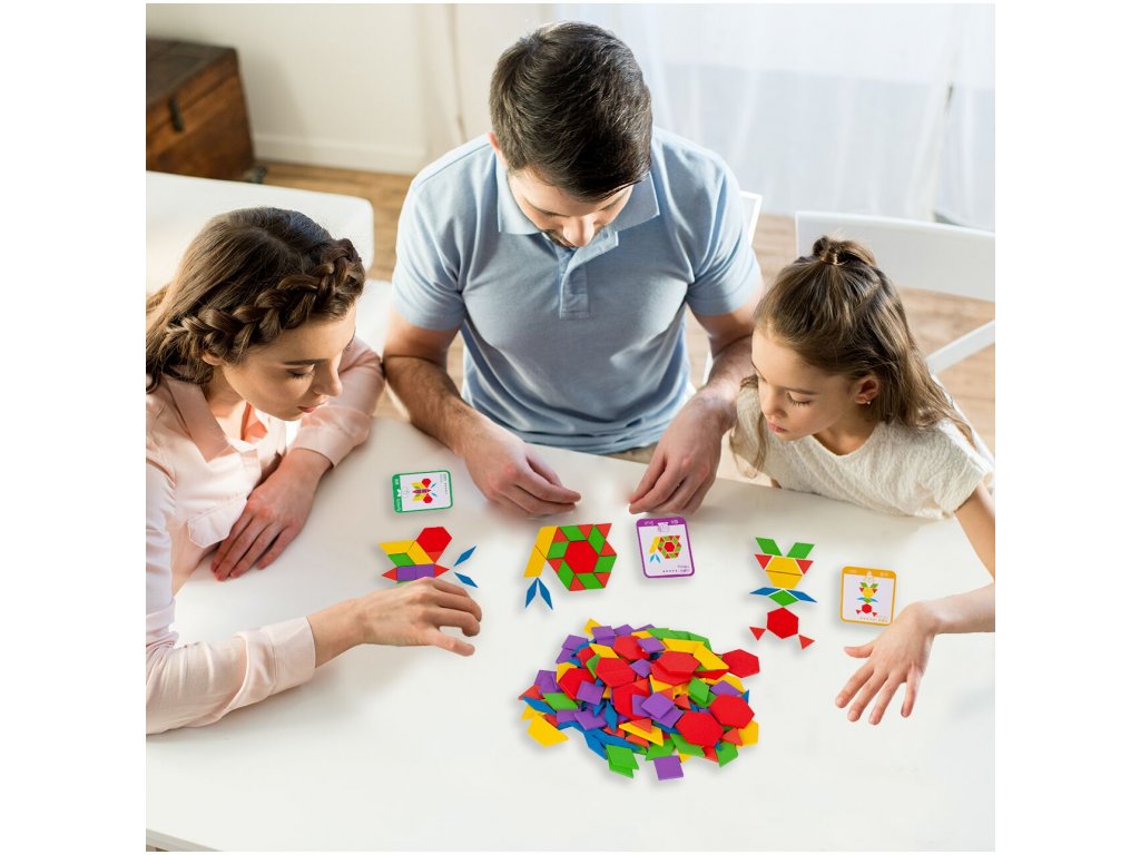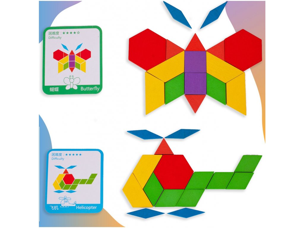 Dřevěné puzzle pro děti Pattern Blocks učí dětí koordinaci a podporuje kreativitu. Sada 155 dřevěných dílků v různých tvarech a živých barvách představuje nekonečné možnosti zábavy. Krabice obsahuje také 25 kartiček, které umožní vytvořit různé vzory dle obtížnosti. Názvy předmětů v angličtině vám navíc pomohou naučit se cizí jazyk. Hračka je určena pro děti od 36 měsíců věku.