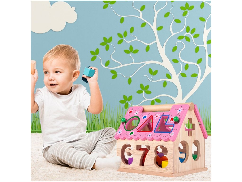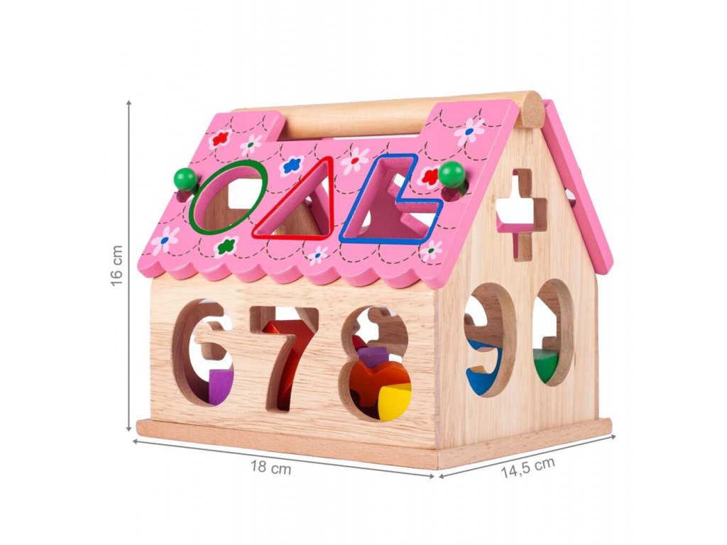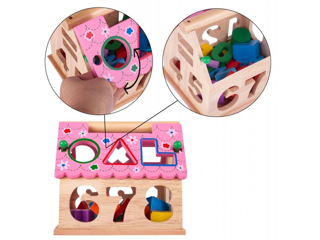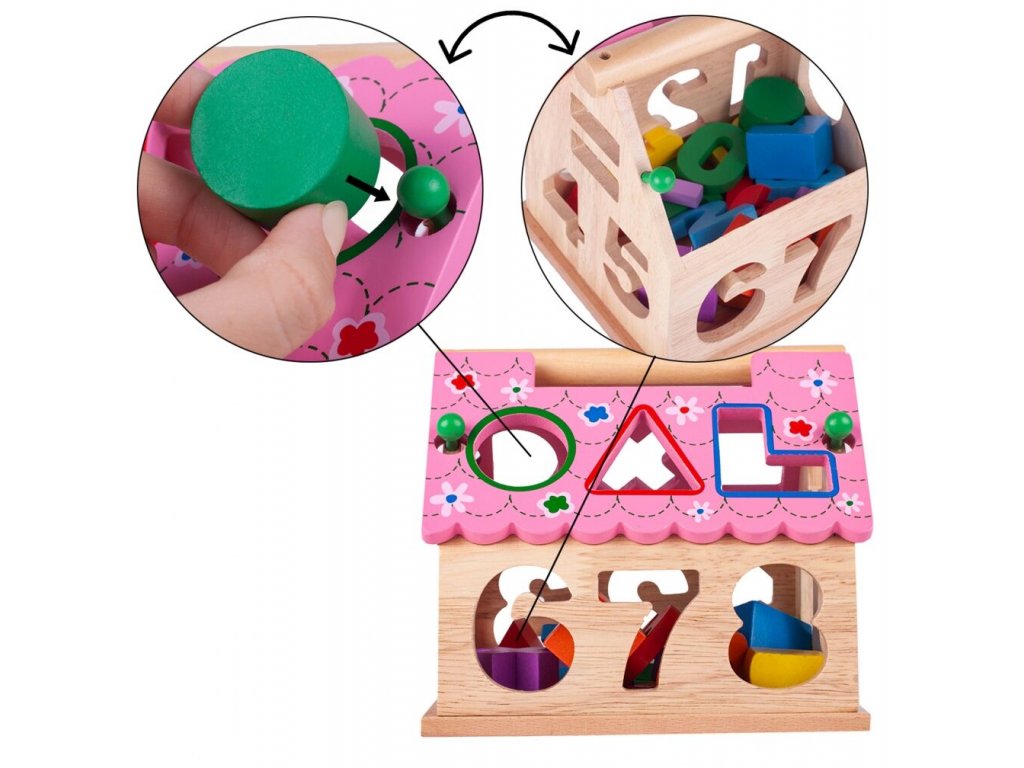 Dřevěný edukační domeček s prohazovacími otvoty Visdom House spojuje zábavu a učení. Každá stěna domečku má otvory různých tvarů, takže jim může dítě prohazovat kostky obsažené v sadě. Na střeše domu je úchyt pro snadné přenášení. Hra s touto hračkou procvičuje přesnost a trpělivost a rozvíjí manuální dovednosti dítěte.