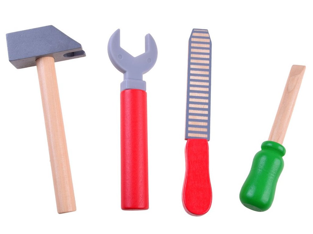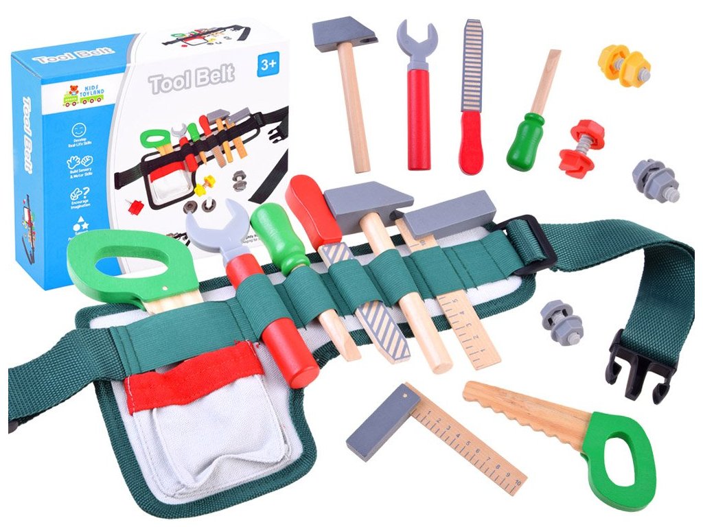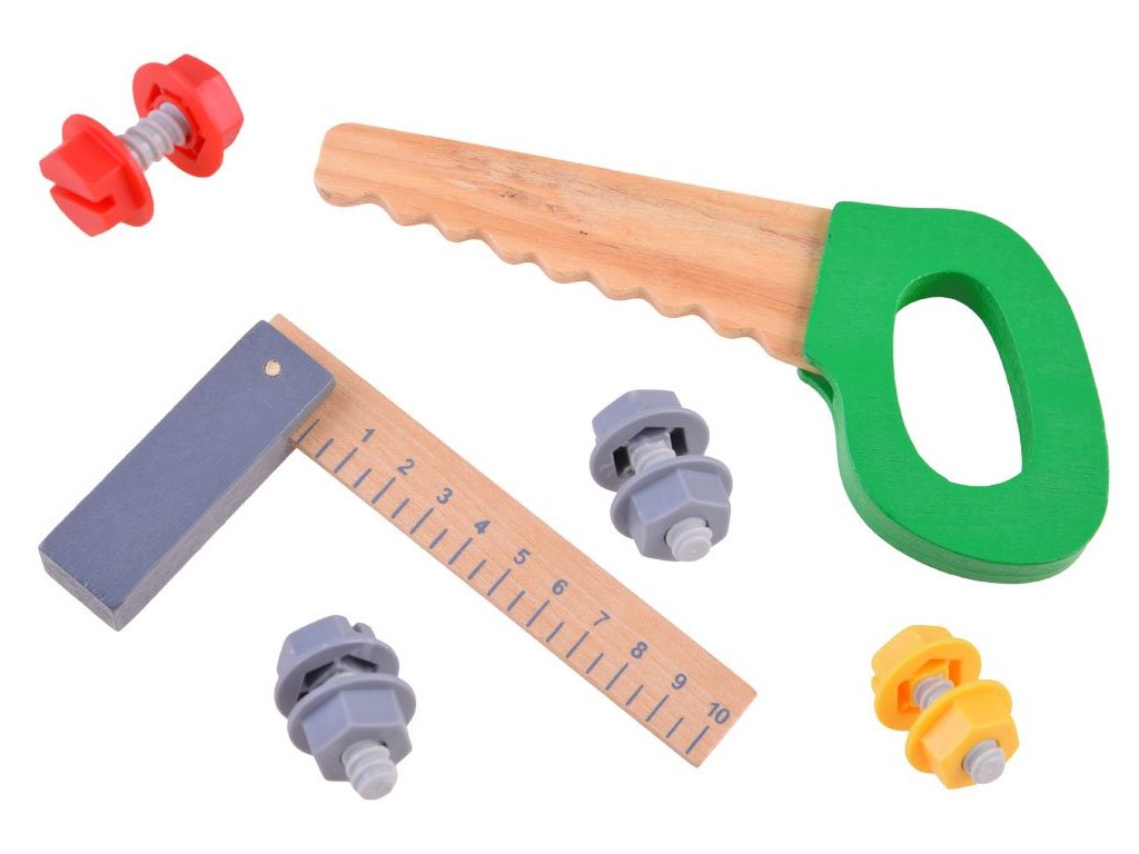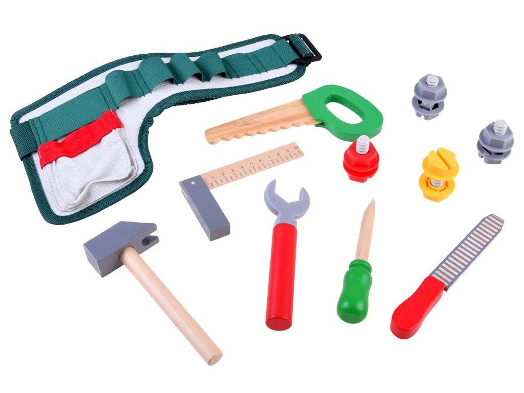 Sada dřevěného nářadí pro nejmenší kutily Malý opravář. Sada obsahuje několik druhů nářadí jako je pilka, kladívko, klíč, šroubovák, pilník a pravítko. Vše doplňují 4 kusy šroubů s maticemi. Vše se dá umístit do praktického pásu s nastavitelným obvodem pasu. Dítě tak může vše nosit sebou. Hračka je určena pro děti od 36 měsíců věku.