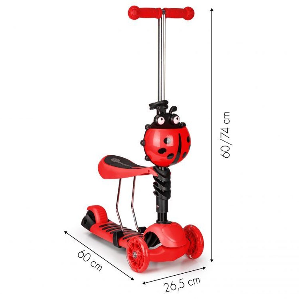 Ecotoys dětská koloběžka Bedrunka červená se sedátkem a svítícími koly
