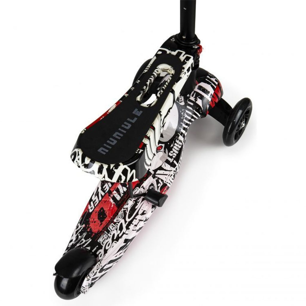 Ecotoys dětská koloběžka bílo-černá se sedátkem a svítícími koly