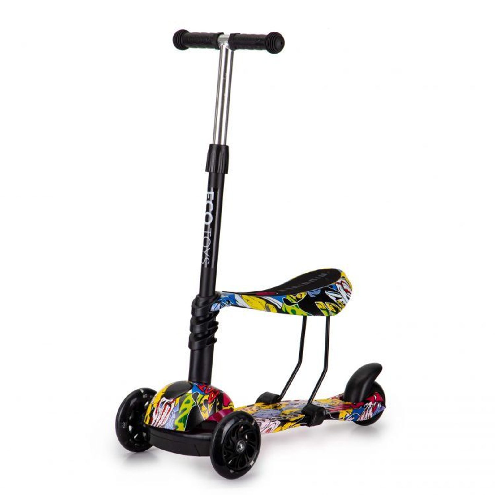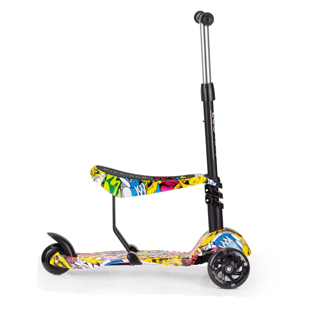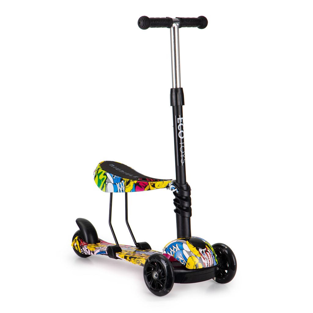 Ecotoys dětská koloběžka se sedátkem a svítícími koly Graffiti černo-žlutá