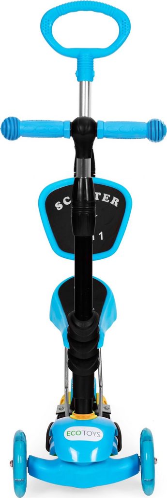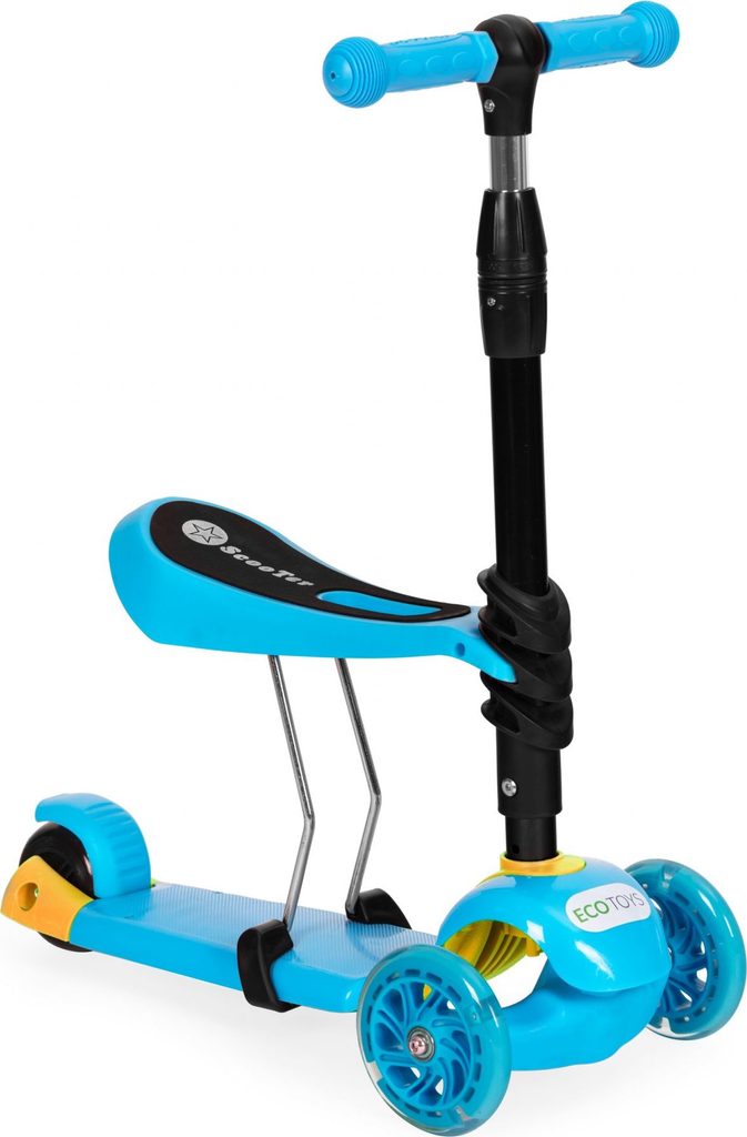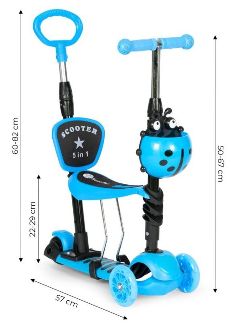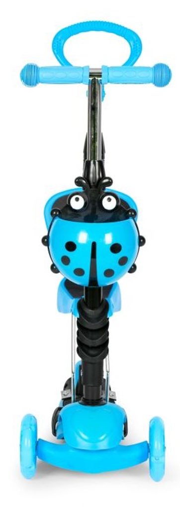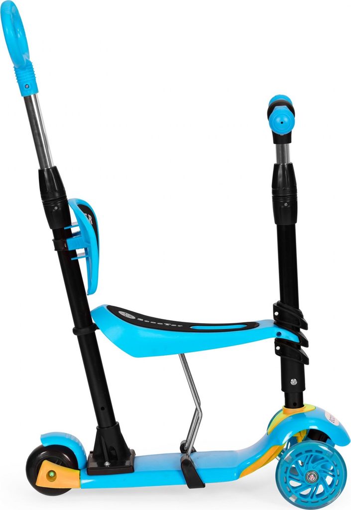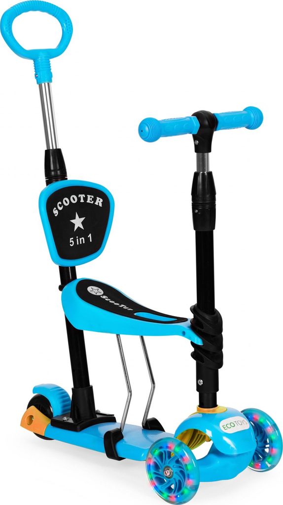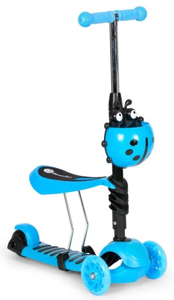 Dětská balanční koloběžka Ecotoys Bedrunka se svítícími koly a demontovatelným sedátkem. Koloběžku lze využít celkem 5 způsoby. Je osazena tichými protiskluzovými koly s LED světly, které svítí během jízdy. Zatáčení probíhá na principu pohybu těla - nakláněním. Řídítka mají nastavitelnou výšku a protiskluzovou úpravu rukojeťí. V zadní části je umístěn blatník, který slouží jako nožní brzda. Koloběžka je určena pro děti od 3 let věku a 20 kg hmotnosti.