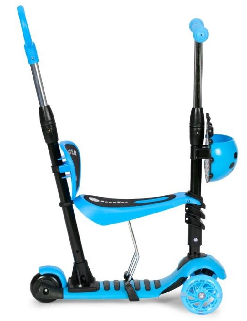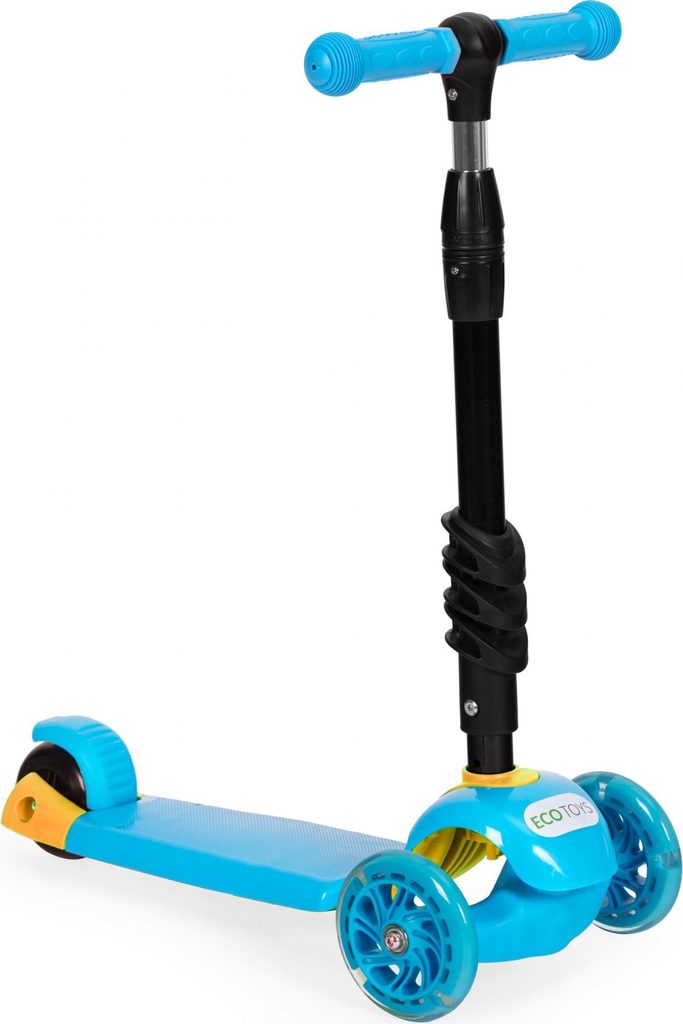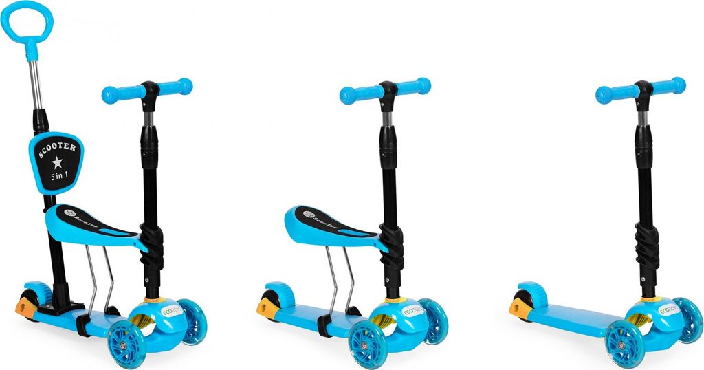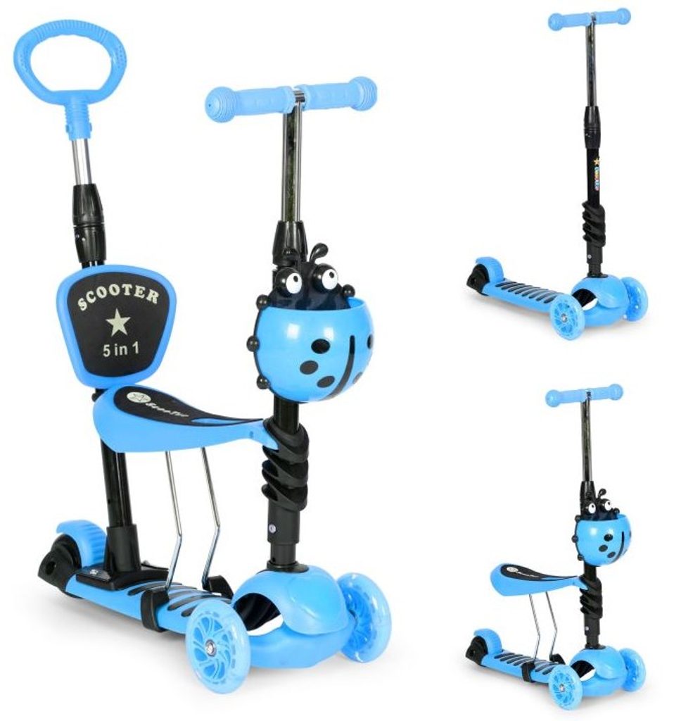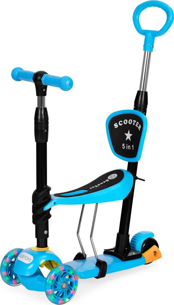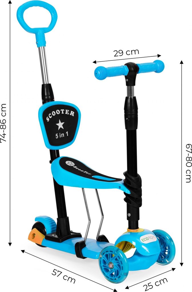 Dětská balanční koloběžka Ecotoys Bedrunka se svítícími koly a demontovatelným sedátkem. Koloběžku lze využít celkem 5 způsoby. Je osazena tichými protiskluzovými koly s LED světly, které svítí během jízdy. Zatáčení probíhá na principu pohybu těla - nakláněním. Řídítka mají nastavitelnou výšku a protiskluzovou úpravu rukojeťí. V zadní části je umístěn blatník, který slouží jako nožní brzda. Koloběžka je určena pro děti od 3 let věku a 20 kg hmotnosti.