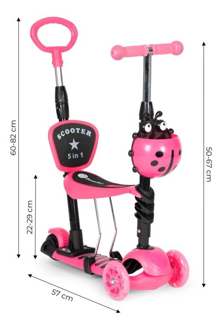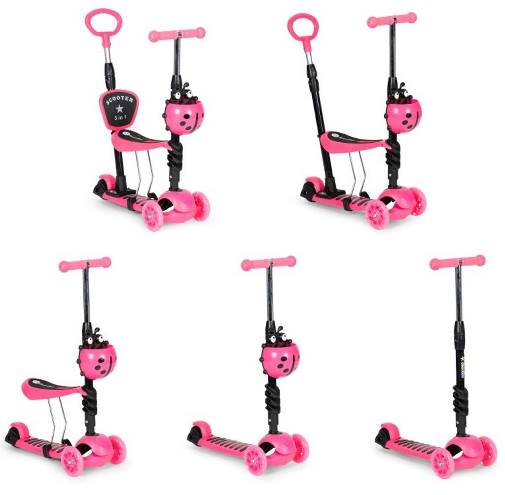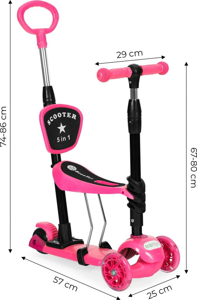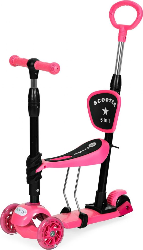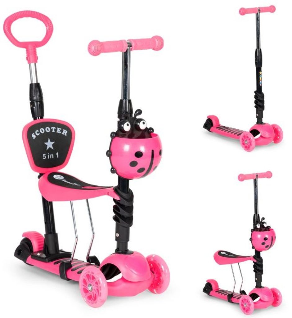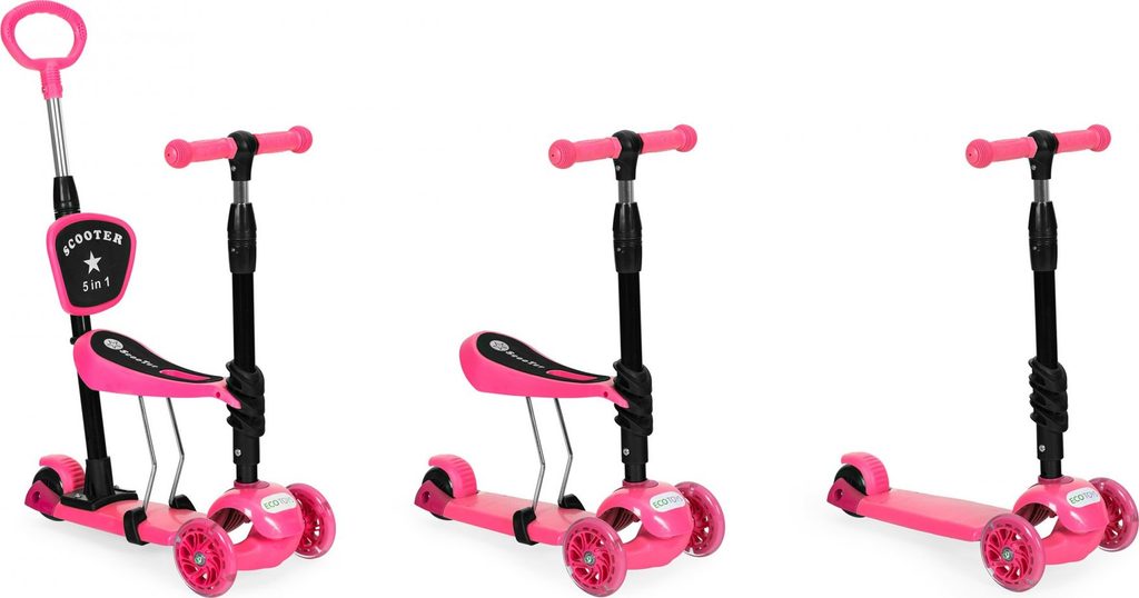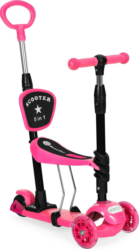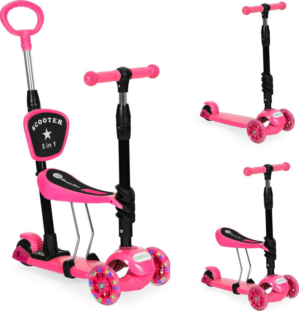 Ecotoys dětská koloběžka se svítícími koly Bedrunka růžová 5v1