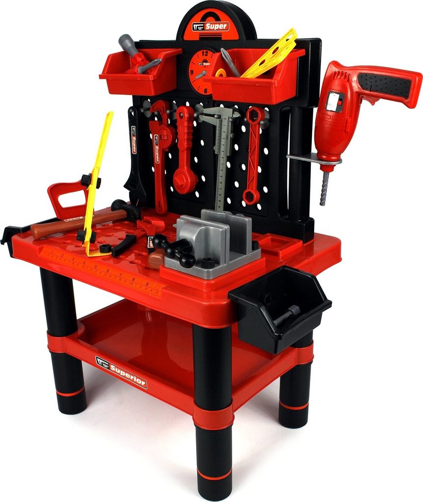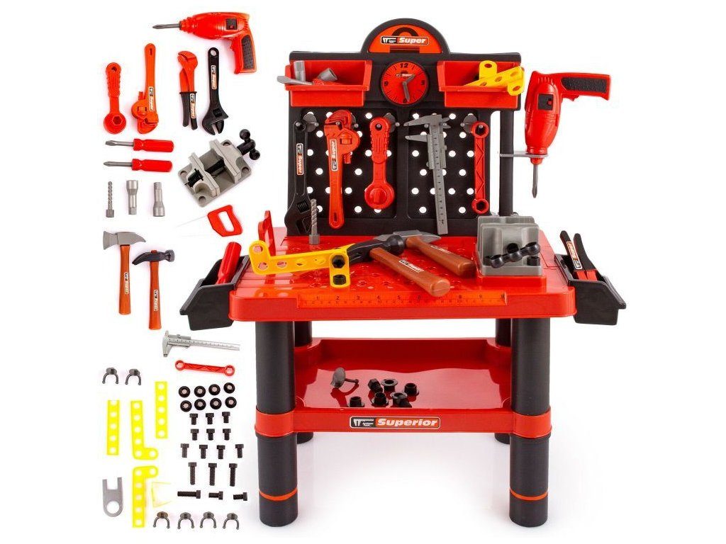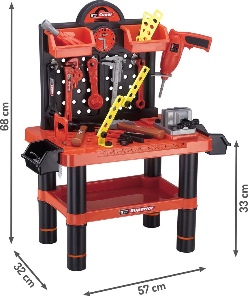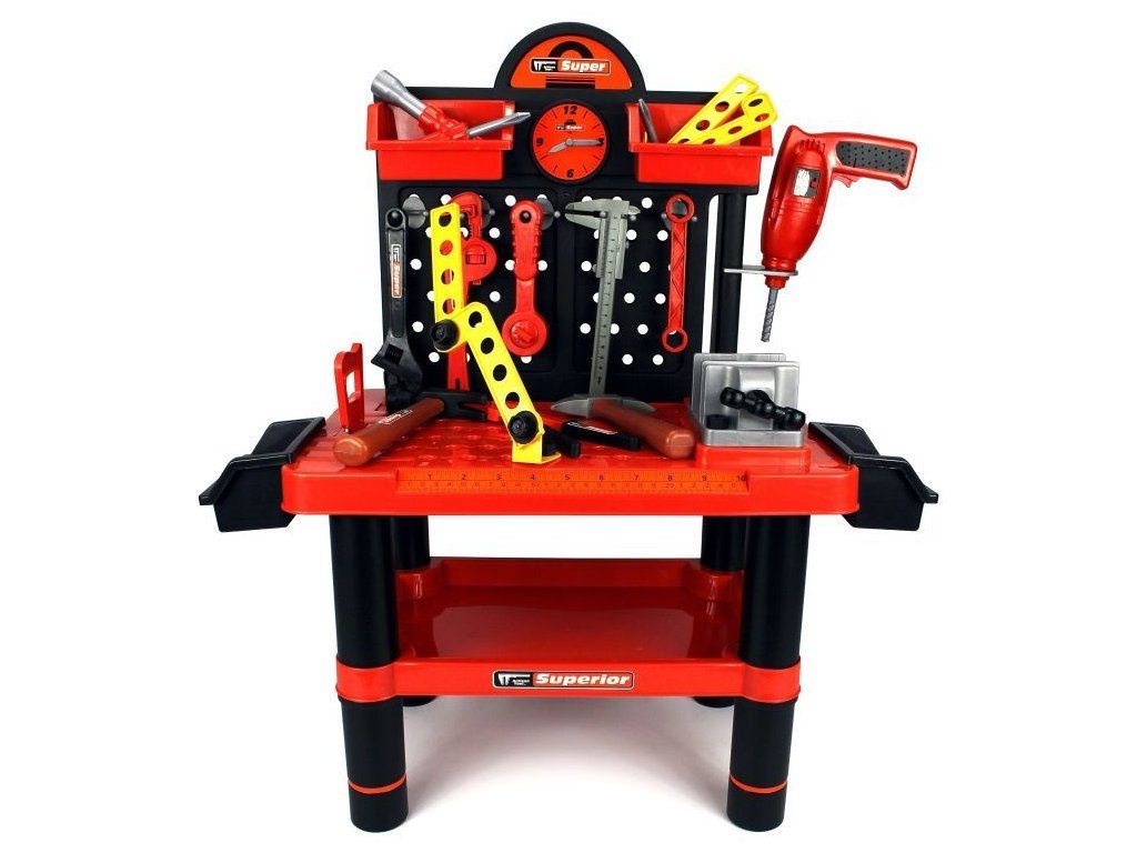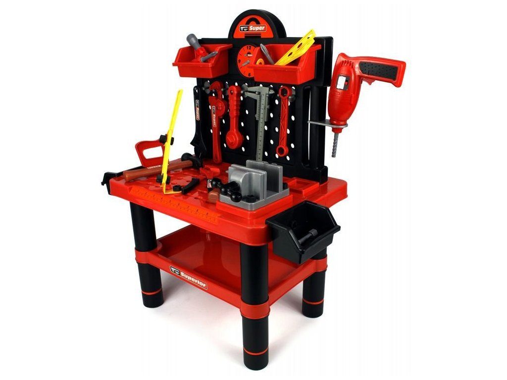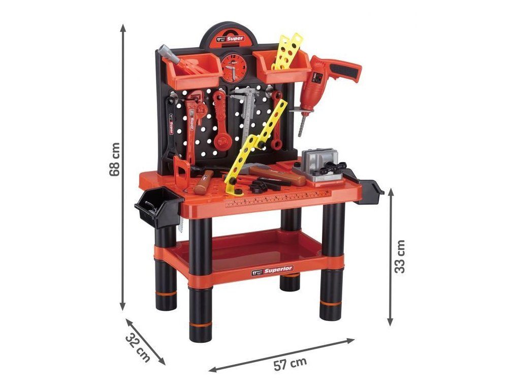 Ecotoys plastová pracovní dílna Superior je určena pro ty nejmenší kutily. Sada obsahuje celkem 50 součástí včetně pilky, pravítka, kladívka, klíče, šroubků, matic a dalších konstrukčních prvků. Ve spodní části je umístěna praktická police. V horní části je umístěn svěrák a na hlavním panelu jsou otvory pro zašroubování šroubků. Součástí pracovního stolu je také vrtačka, bez které se žádný kutil neobejde. Hračka je určena pro děti od 36 měsíců věku.
