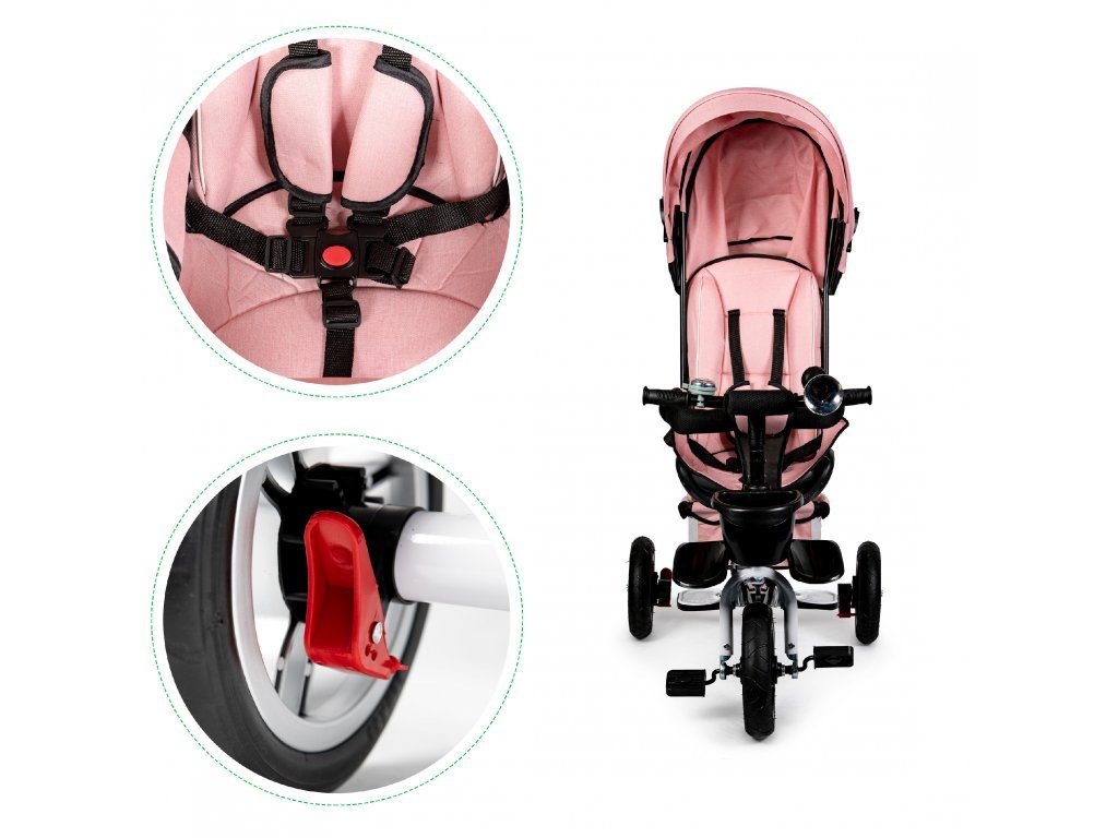 Ecotoys dětská tříkolka s otočným sedadlem a nafukovacími koly Rotage světle růžová