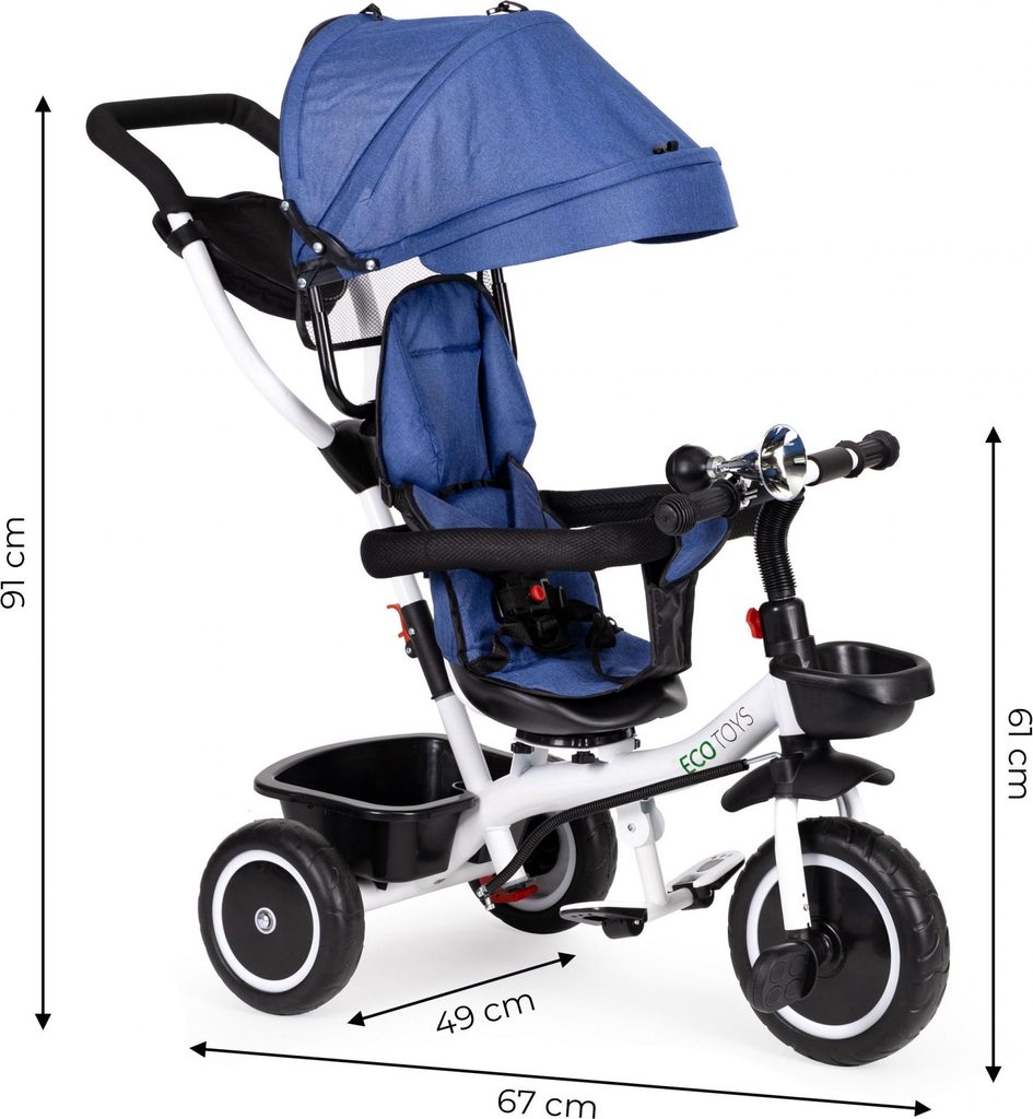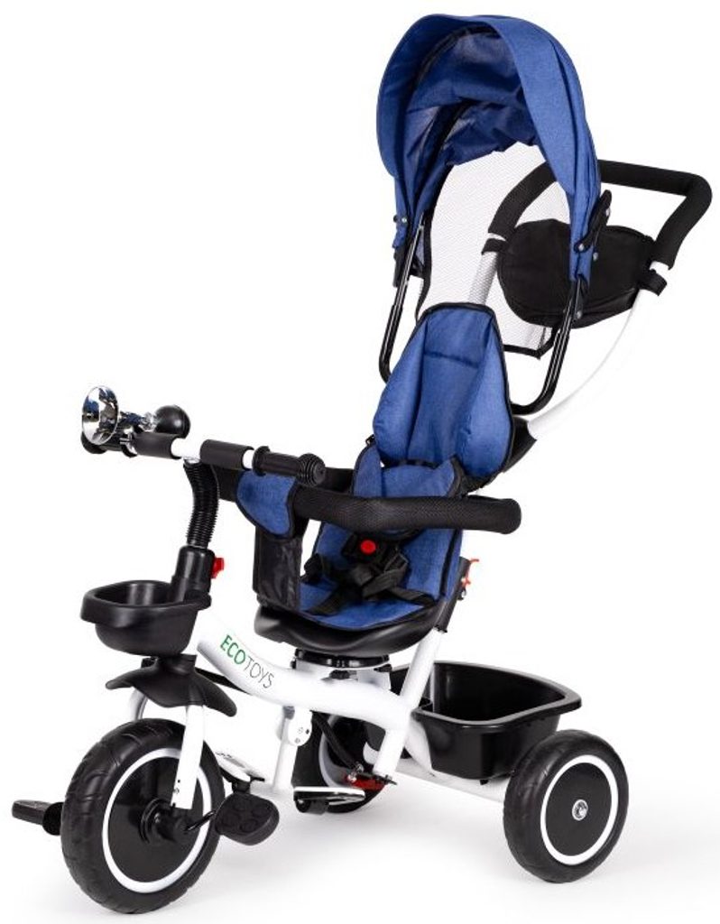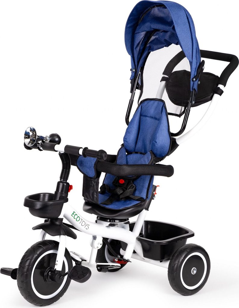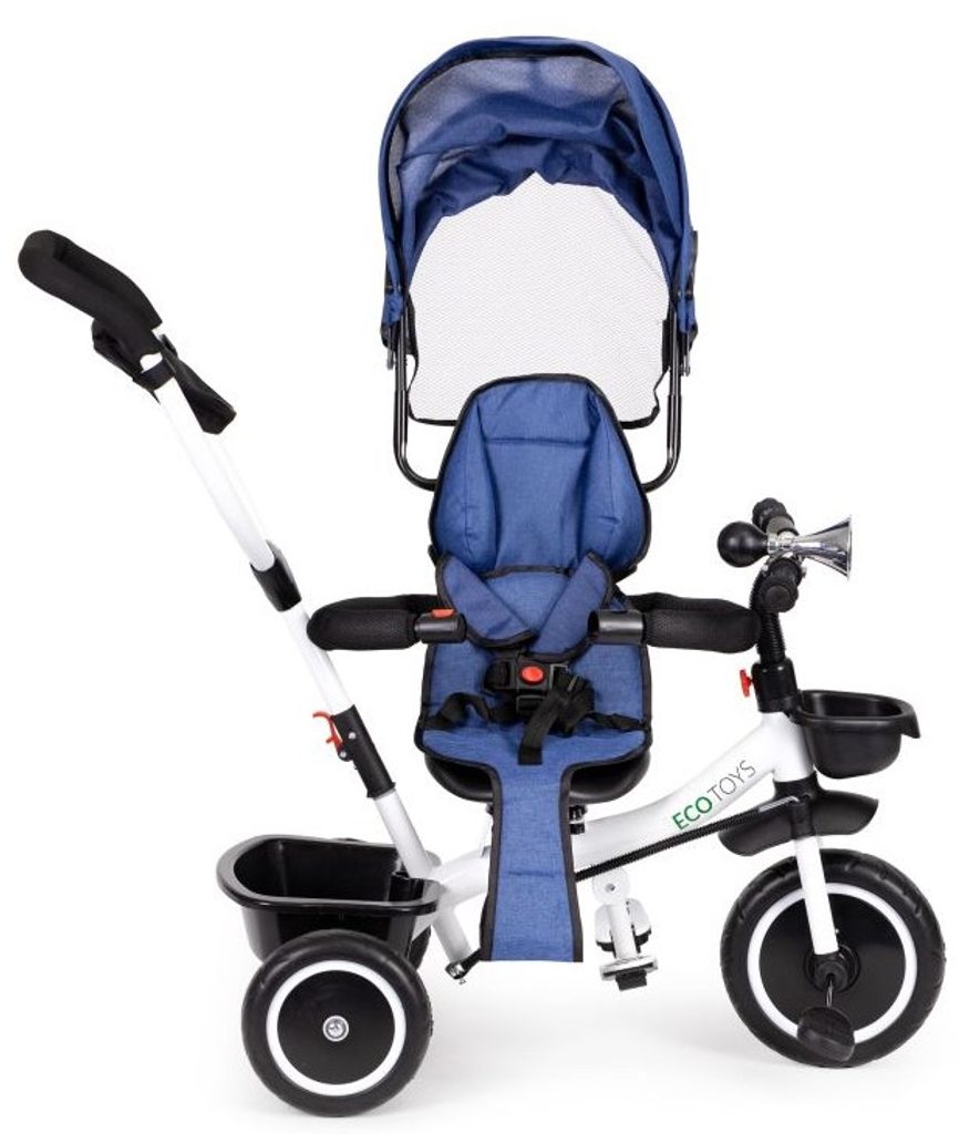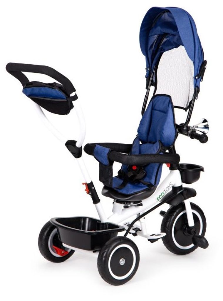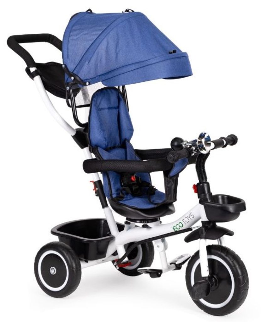 Dětská tříkolka Ecotoys S360 s otočným sedadlem je určena pro děti od 1 do 5 let. Vybavena praktickou odnímatelnou stříškou proti slunci a dešti. V zadní části je umístěn velký koš na hračky, v přední části potom menší košík. Tříkolka má pevnou ocelovou konstrukci a odolná EVA kola usazená v pevných plastových ráfcích. Madlo a 5 bodové bezpečnostní pásy zabraňují vypadnutí dítěte z kočárku. Na řídítkách je umístěný klakson. Pro větší bezpečnost mohou tříkolku řídit i rodiče a zadní kola mají 2 nezávislé brzdy. Sedadlo lze otočit o 360° a to ve směru jízdy nebo čelem k rodiči a navíc usnadní nastupování nejmladším dětem.