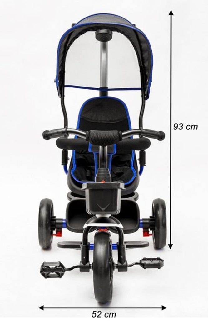 Dětská tříkolka Ecotoys X360 s otočným sedadlem je určena pro děti od 1,5 do 5 let. Vybavena praktickou odnímatelnou stříškou proti slunci a dešti. V zadní části je umístěn velký koš na hračky, v přední části potom menší košík. Tříkolka má pevnou ocelovou konstrukci a odolná kola z pěnového plastu usazená v pevných plastových ráfcích. Madlo a 3 bodové bezpečnostní pásy zabraňují vypadnutí dítěte z kočárku. Na vodící tyči je umístěný držák na láhev. Pro větší bezpečnost mohou tříkolku řídit i rodiče a zadní kola mají 2 nezávislé brzdy. Sedadlo lze otočit o 360° a to ve směru jízdy nebo čelem k rodiči a navíc usnadní nastupování nejmladším dětem.