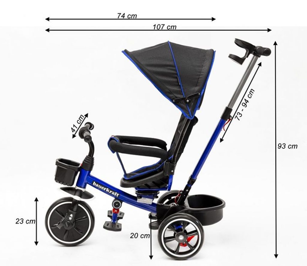 • součástí je regulovatelná vodící tyč které umožňuje rodičům řídit