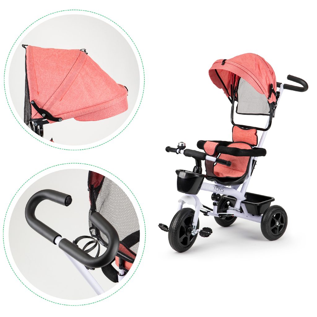 • Ecotoys dětská tříkolka se sklopnou stříškou Basic růžová
