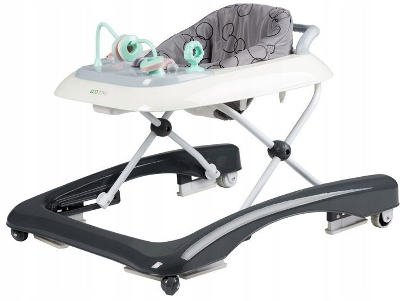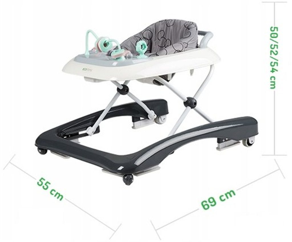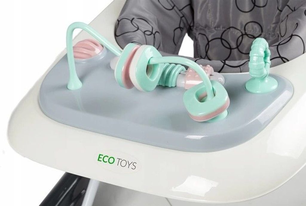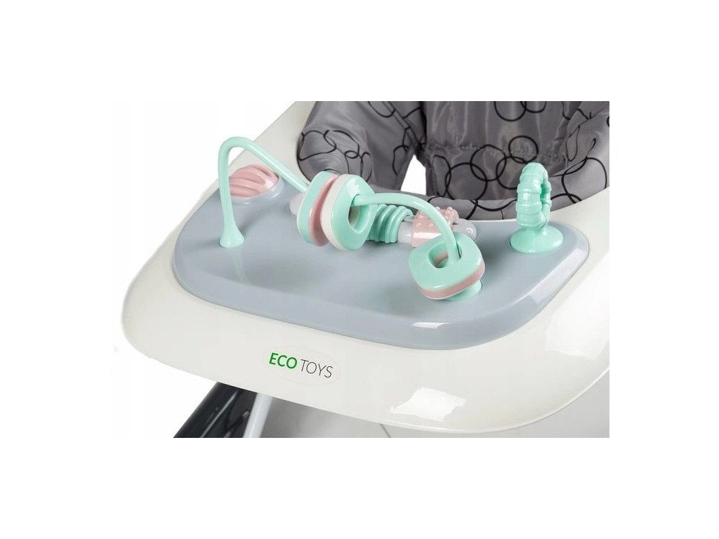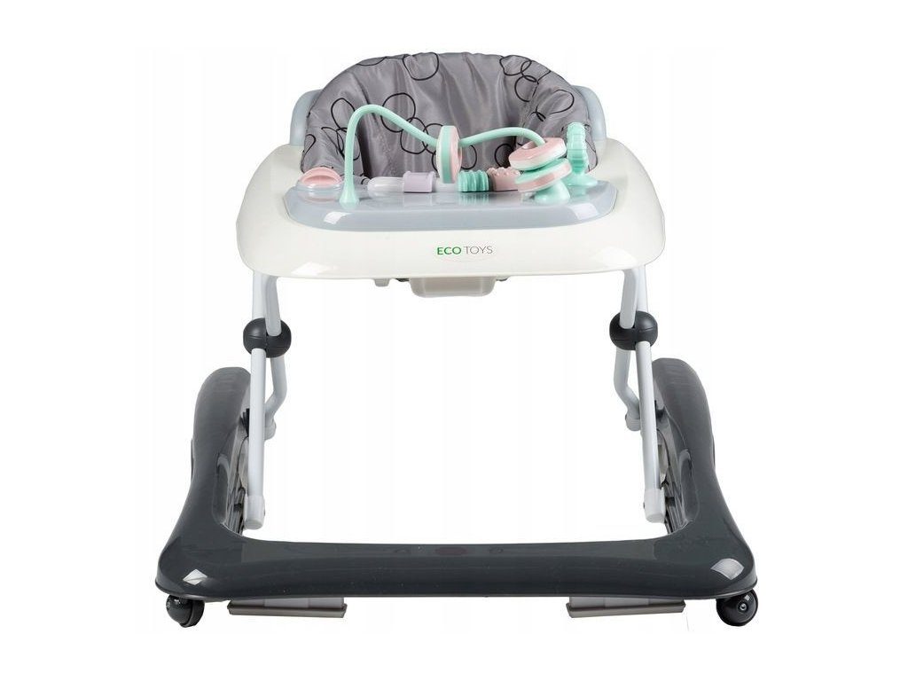 Dětské chodítko Ecotoys s interaktivním předním panelem je určeno pro děti od 6 měsíců věku. Výšku chodítka lze nastavit v závislosti na výšce dítěte. Je opatřeno 4 kolečky kdy přední jsou otočná a zadní pevná, silikonová sloužící jako blokace proti něchtěnému pohybu. Potah sedátka lze sejmou a prát v pračce. Na spodní straně je umístěn stabilizační rám zabraňující převrácení. Kolečka chodítka jsou vyrobeny z protiskluzového materiálu, který nepoškrábe podlahu. Splňuje veškeré normy které jsou vyžadovány pro dětské chodítka.