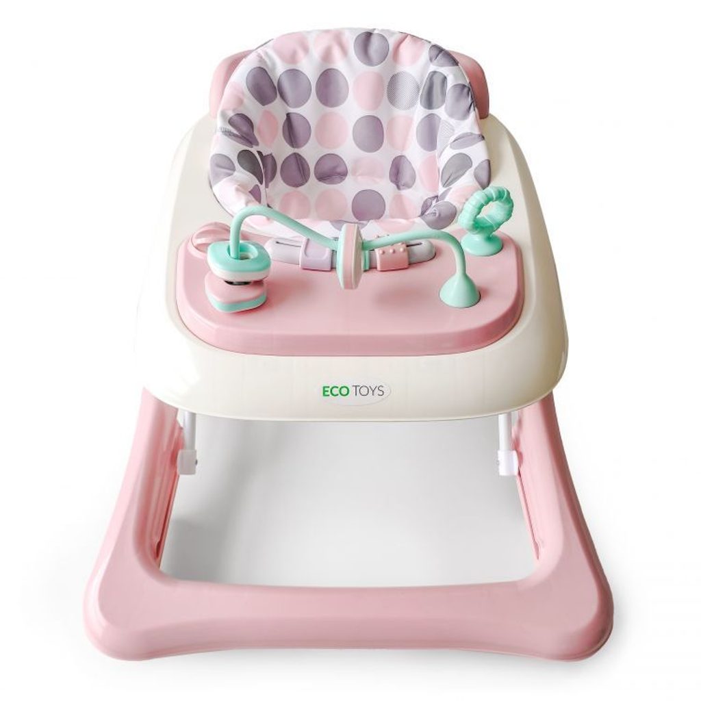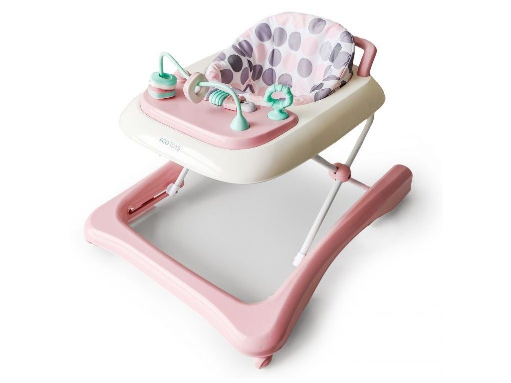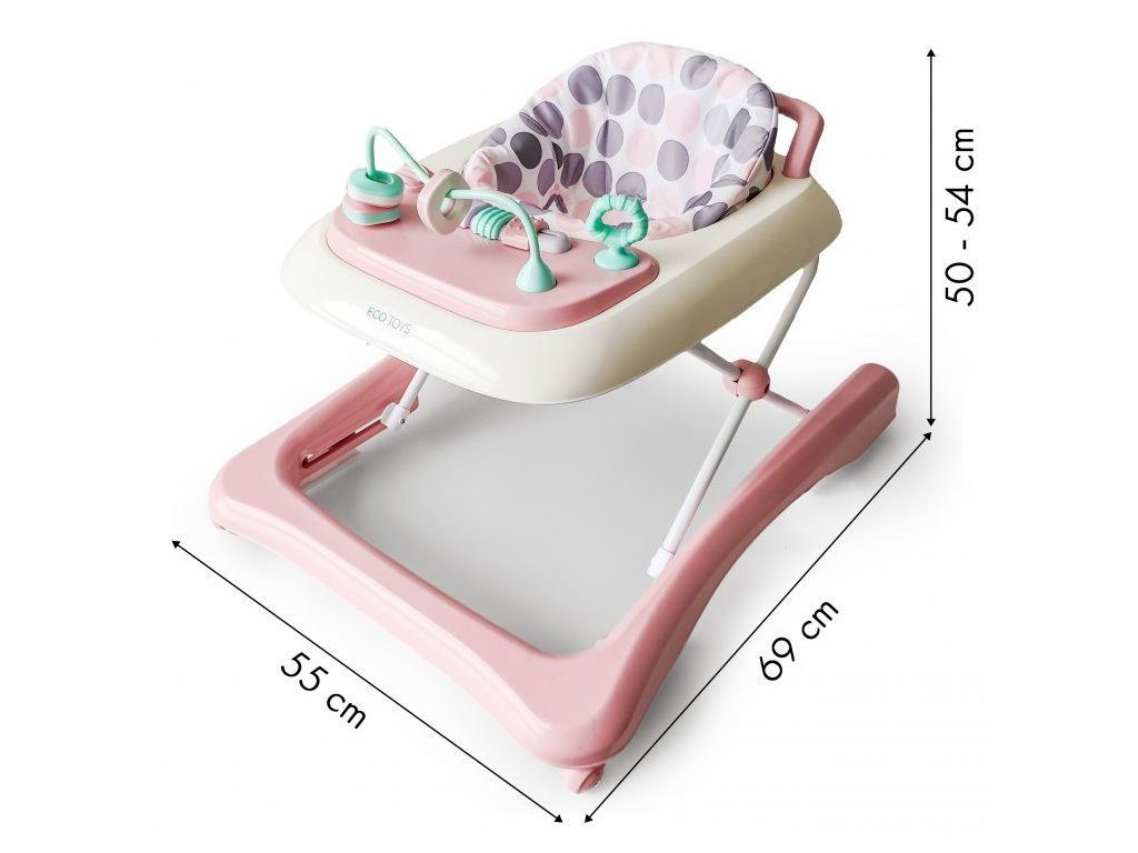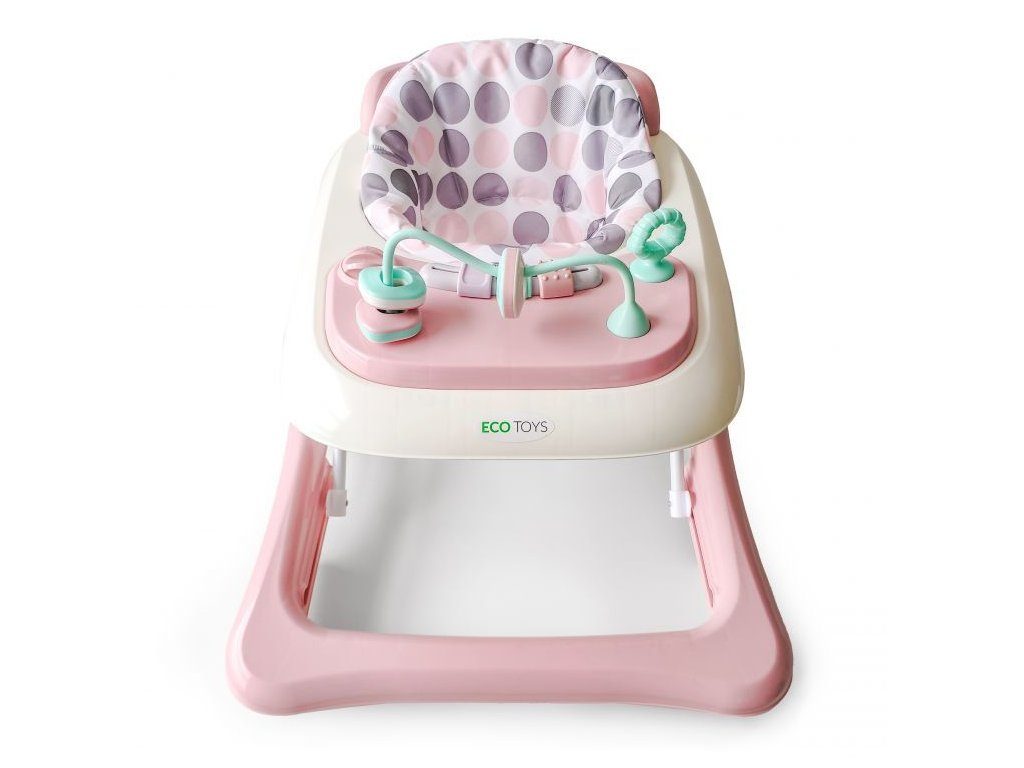 Dětské chodítko Ecotoys s interaktivním předním panelem je určeno pro děti od 6 měsíců věku. Výšku chodítka lze nastavit v závislosti na výšce dítěte. Je opatřeno 4 kolečky kdy přední jsou otočná a zadní pevná, silikonová sloužící jako blokace proti něchtěnému pohybu. Potah sedátka lze sejmou a prát v pračce. Na spodní straně je umístěn stabilizační rám zabraňující převrácení. Kolečka chodítka jsou vyrobeny z protiskluzového materiálu, který nepoškrábe podlahu. Splňuje veškeré normy které jsou vyžadovány pro dětské chodítka.