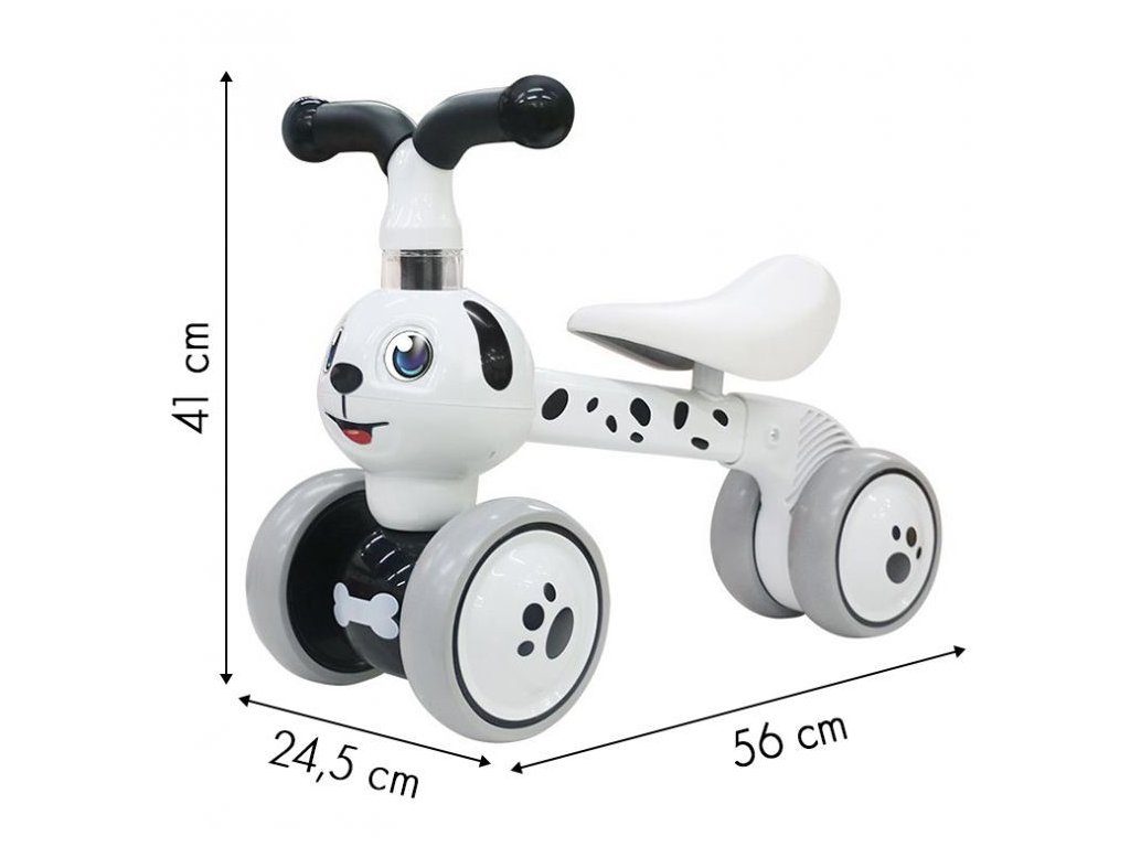 Ecotoys dětské odrážedlo Pejsek v bílém provedení pomáhá dítěti koordinovat pohyb a udržovat rovnováhu. Má lehkou a stabilní konstrukci. Sedátko je velmi pohodlné a vytvarované pro co nejpříjemnější sezení. Pro ještě větší zábavu je odrážedlo vybaveno funkcí otáčení očiček pejska ve směru jízdy. Stabilitu odrážedla zajištují přední a zadní dvojitá pěnová kola. Ty jsou umožňují tichý provoz a nezanechávají šmouhy na podlaze. Odrážedlo nemá žádné ostré hrany a je tedy velmi bezpečné. Určeno pro děti od 10 měsíců věku.
