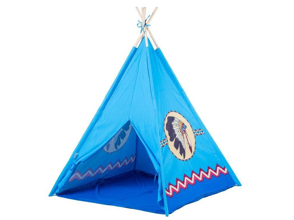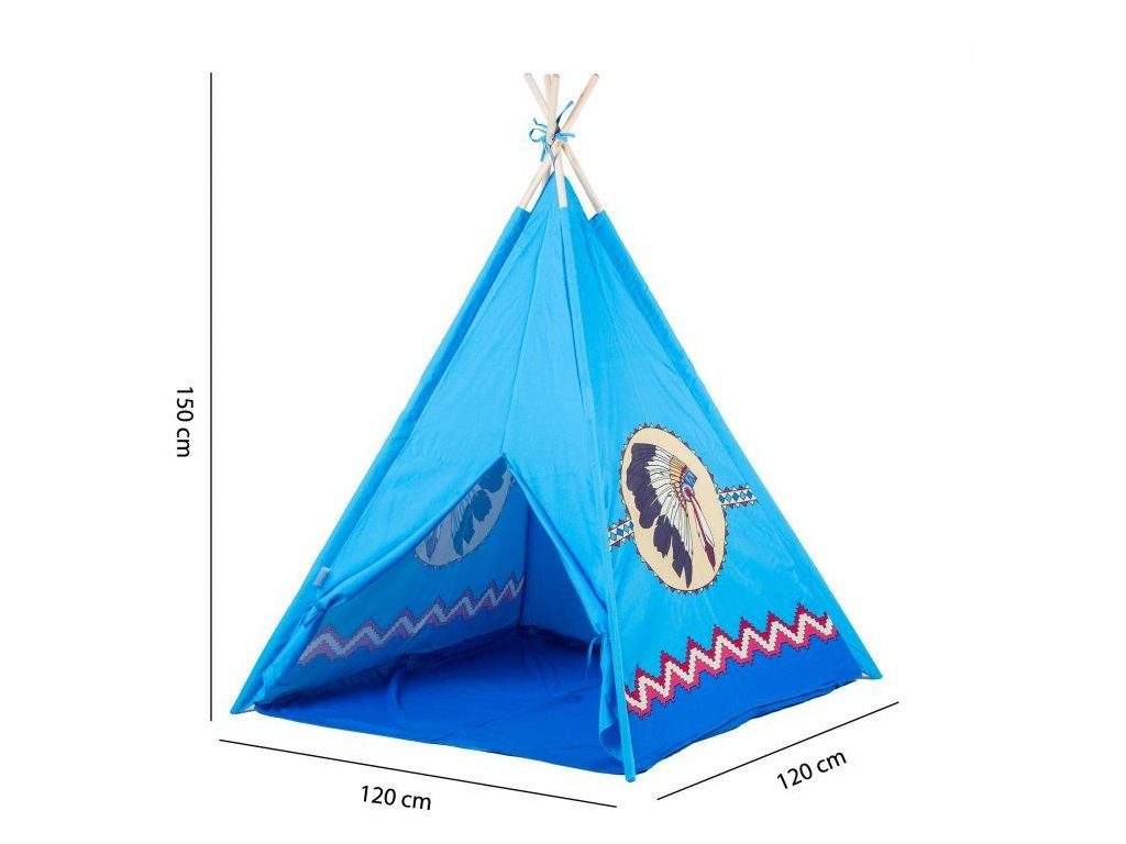 Ecotoys dětský indiánský stan v modrém provedení. Díky voděodolné podlaze je vhodný jak do vnitřních prostor tak i pro venkovní použití. Vchod do stanu je rolovací, můžete tak nastavit množství světla, které bude pronikat dovnitř stanu. Konstrukce stanu je dřevěná, svrchní materiál je polyester. Montáž stanu je velmi a snadná a rychlá, což oceníte zejména při jeho přemist'ování. V zadní části je umístěno praktické okýnko.