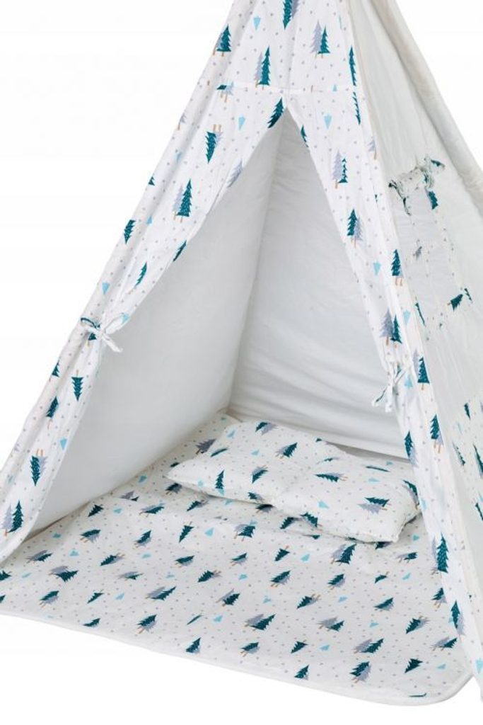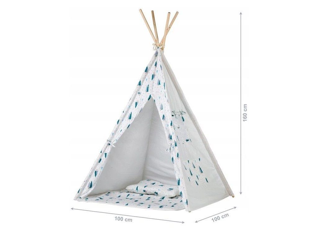 Ecotoys dětský indiánský stan TeePee v provedení s obrázky malých smrčků. Je vhodný jak do vnitřních prostor tak i pro venkovní použití. Vchod do stanu je rolovací, můžete tak nastavit množství světla, které bude pronikat dovnitř stanu. Konstrukce stanu je dřevěná, svrchní materiál je bavlna. Montáž stanu je velmi a snadná a rychlá, což oceníte zejména při jeho přemist'ování. Na boční straně je umístěno praktické okýnko. Součásti balení je měkká bavlněná podložka a 2 polštářky, kreé lze prát v pračce. Pro uložení hraček slouží praktická kapsa všitá do jedné z bočních stěn stanu.