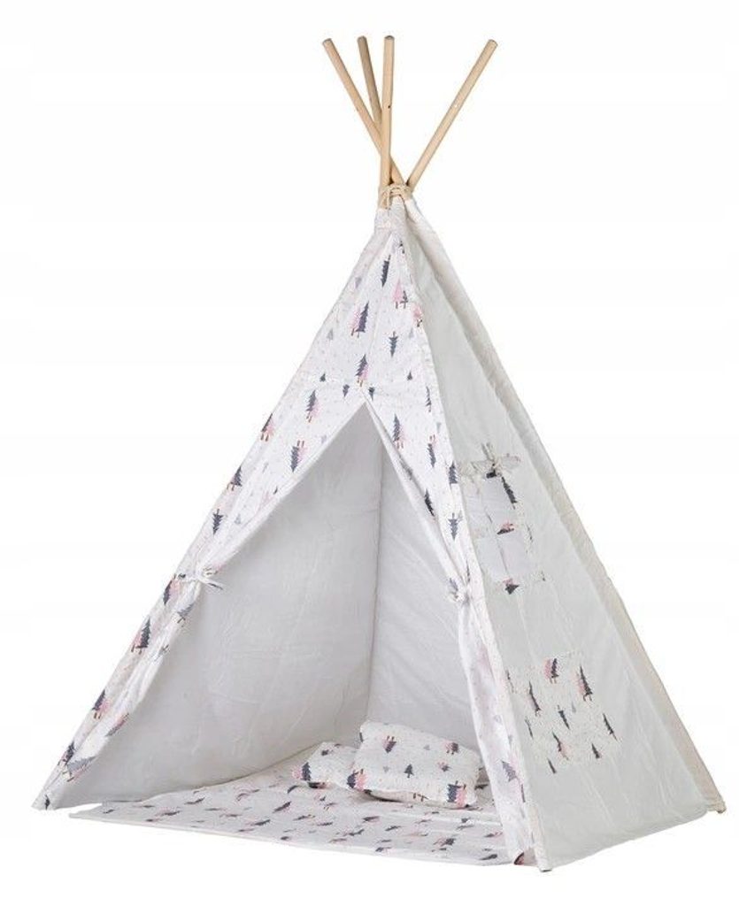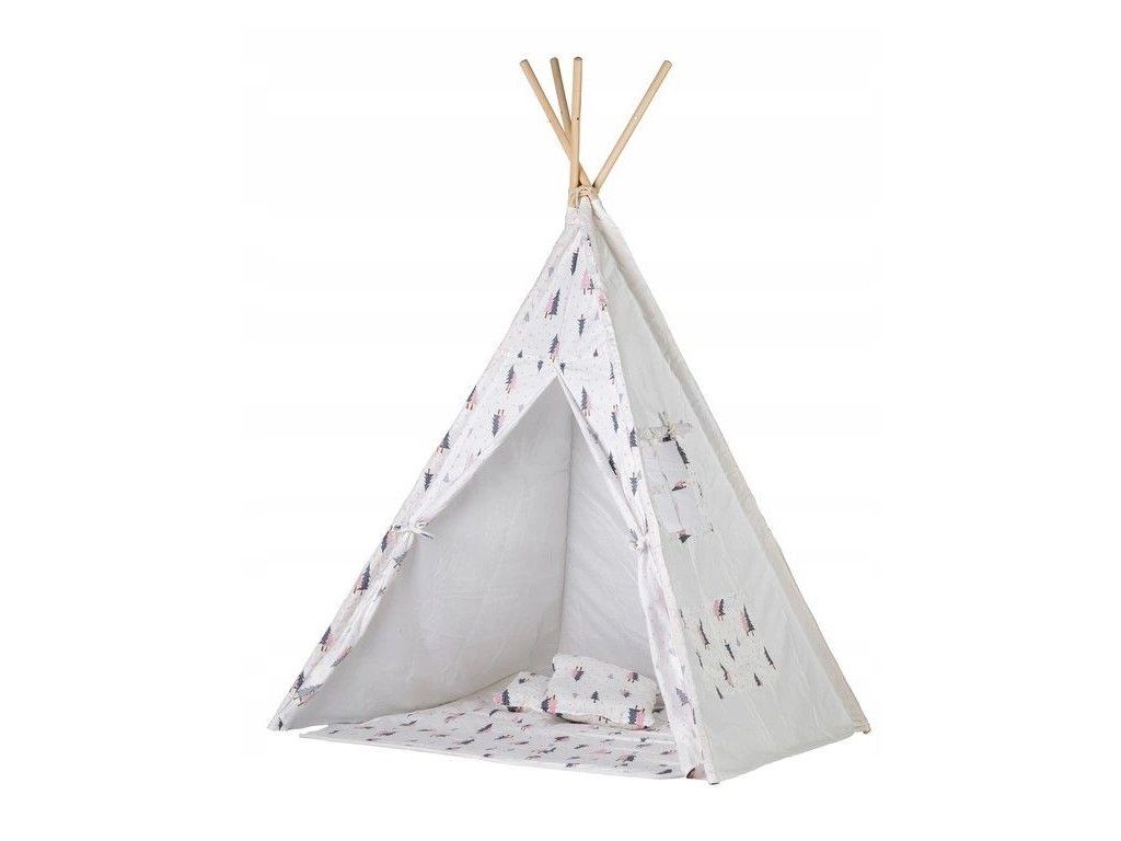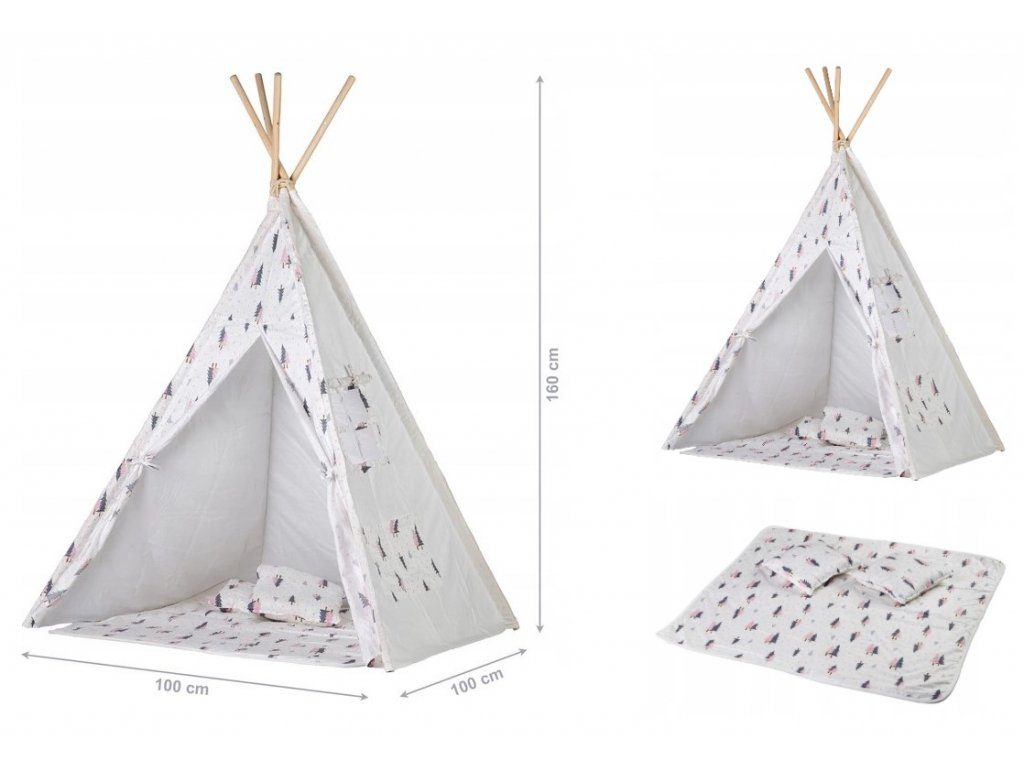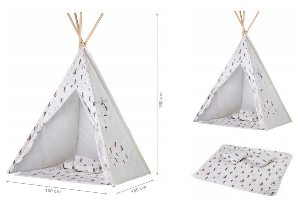Ecotoys dětský indiánský stan TeePee v provedení s obrázky malých smrčků. Je vhodný jak do vnitřních prostor tak i pro venkovní použití. Vchod do stanu je rolovací, můžete tak nastavit množství světla, které bude pronikat dovnitř stanu. Konstrukce stanu je dřevěná, svrchní materiál je bavlna. Montáž stanu je velmi a snadná a rychlá, což oceníte zejména při jeho přemist'ování. Na boční straně je umístěno praktické okýnko. Součásti balení je měkká bavlněná podložka a 2 polštářky, kreé lze prát v pračce. Pro uložení hraček slouží praktická kapsa všitá do jedné z bočních stěn stanu.