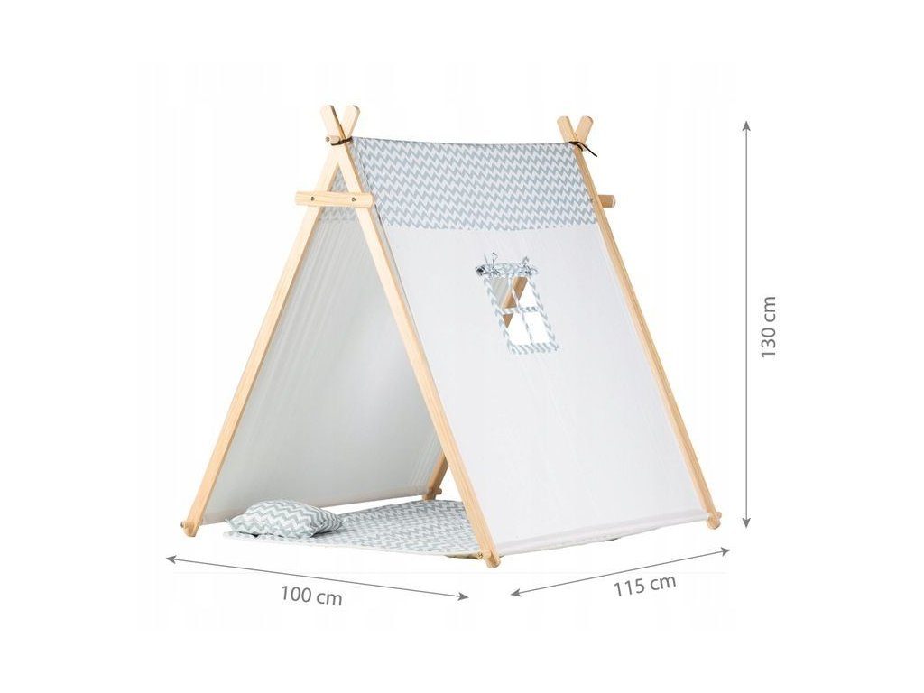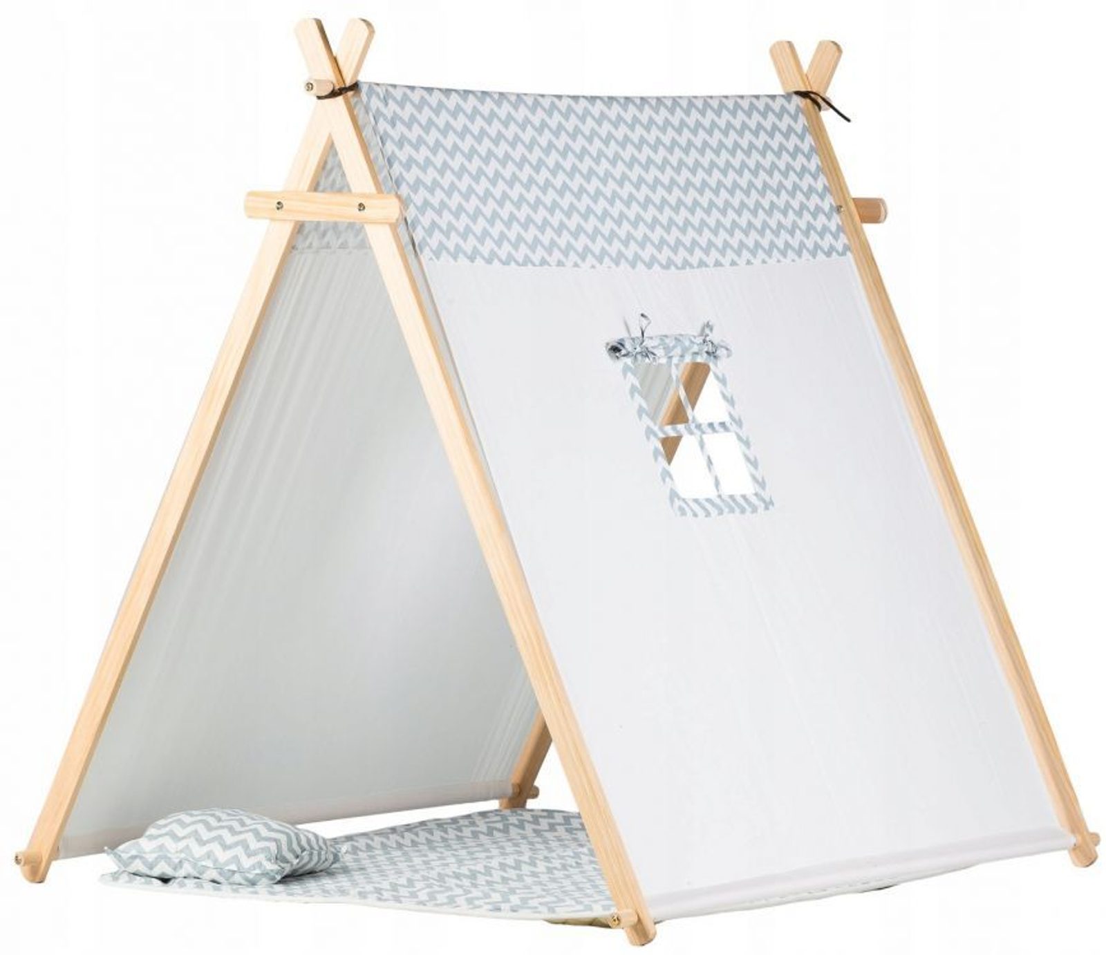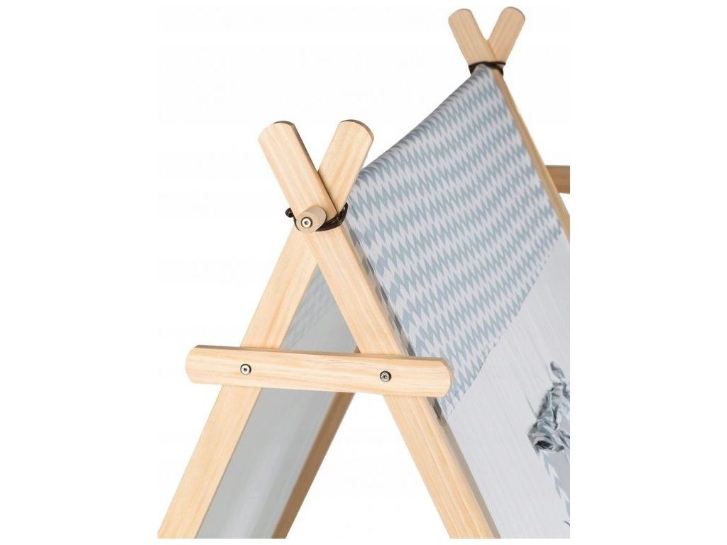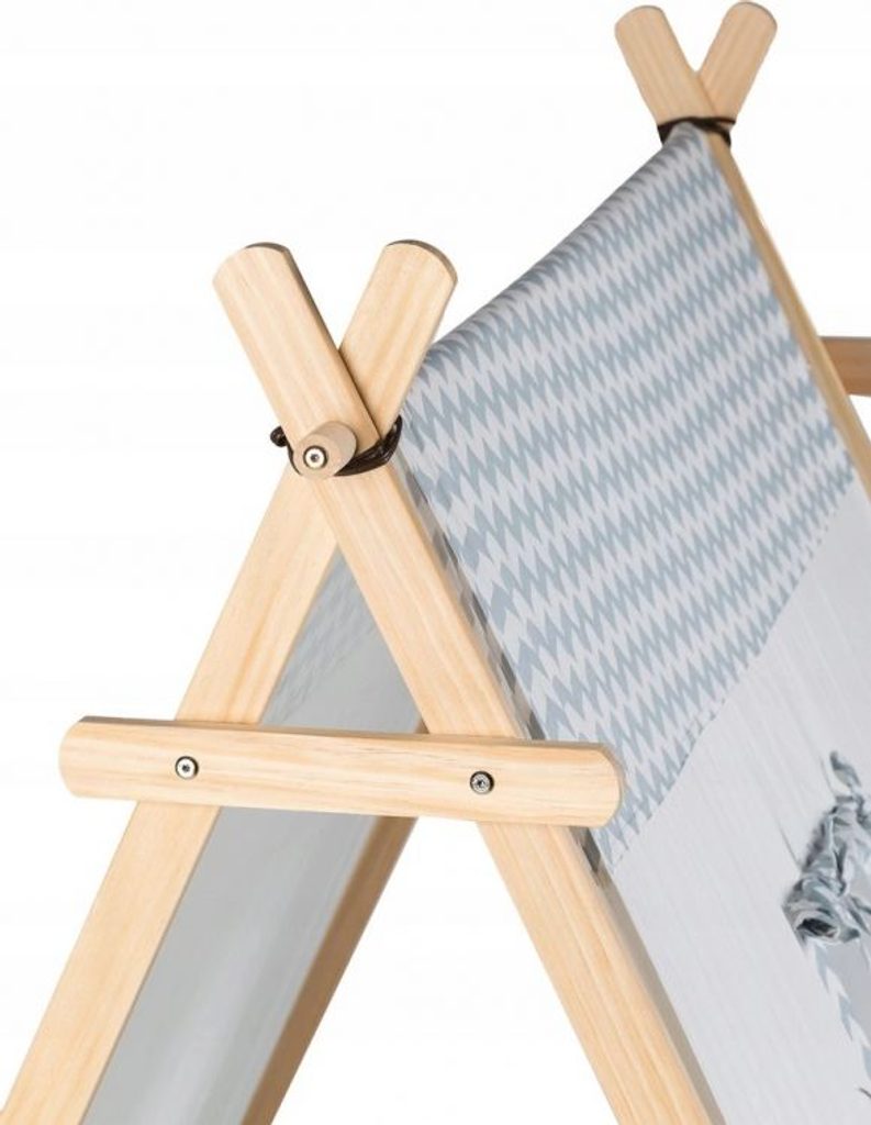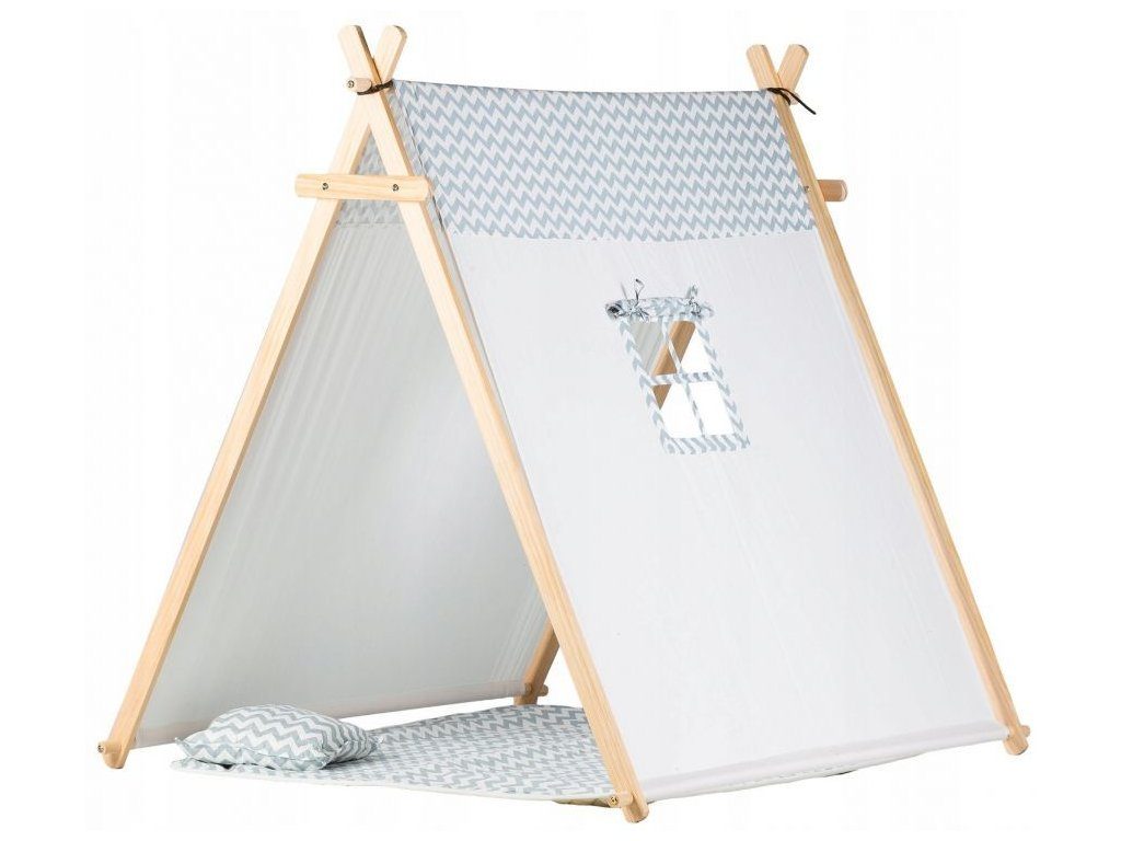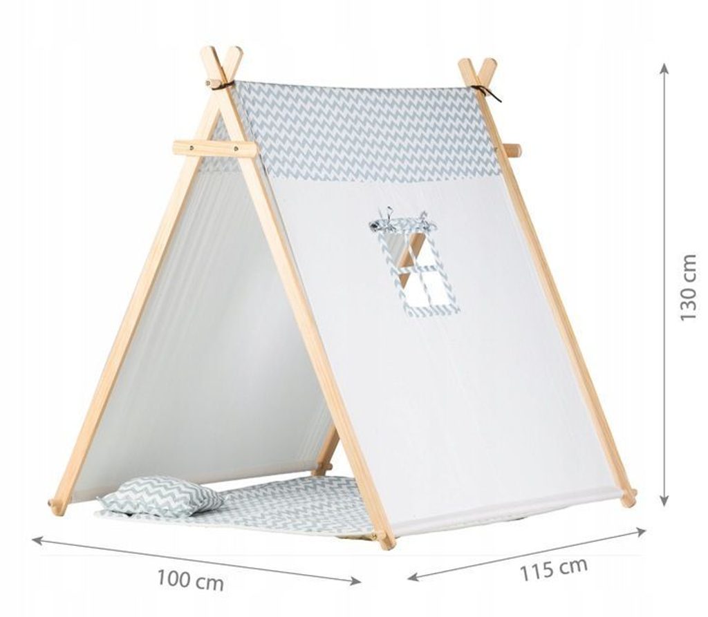 Ecotoys dětský indiánský stan Wigwam. Je vhodný jak do vnitřních prostor tak i pro venkovní použití. Konstrukce stanu je dřevěná, svrchní materiál je bavlna. Montáž stanu je velmi a snadná a rychlá, což oceníte zejména při jeho přemist'ování. Na boční straně je umístěno praktické okýnko. Součásti balení je měkká bavlněná podložka a polštářek, které lze prát v pračce.
