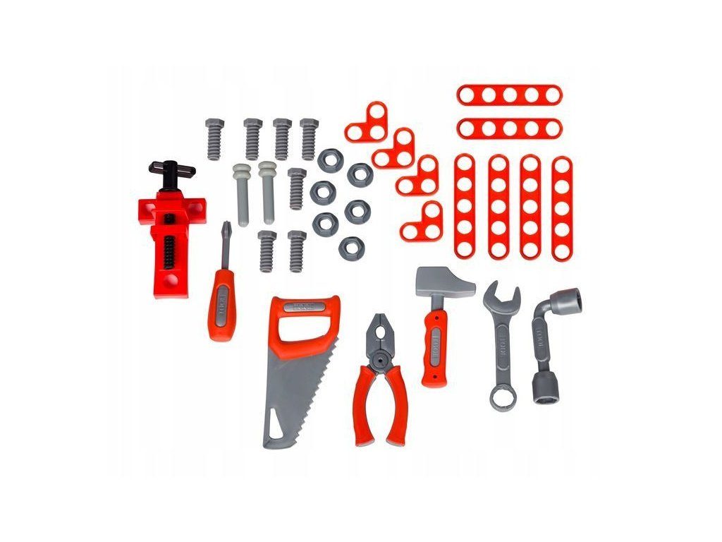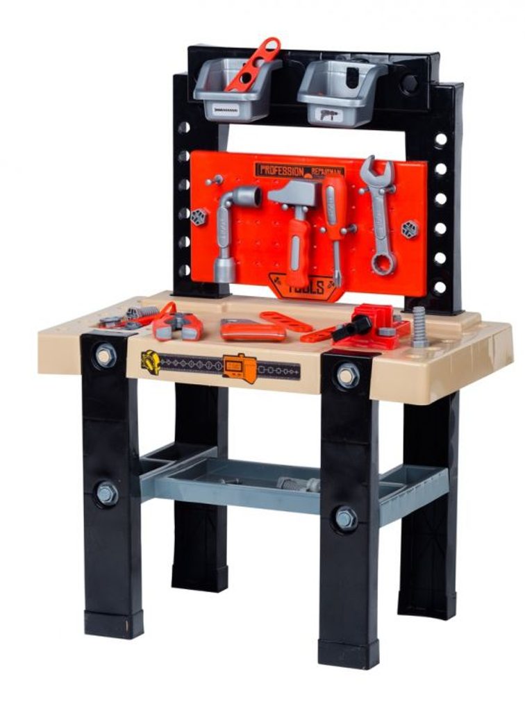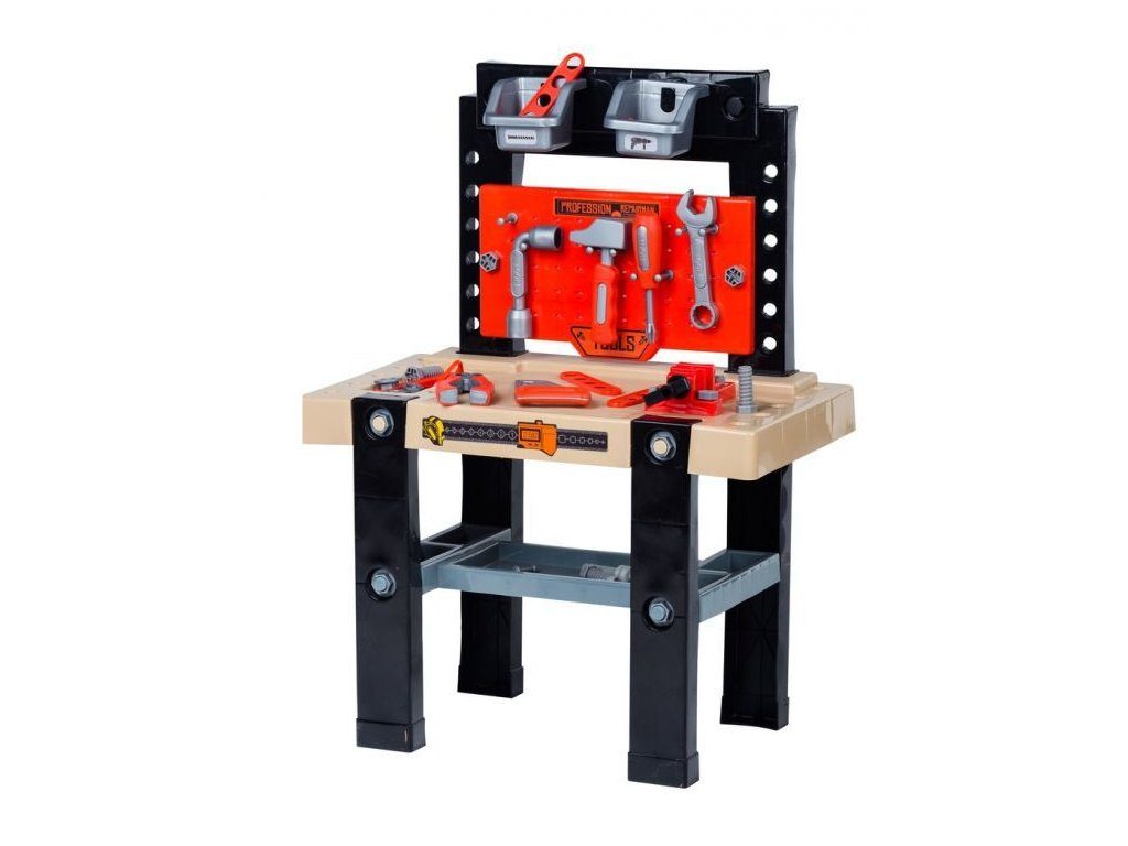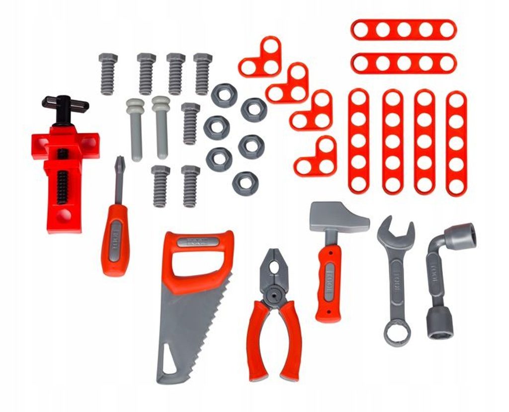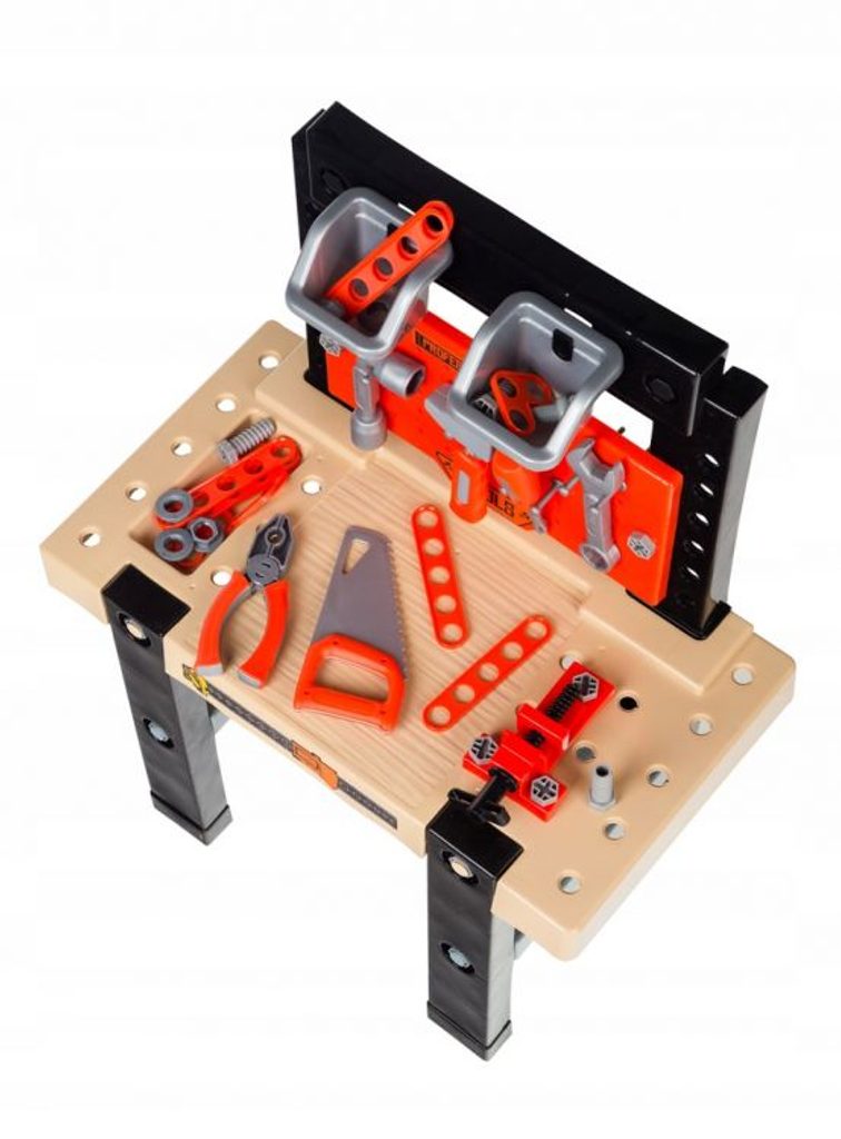 Ecotoys plastová pracovní dílna-ponk pro ty nejmenší kutily. Sada obsahuje celkem 50 součástí včetně pilky, pravítka, kladívka, klíče, šroubků, matic a dalších konstrukčních prvků. Ve spodní části je umístěna praktická police. V horní části je umístěn svěrák a na hlavním panelu jsou otvory pro zašroubování šroubků. Hračka je určena pro děti od 36 měsíců věku.
